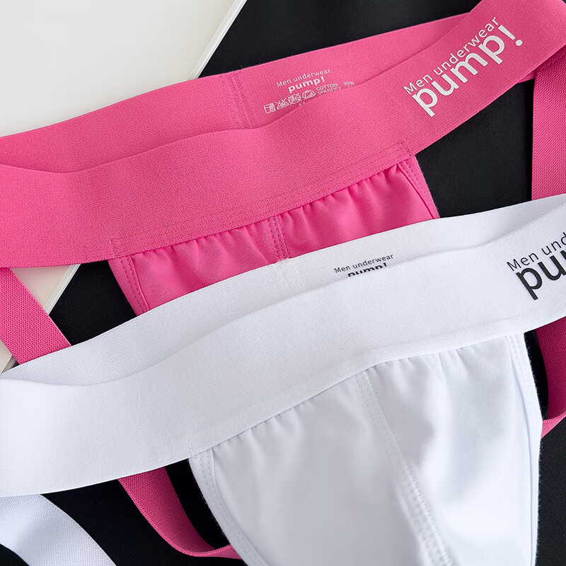Victoria's Secret Emilysa men's double-butt underwear summer sexy low-waist breathable U convex bag back empty buttocks thong pure white MP5001 (white + pink) M 90-110Jin Jin equals 0.5 kg