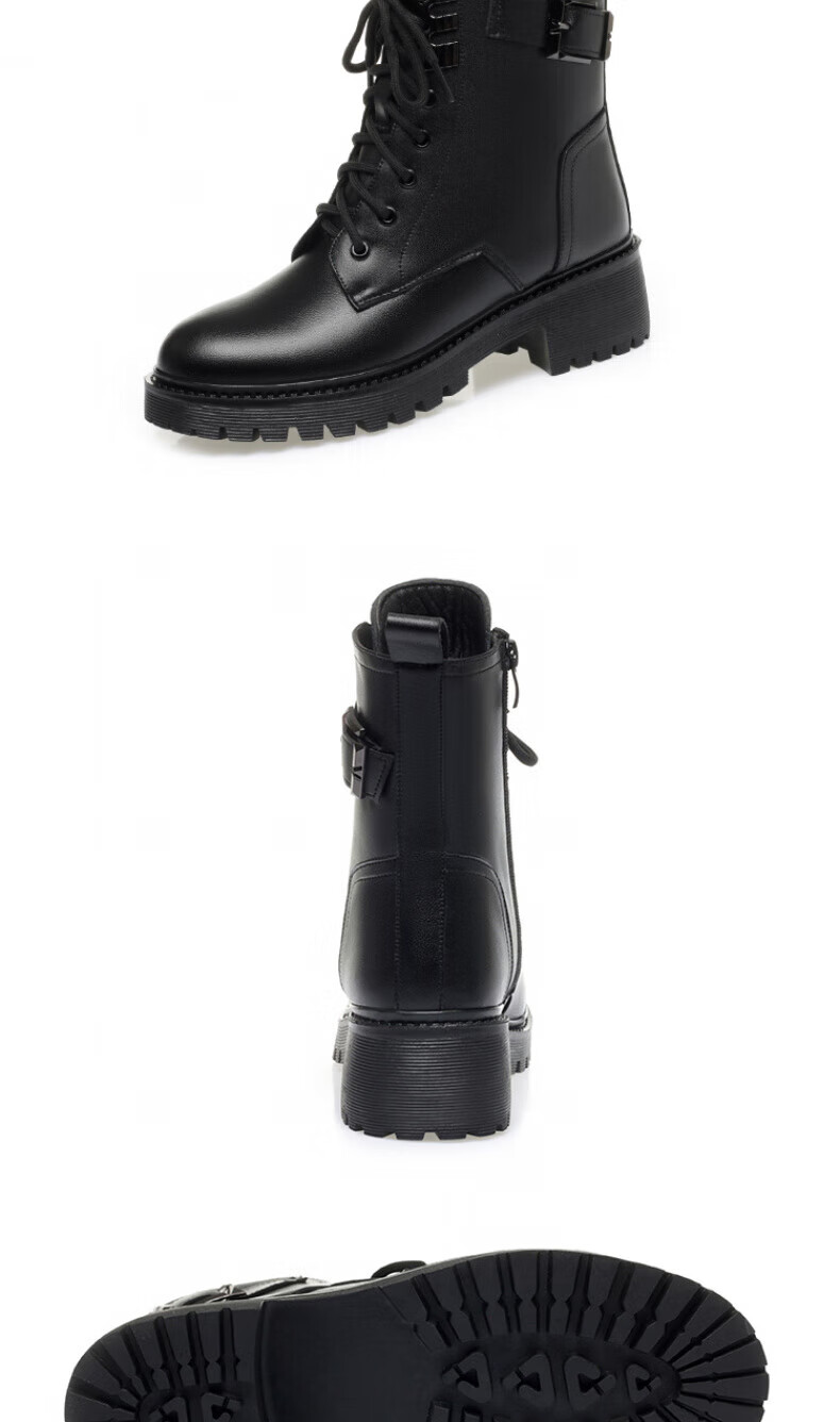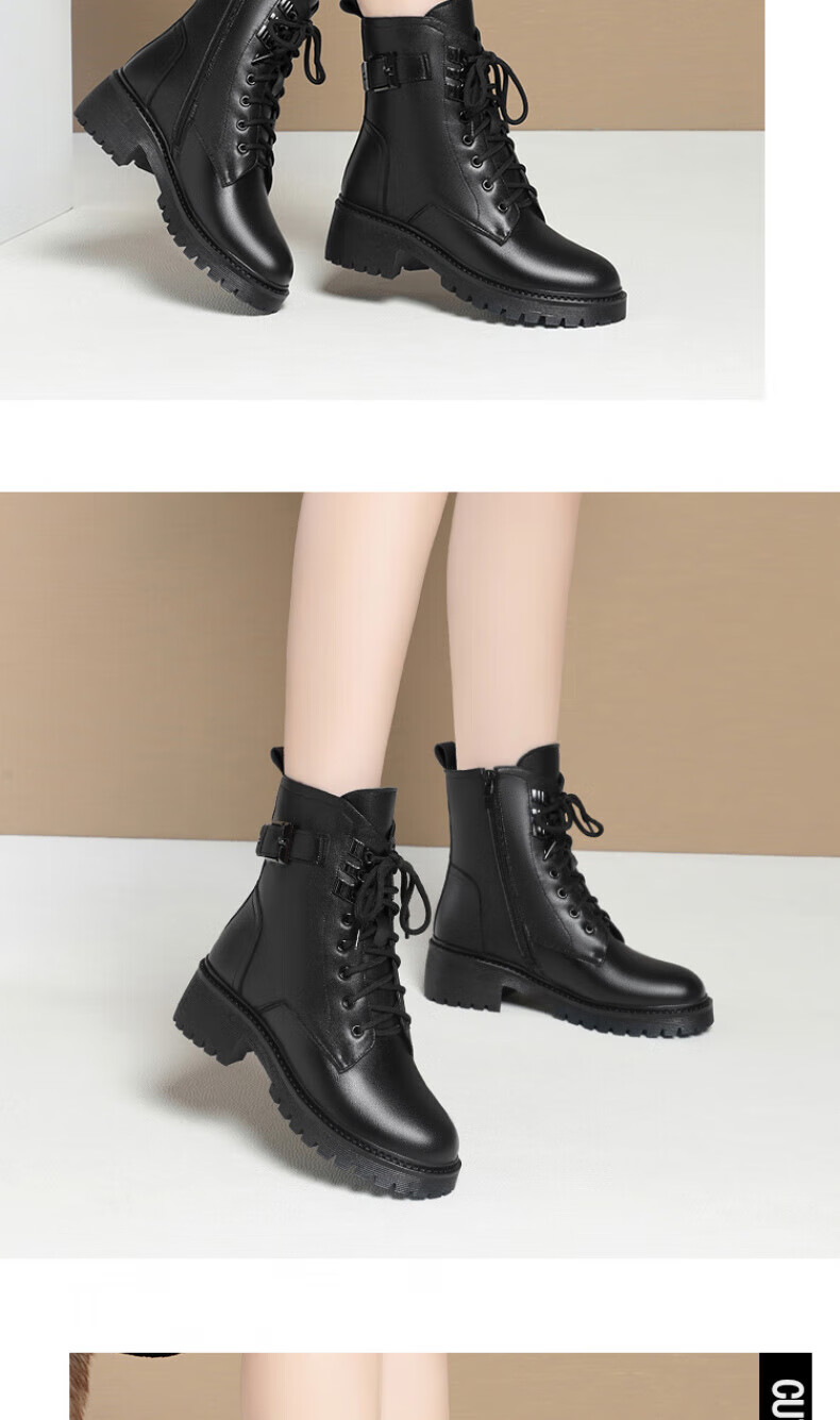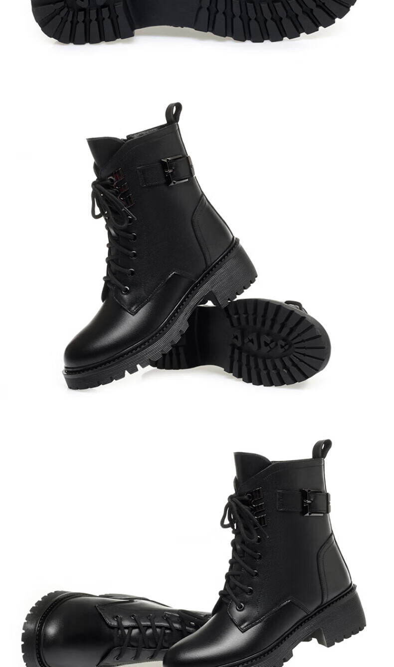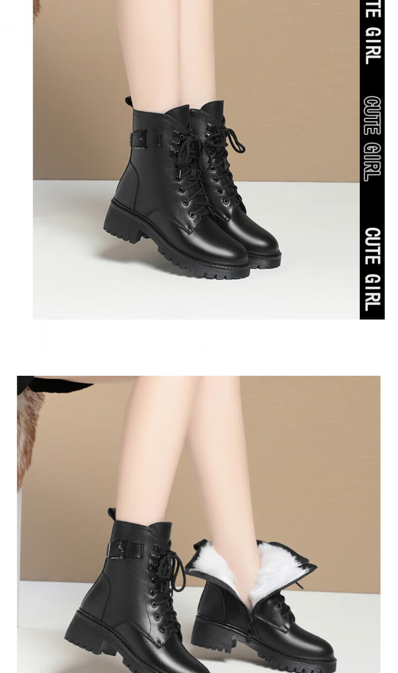 Woodpecker Martin Boots Women's Genuine Leather 2025 Autumn and Winter New Plus Velvet Large Size Short Boots Mid Heel Fur Integrated Warm Large Cotton Shoes Black Thickened Wool Lining 38