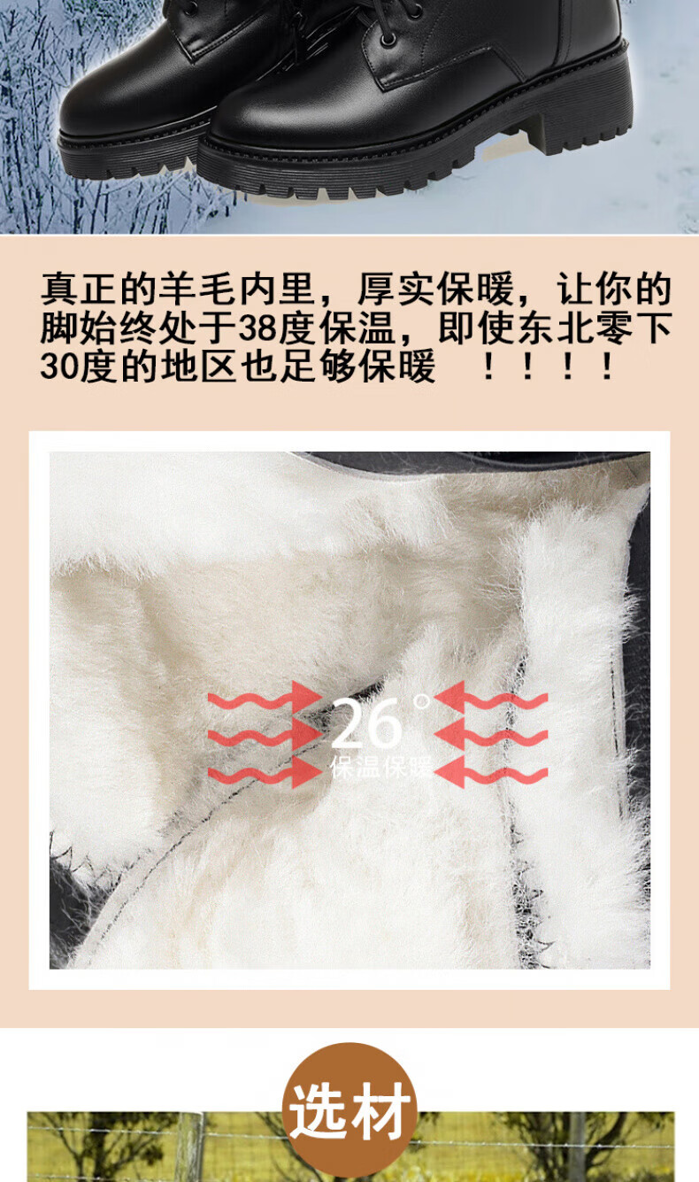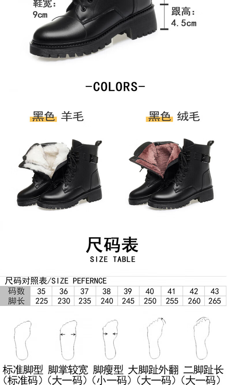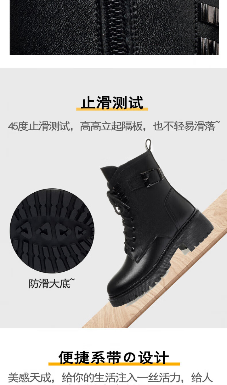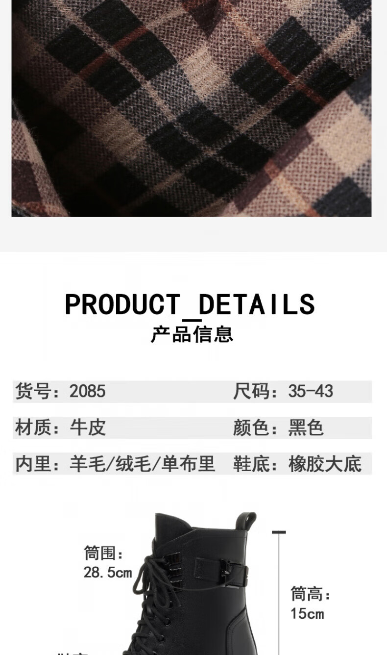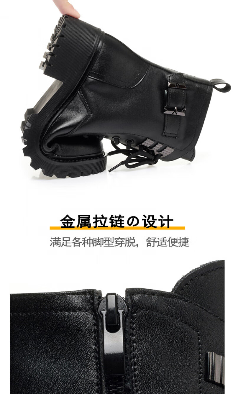 Woodpecker Martin Boots Women's Genuine Leather 2025 Autumn and Winter New Plus Velvet Large Size Short Boots Mid Heel Fur Integrated Warm Large Cotton Shoes Black Thickened Wool Lining 38