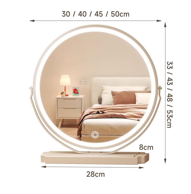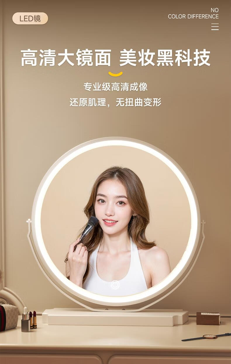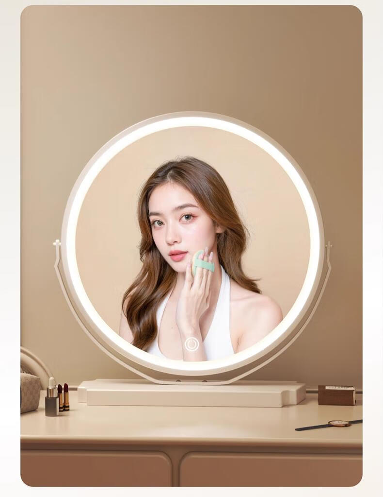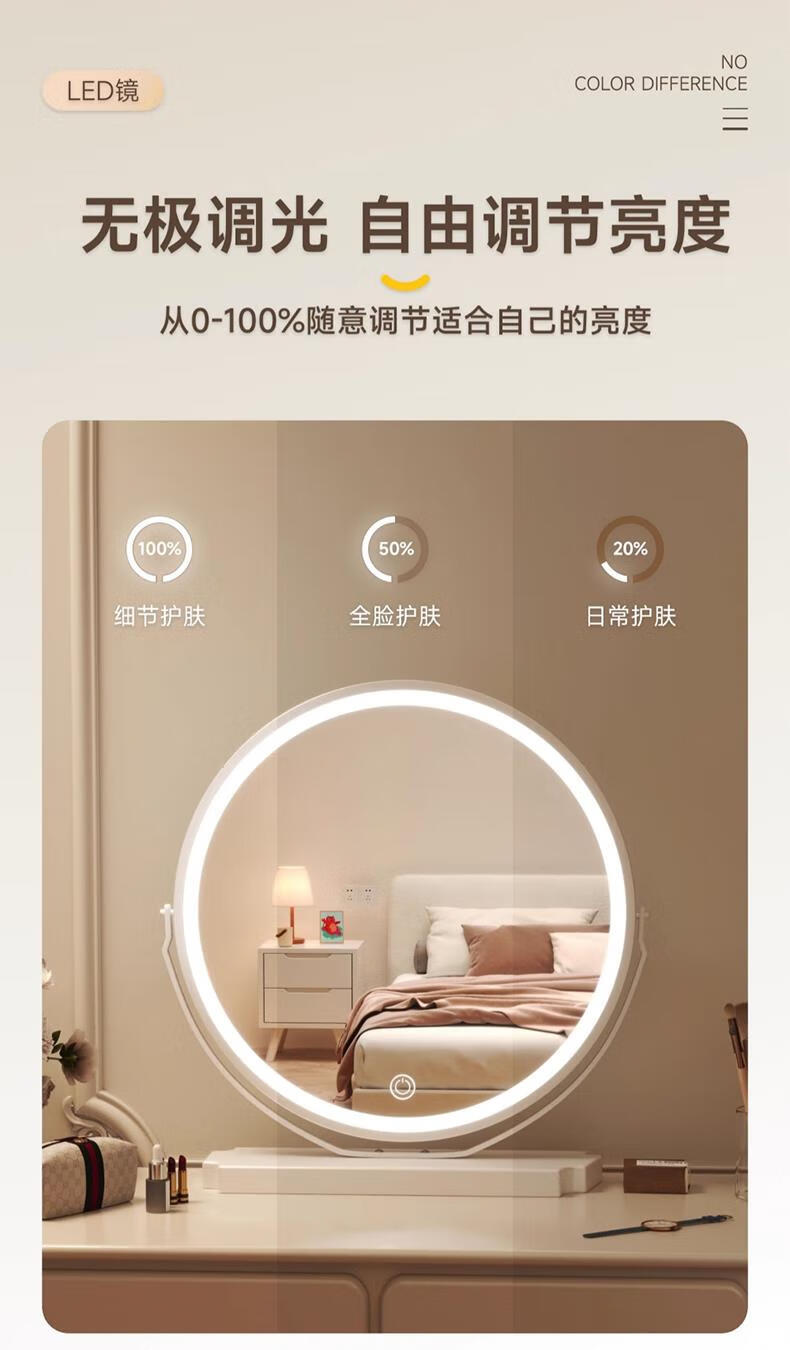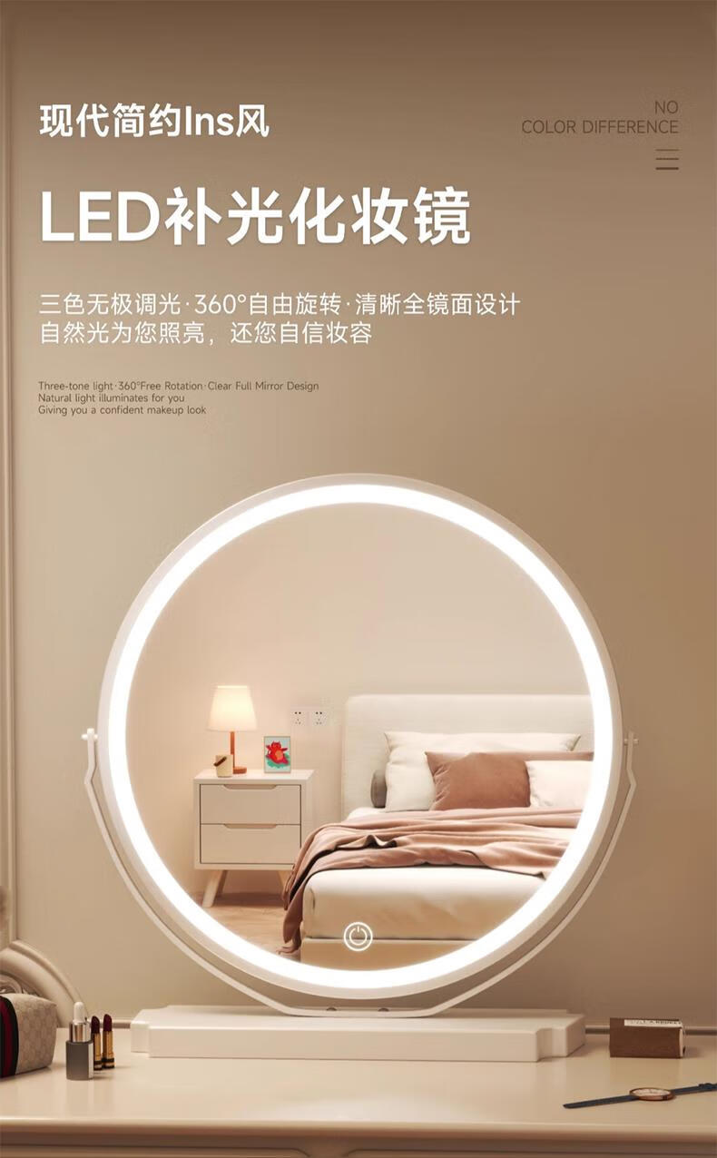 Dresser with light, smart LED makeup mirror, simple girl's home bedroom student dormitory table, white, plug-in model, reversible diameter 30CM