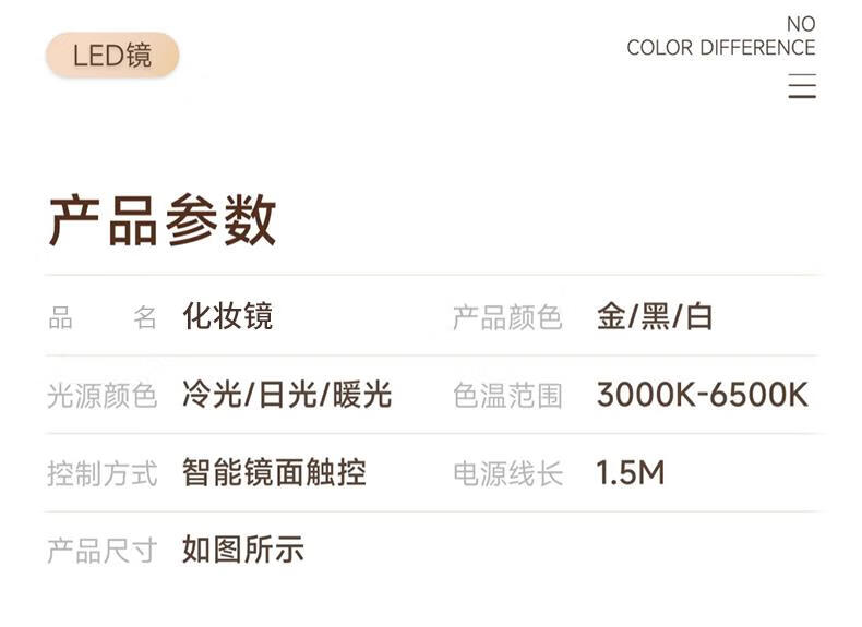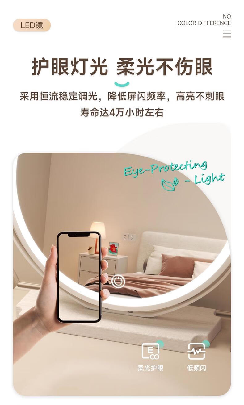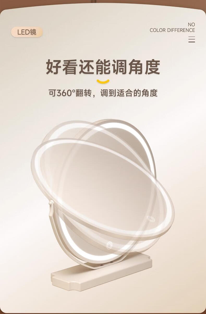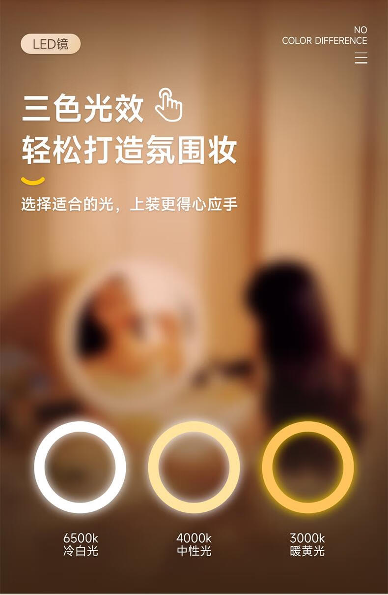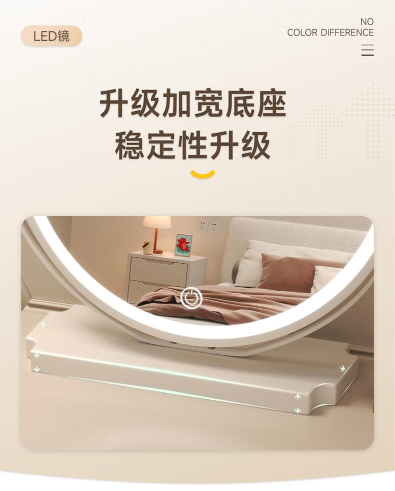 Dresser with light, smart LED makeup mirror, simple girl's home bedroom student dormitory table, white, plug-in model, reversible diameter 30CM