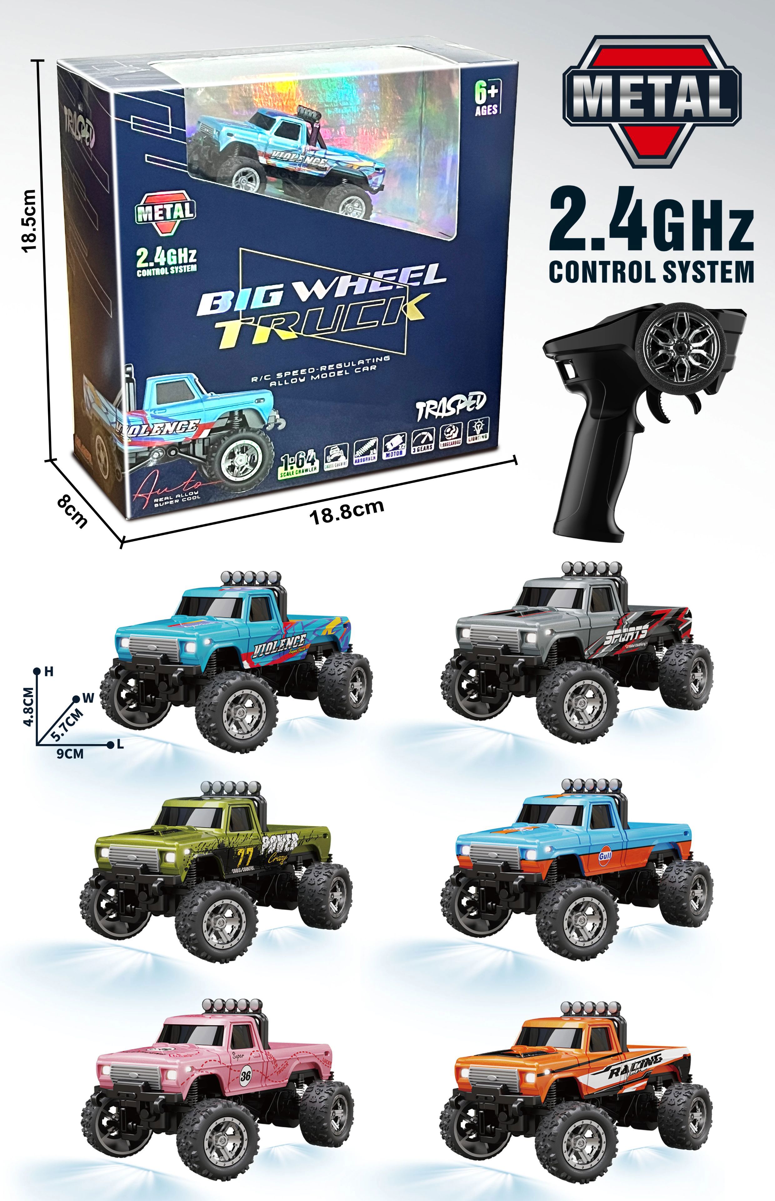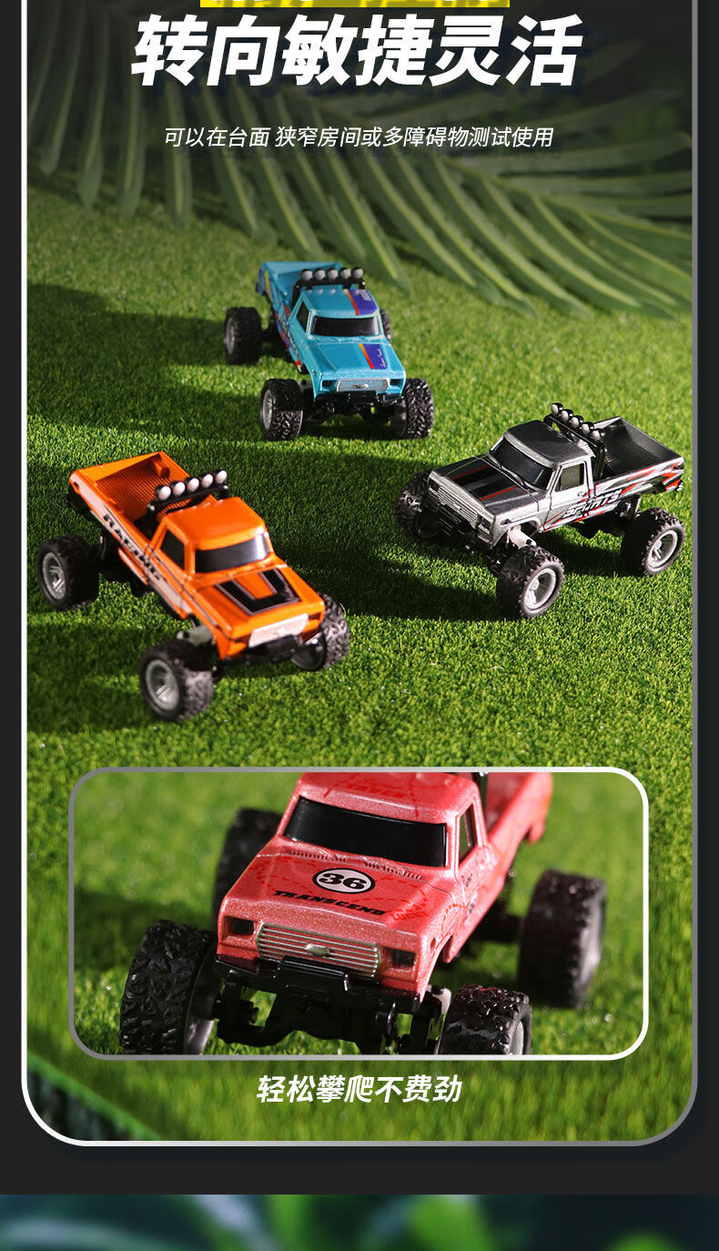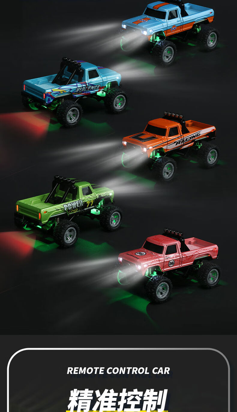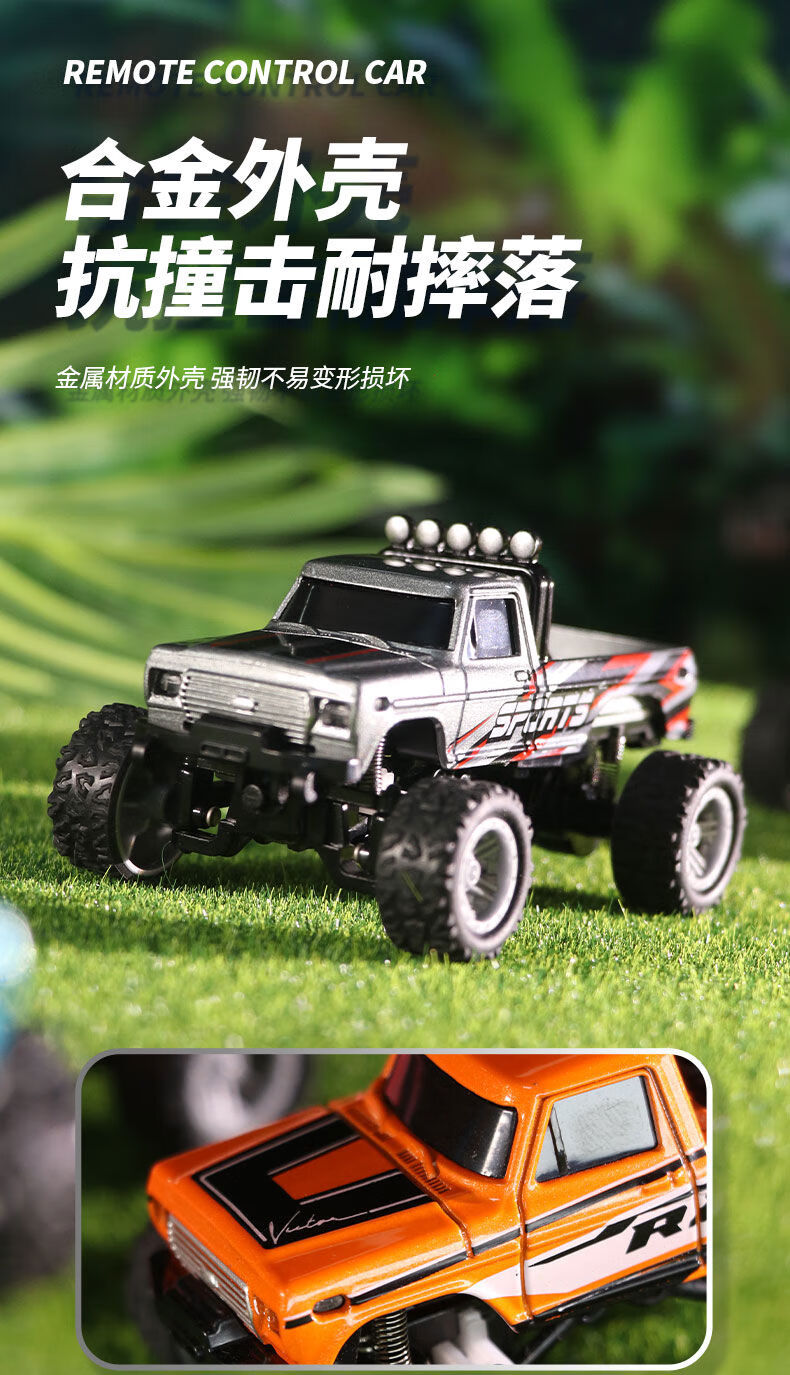 Children's birthday gift mini Bigfoot car alloy car boy remote control truck model toy gift box orange and blue 1 hour battery life front and rear shock absorber alloy body + usb charging cable