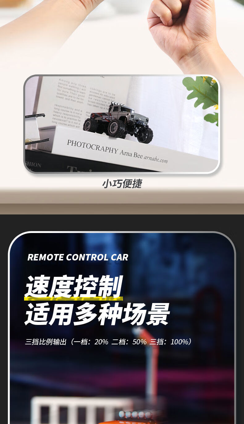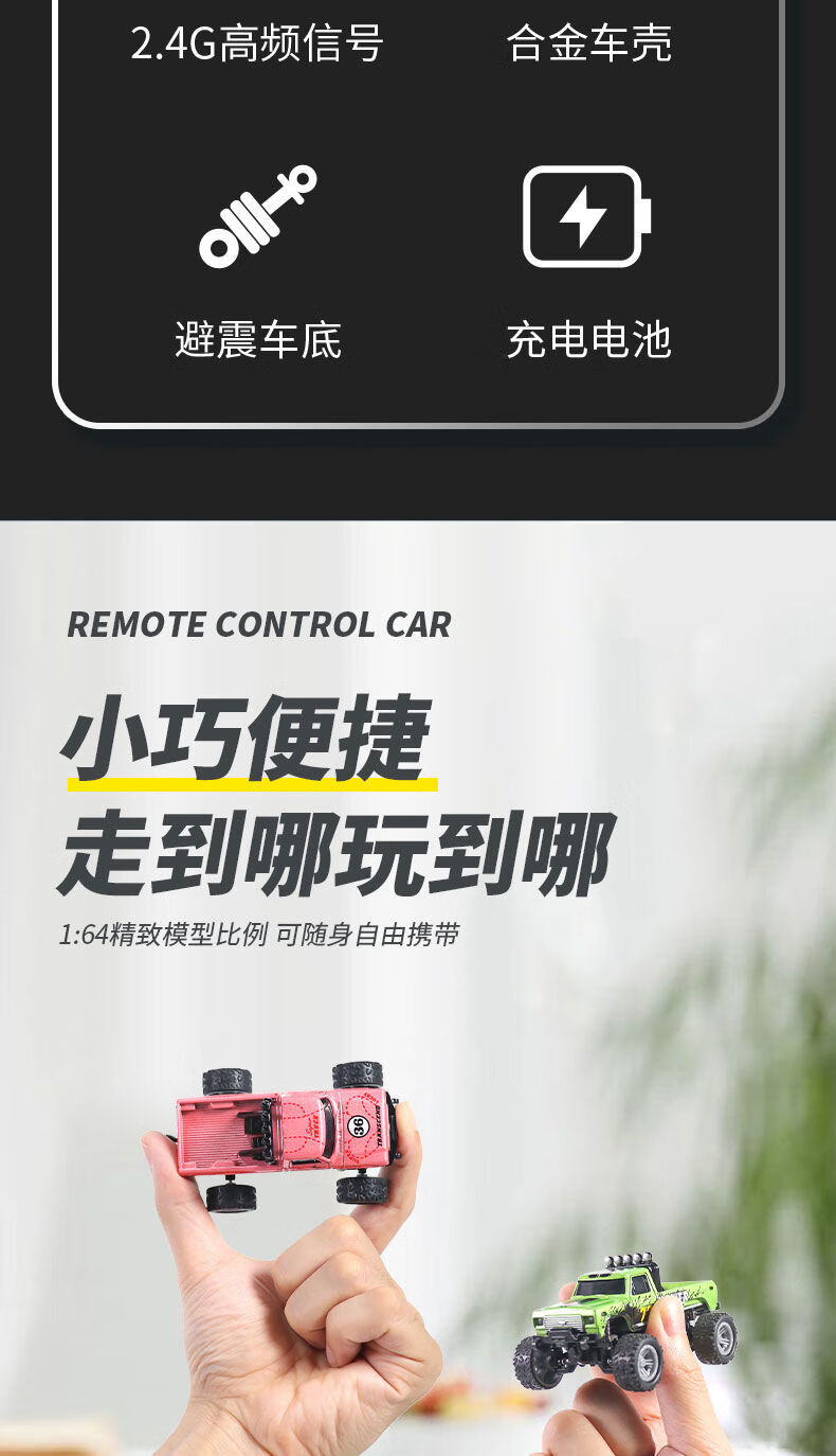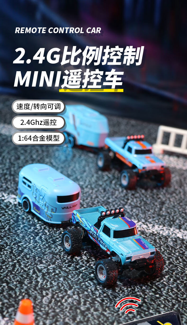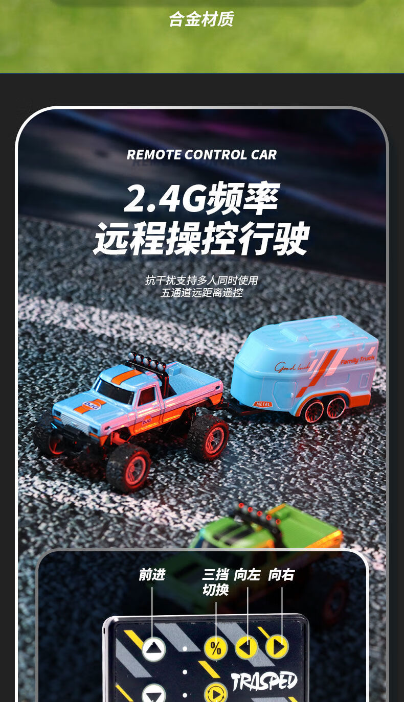 Children's birthday gift mini Bigfoot car alloy car boy remote control truck model toy gift box orange and blue 1 hour battery life front and rear shock absorber alloy body + usb charging cable