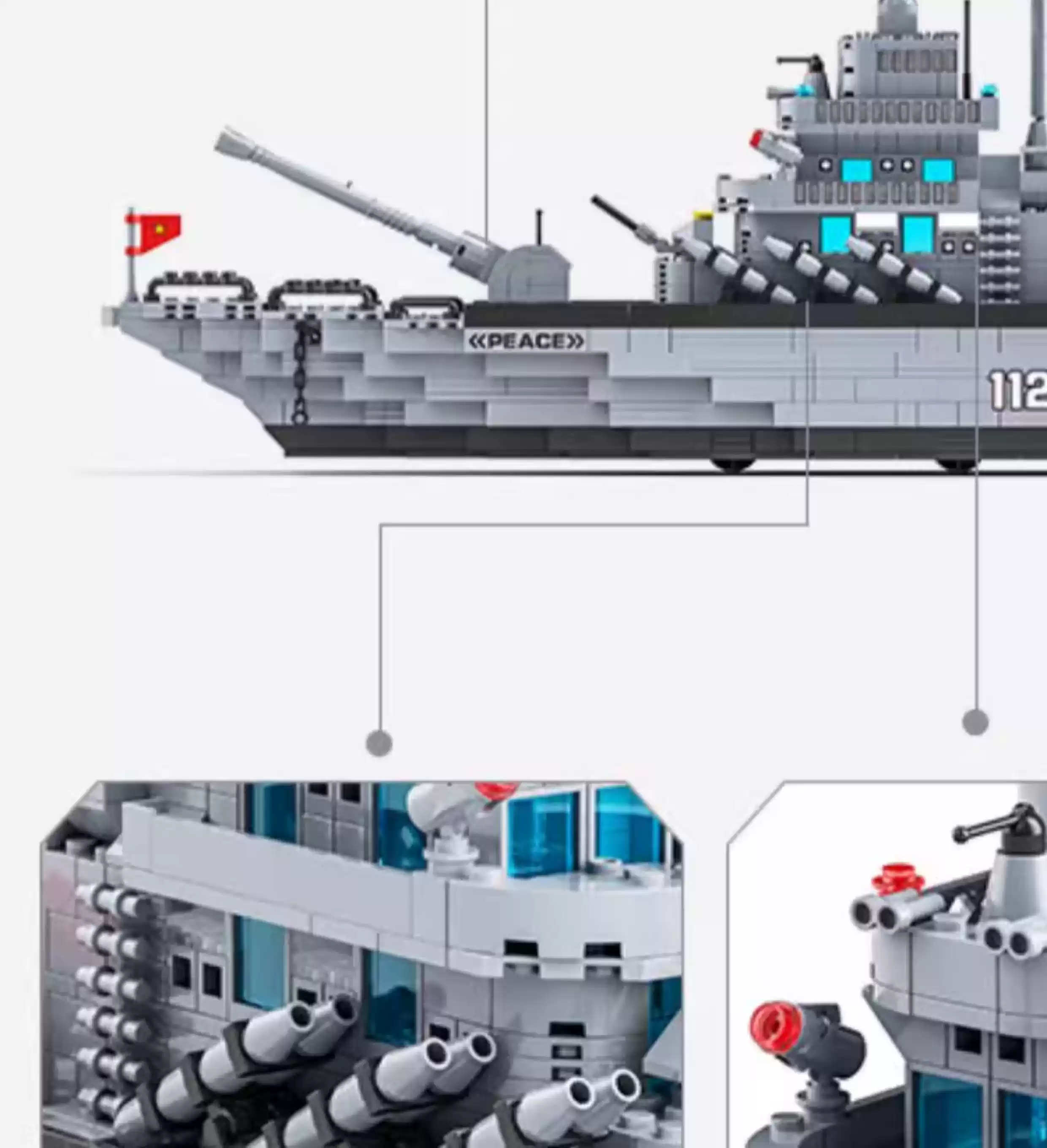 Large aircraft carrier aircraft carrier building blocks assembly toy boy educational warship children's birthday gift 6-12 years old whole ship remote control lighting/112 battleships/3 navy 15 aircraft 5 boats