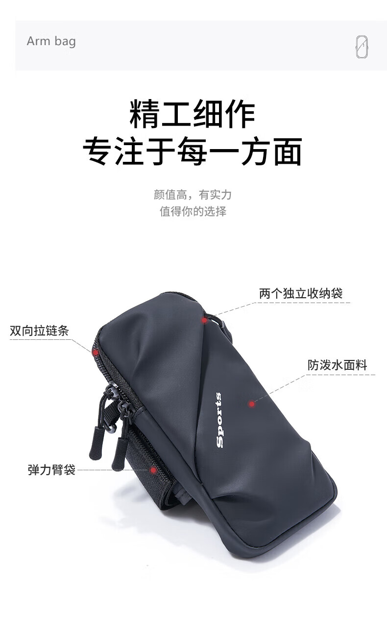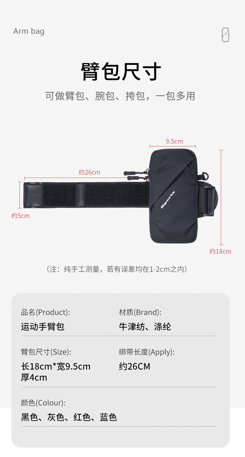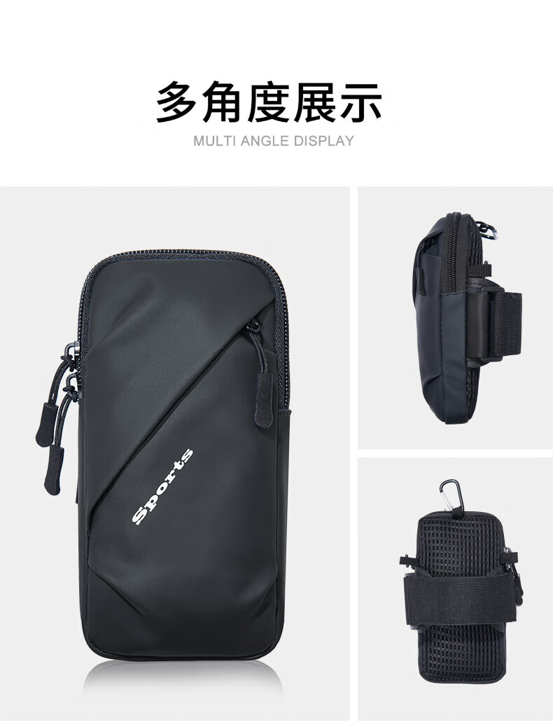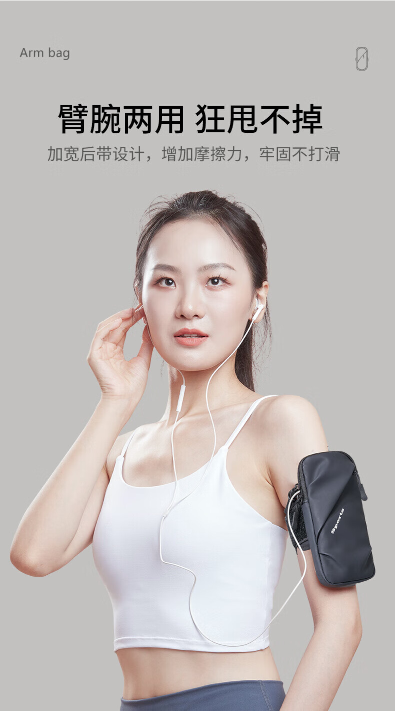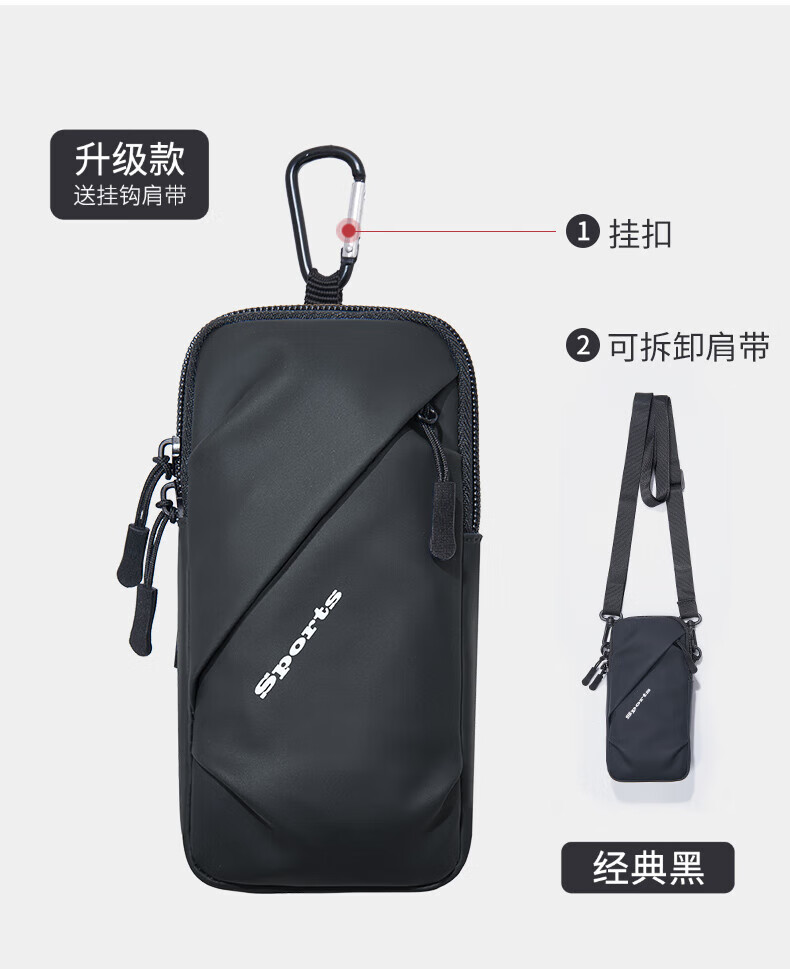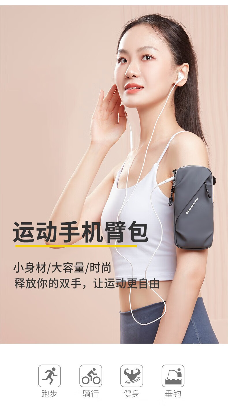 Running cell phone arm bag, sports arm cover, men's and women's fitness equipment, waterproof, light and thin, universal for mobile phones, gray crossbody model comes with shoulder strap + can be worn crossbody