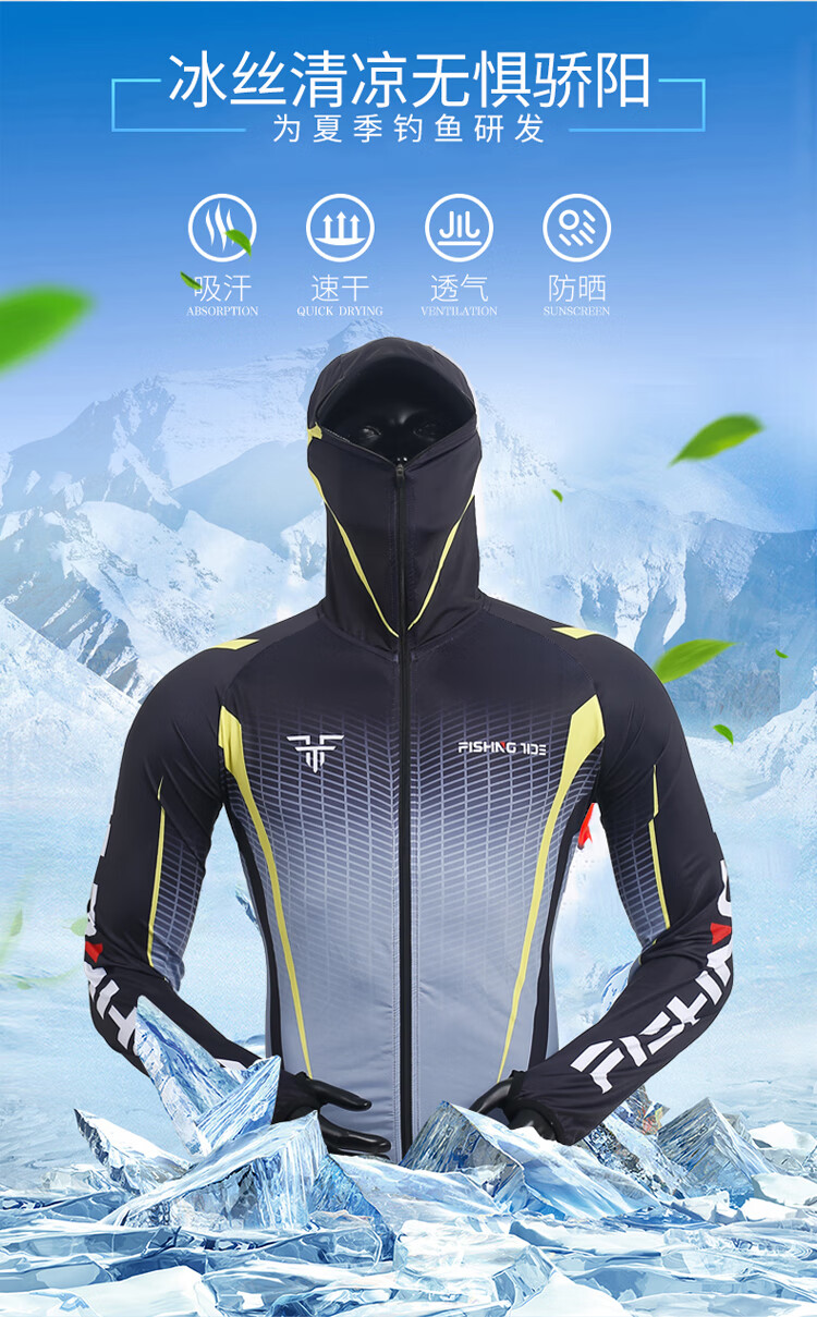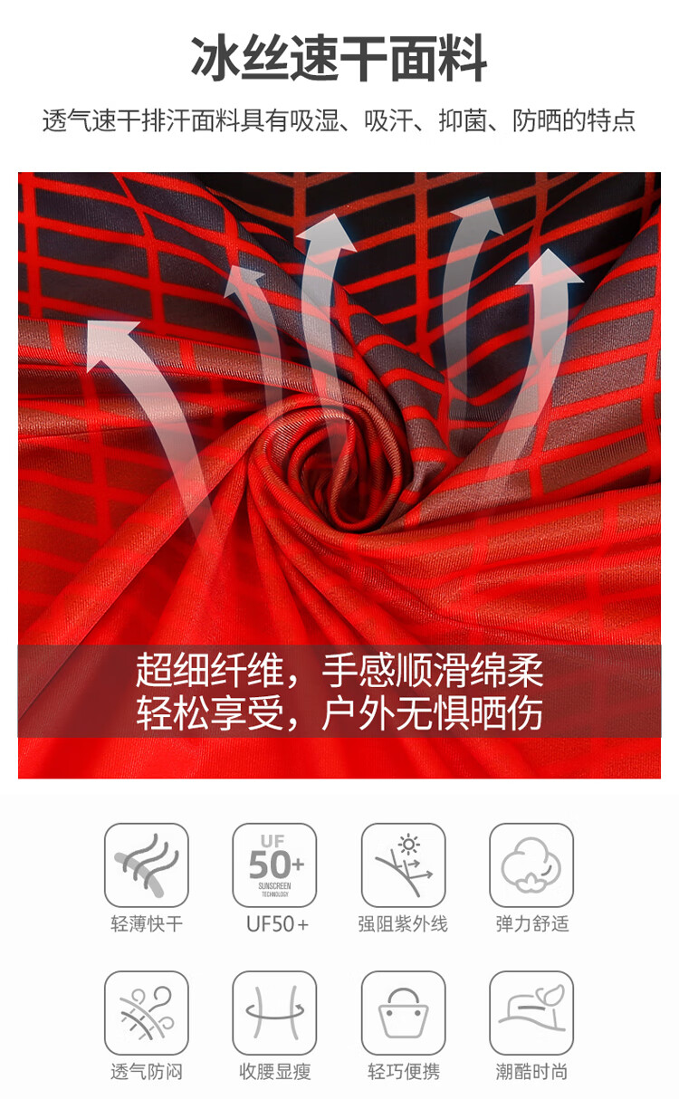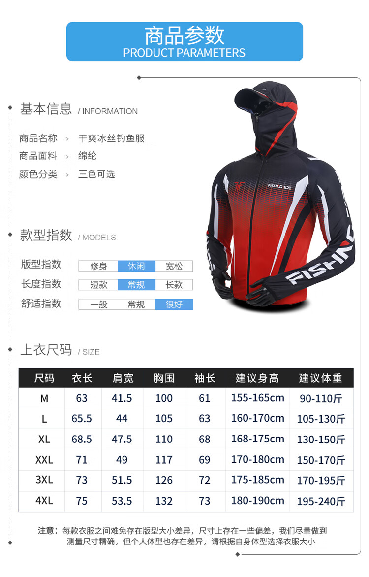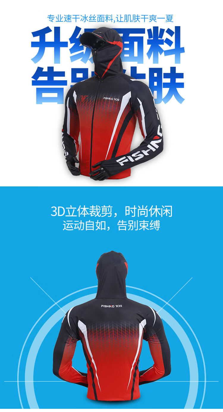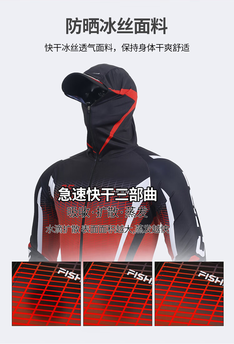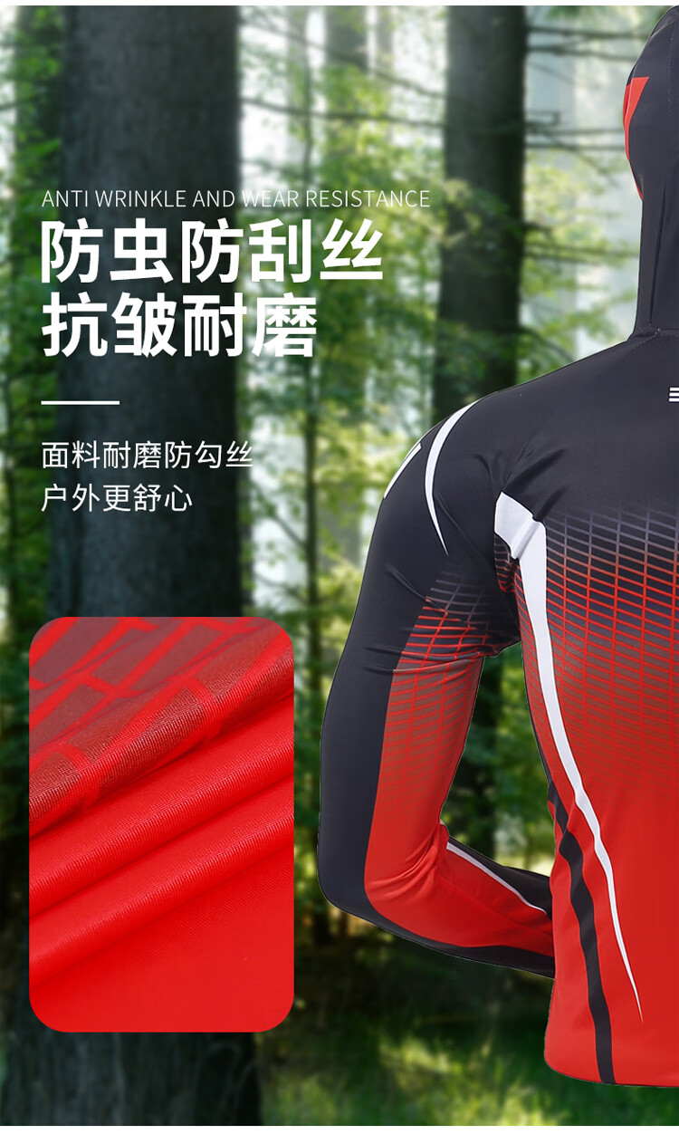 Renaike ice silk fishing suit men's summer outdoor fishing sun protection clothing anti-mosquito clothing sea fishing fishing clothing quick-drying clothes and pants red with black pants suit M suitable for 110-120