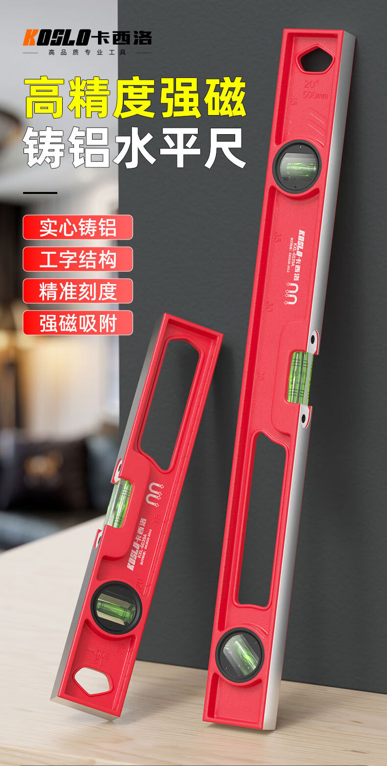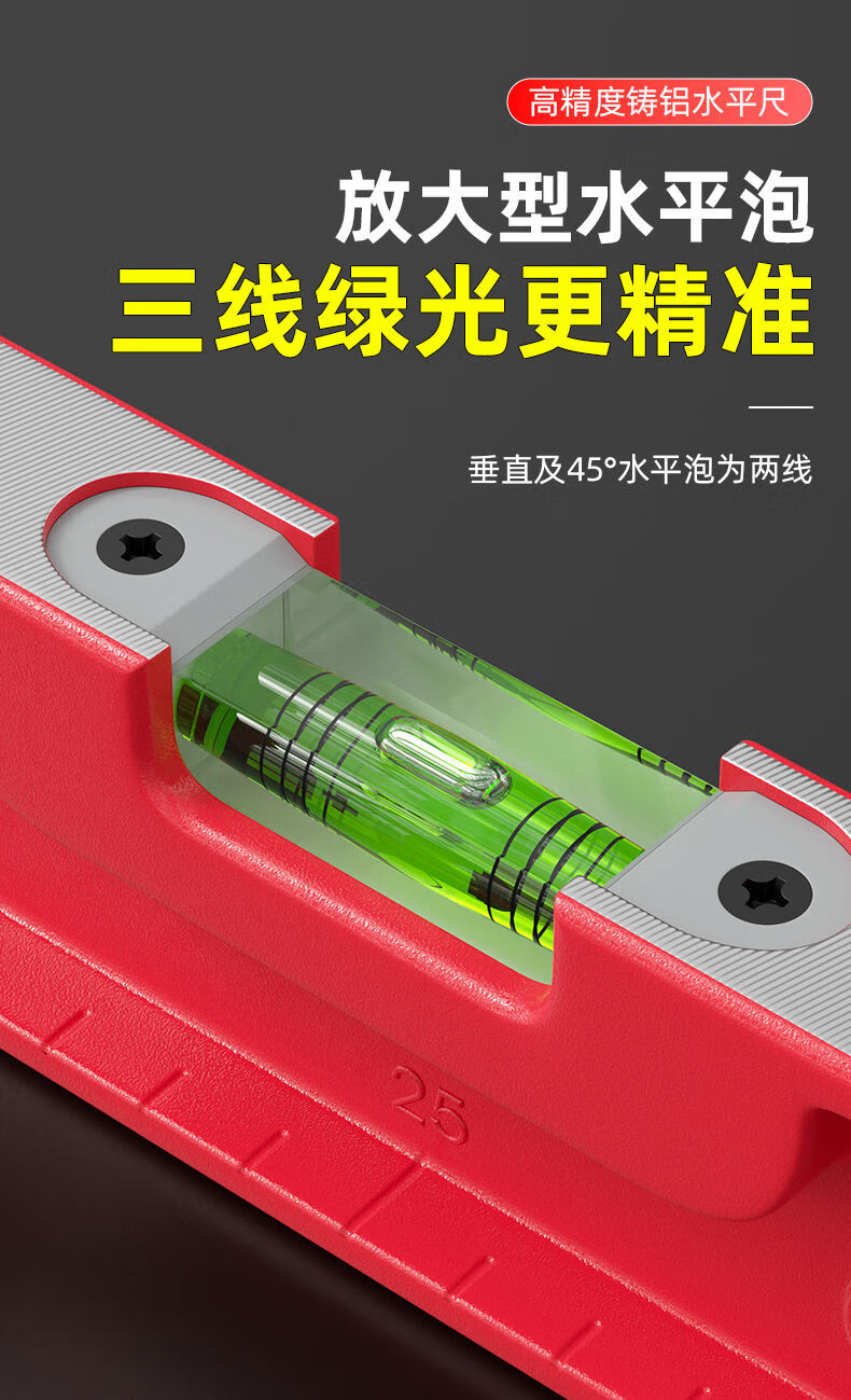 Solid cast aluminum level high precision anti-fall small magnetic mini strong magnetic small household aluminum alloy level ruler solid cast aluminum strong magnetic 30 cm