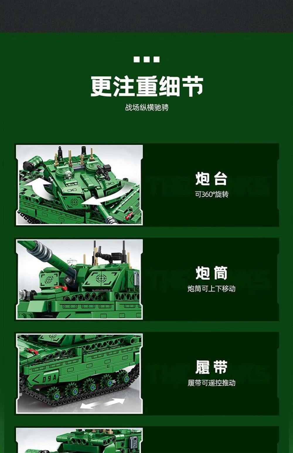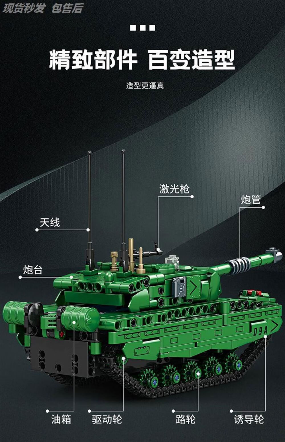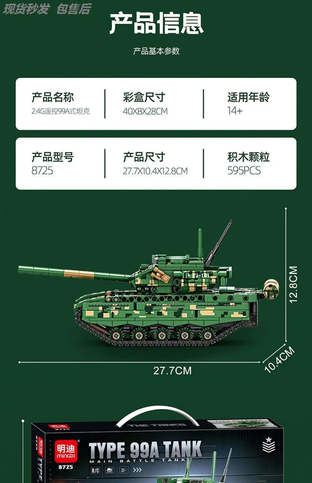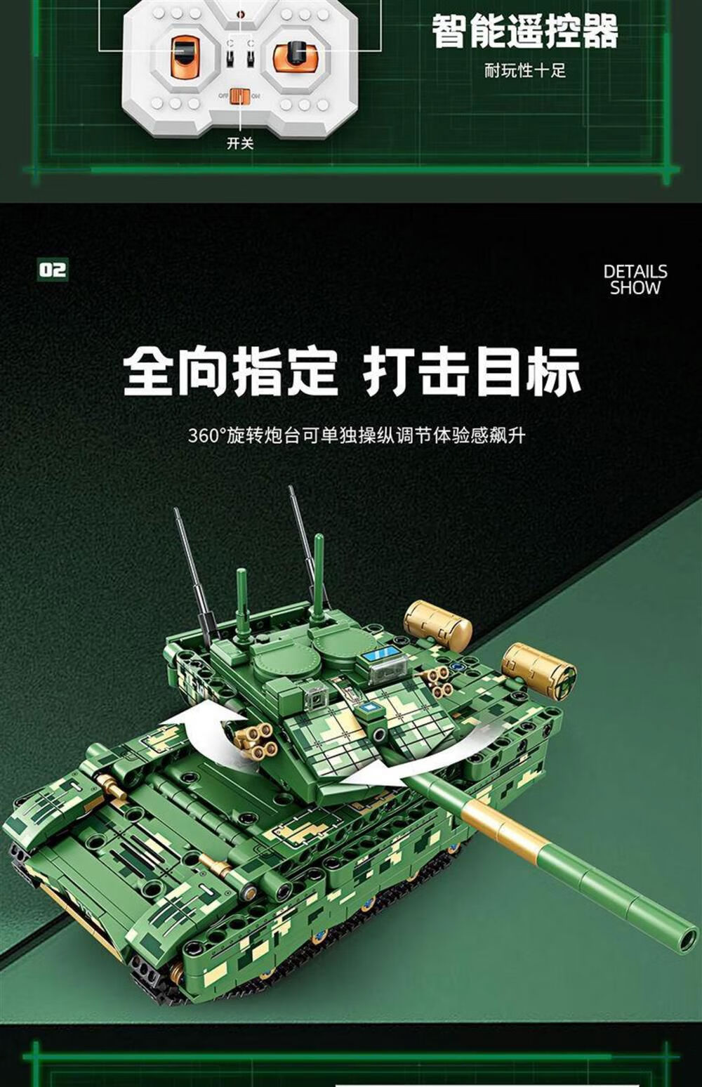 Remote control tank building blocks 2025 new 99A boys and children electric assembled military model boy gift toy 8701 technology remote control car-124 package after-sales