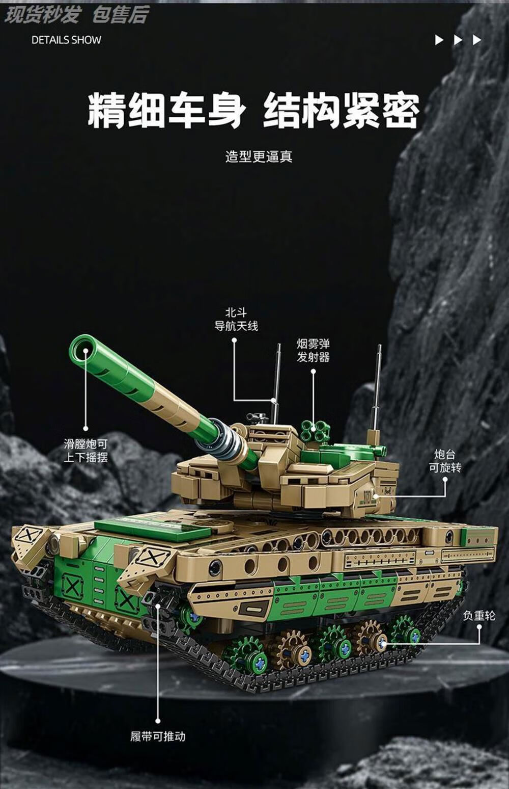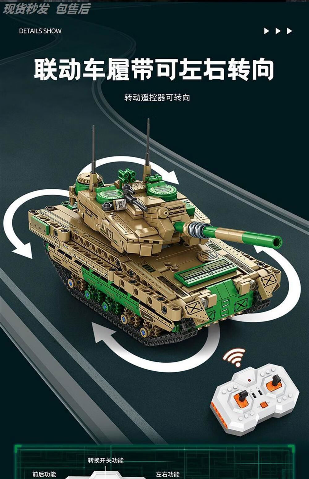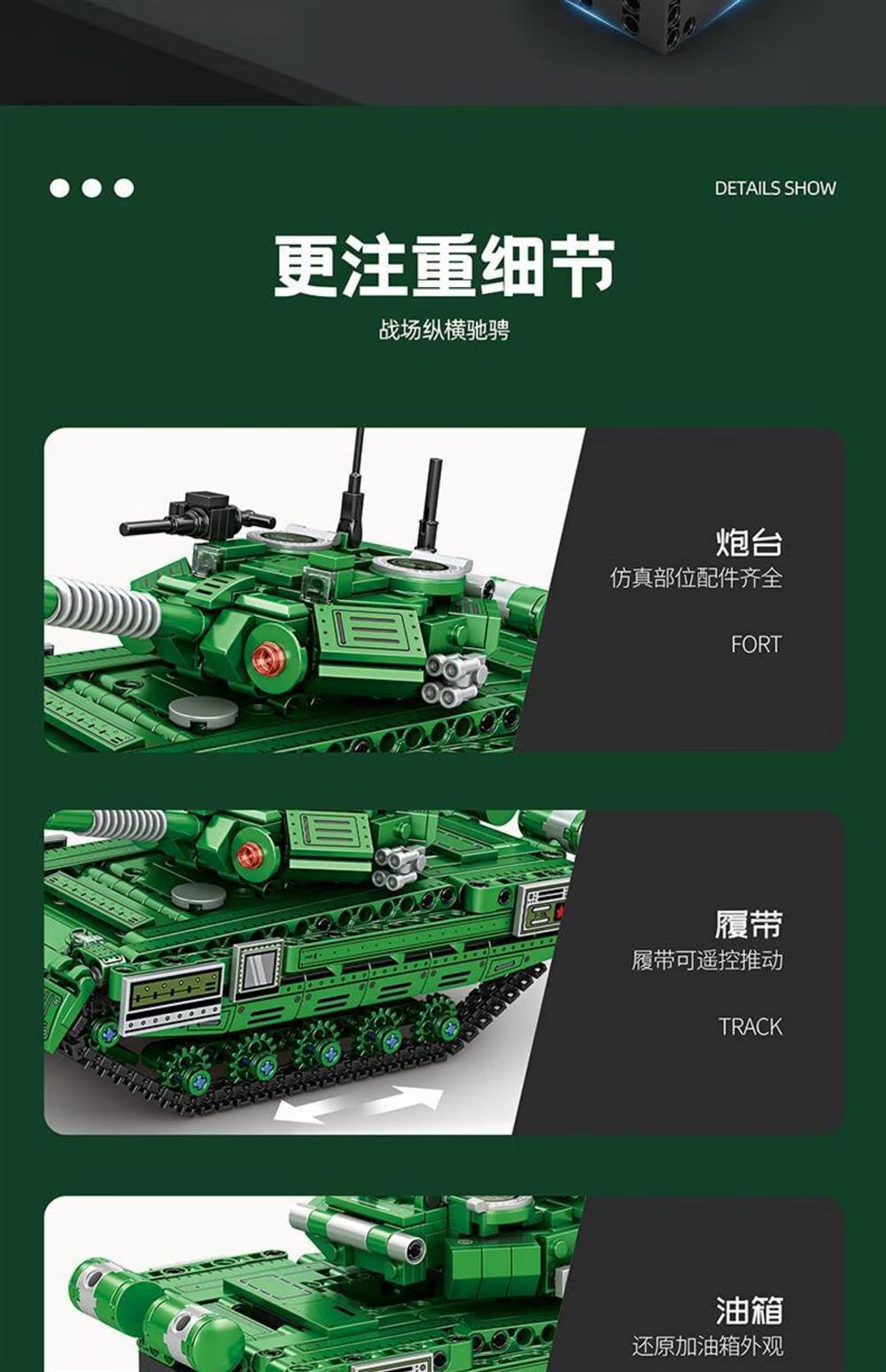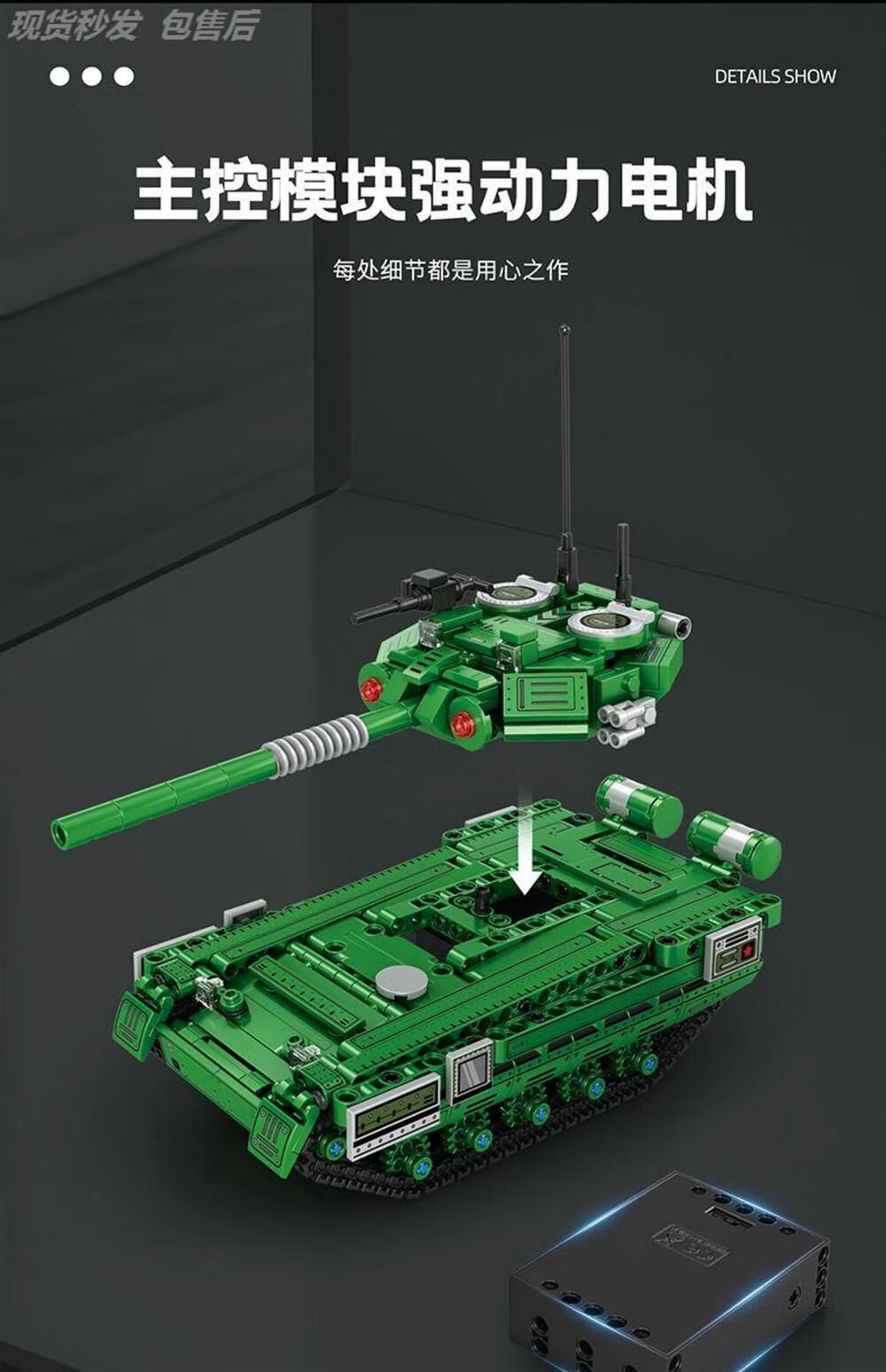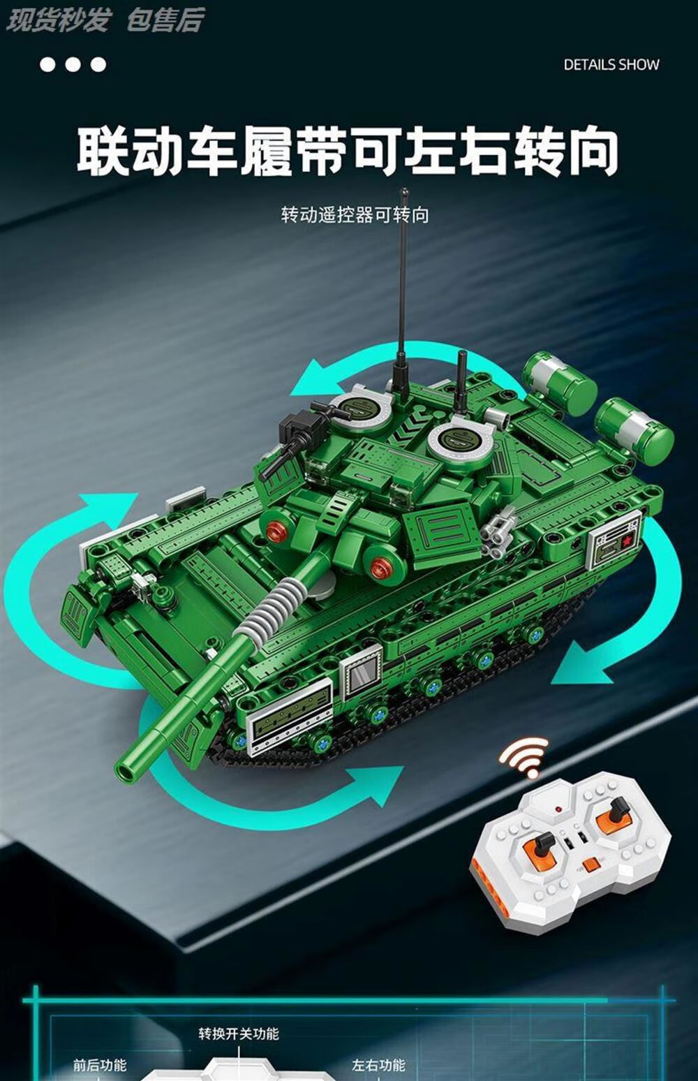 Remote control tank building blocks 2025 new 99A boys and children electric assembled military model boy gift toy 8701 technology remote control car-124 package after-sales