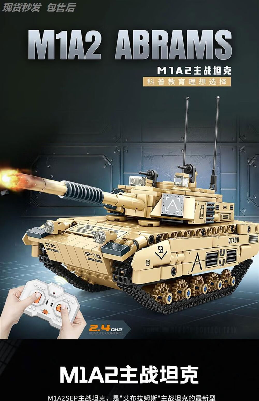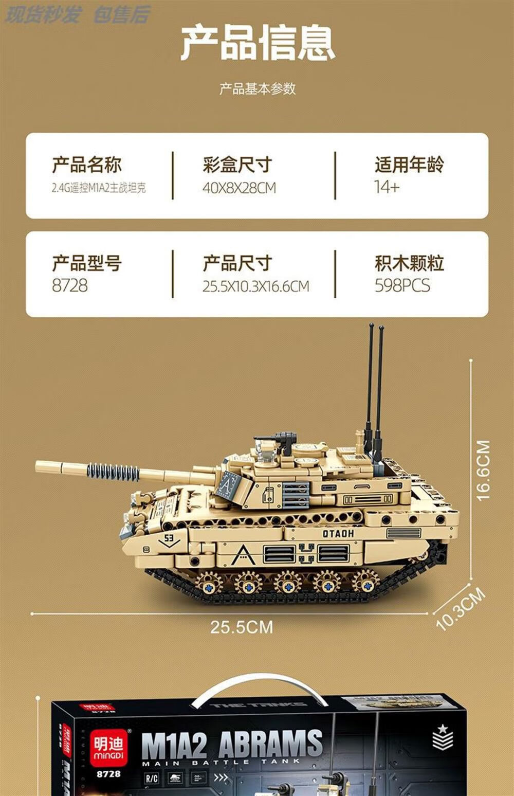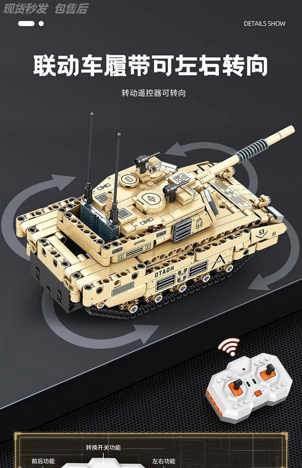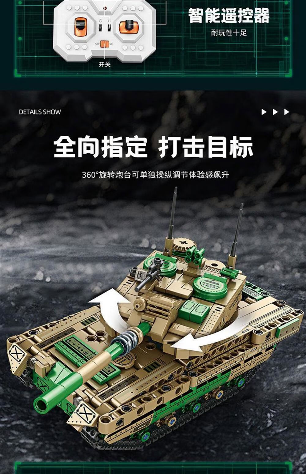Remote control tank building blocks 2025 new 99A boys and children electric assembled military model boy gift toy 8701 technology remote control car-124 package after-sales