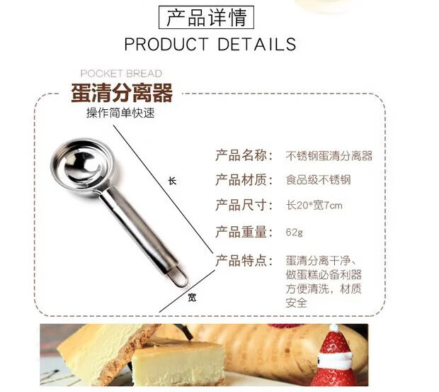 OIMG egg separator stainless steel egg yolk egg white protein separator egg liquid filter filter egg separator factory egg long handle separator (collection priority delivery) trial 1 pack