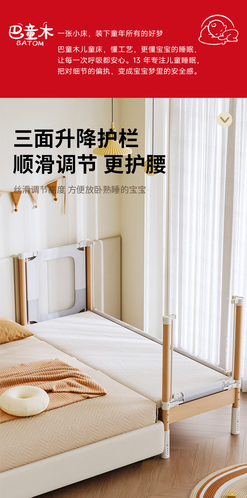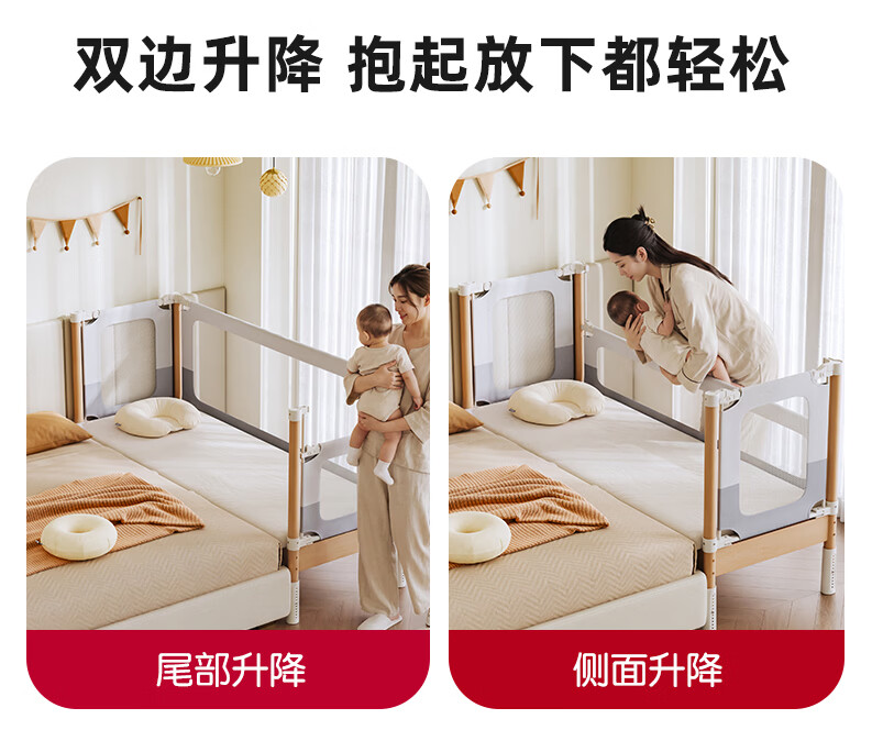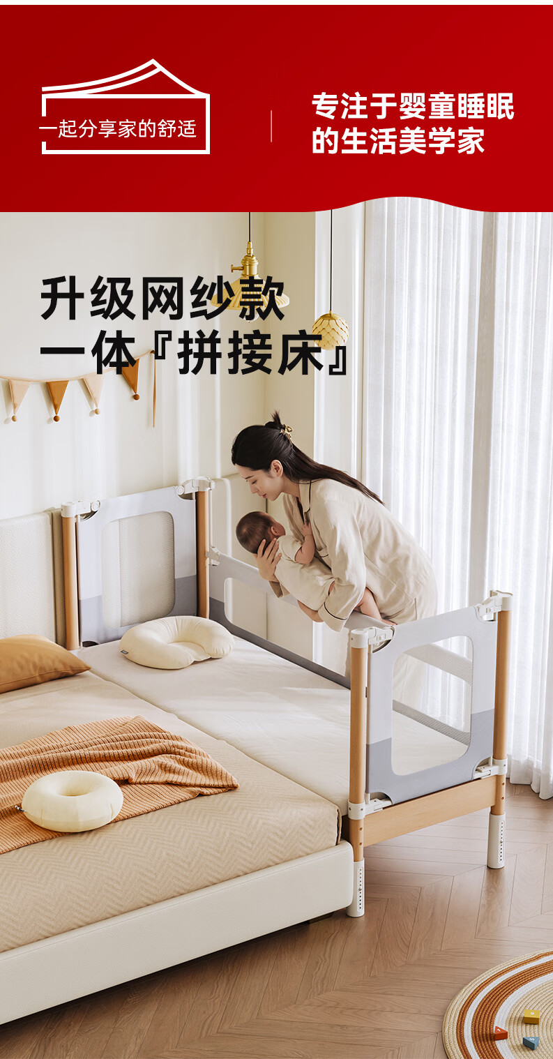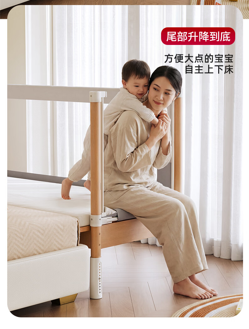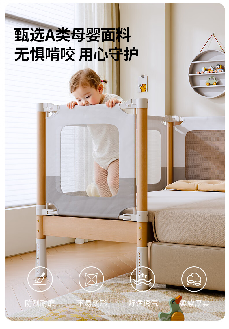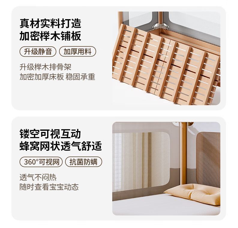 BARTOMOON beech spliced bed crib solid wood children's bed widened children's bedside bed heightened guardrails can be lifted and removed and washed Single bed (three-sided guardrails) + 6cm removable and washable coconut palm mattress 200*60CM three-sided guardrails can be lifted and removed and washed All beech