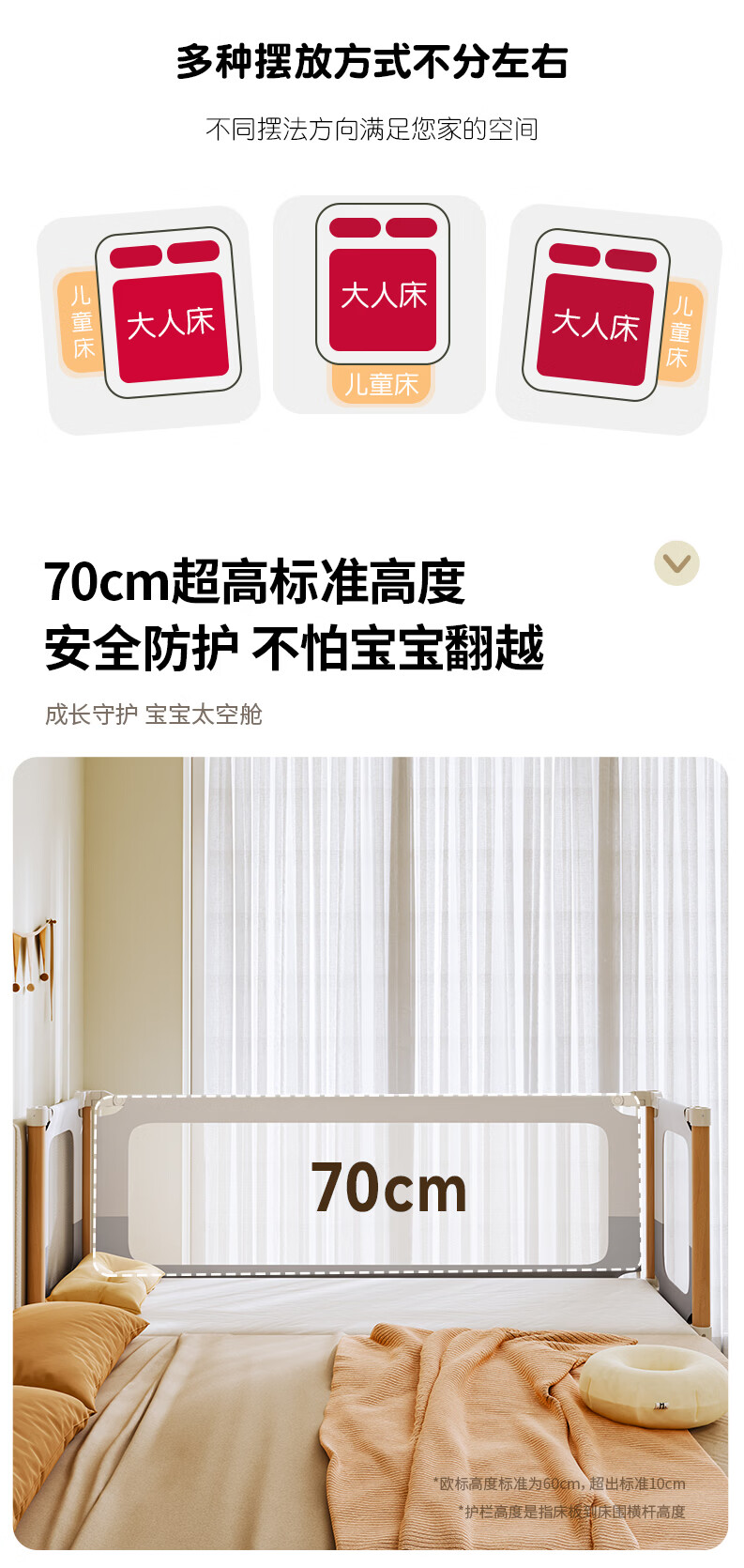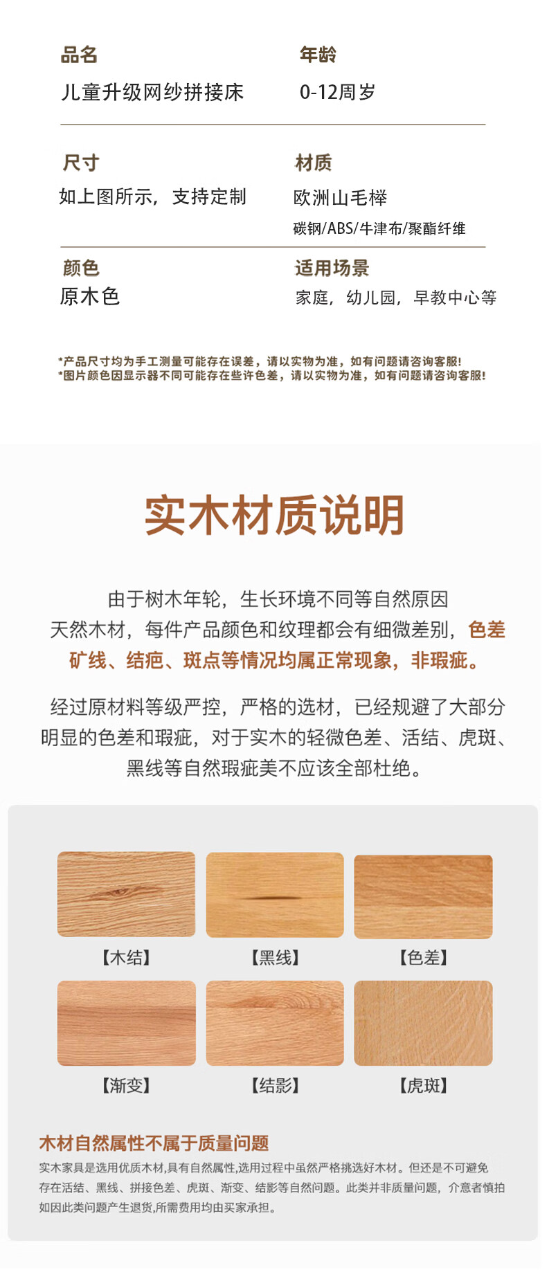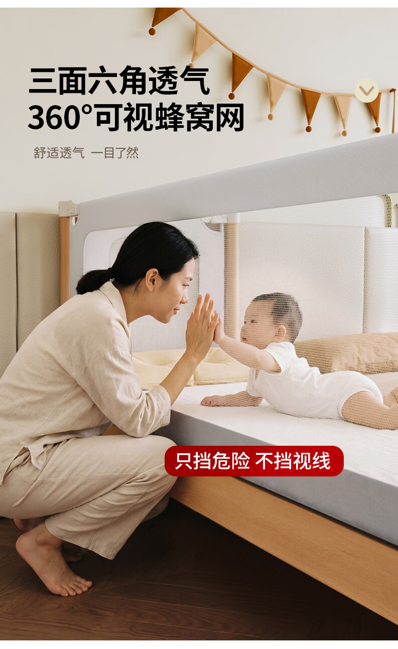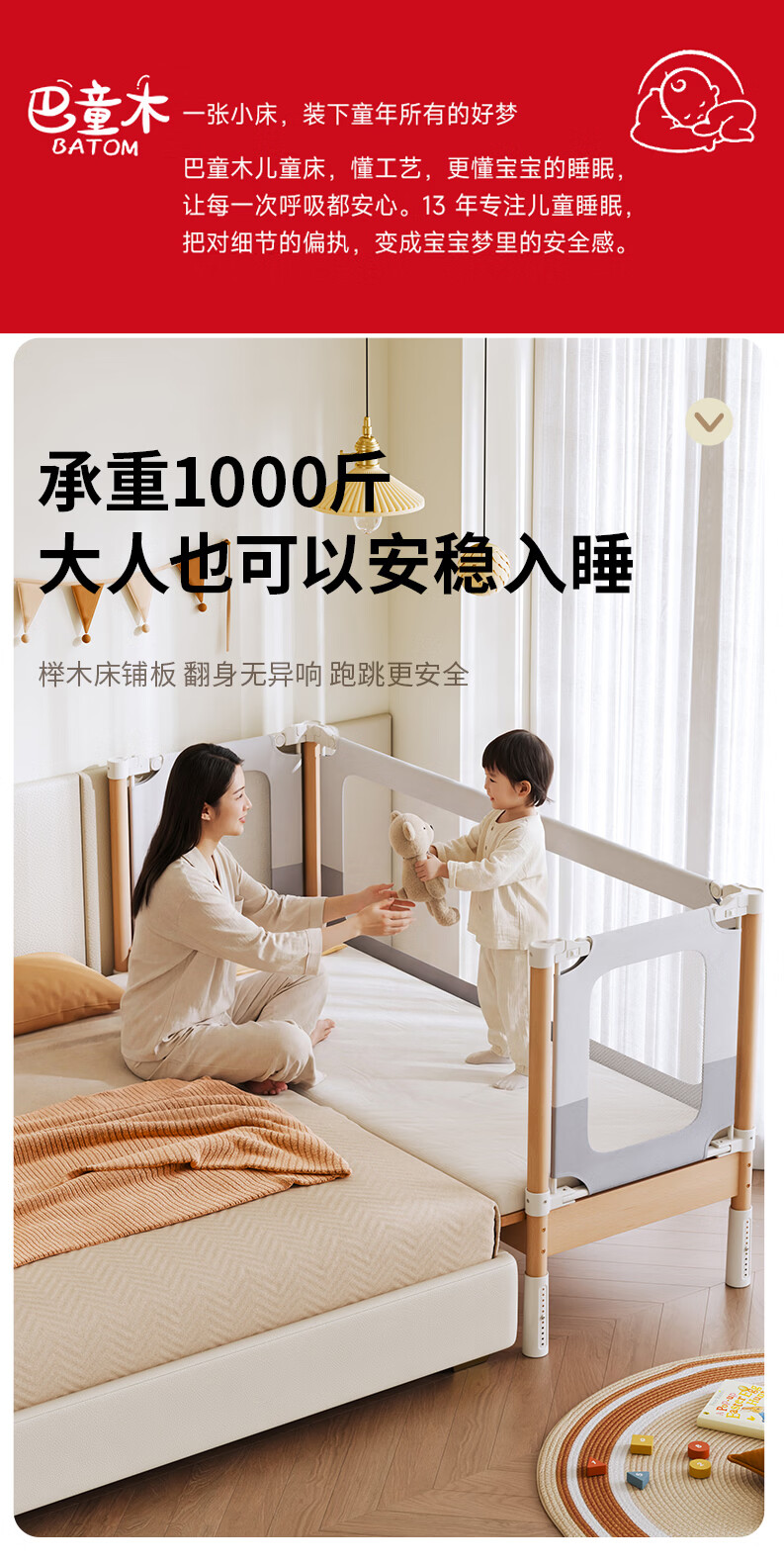 BARTOMOON beech spliced bed crib solid wood children's bed widened children's bedside bed heightened guardrails can be lifted and removed and washed Single bed (three-sided guardrails) + 6cm removable and washable coconut palm mattress 200*60CM three-sided guardrails can be lifted and removed and washed All beech