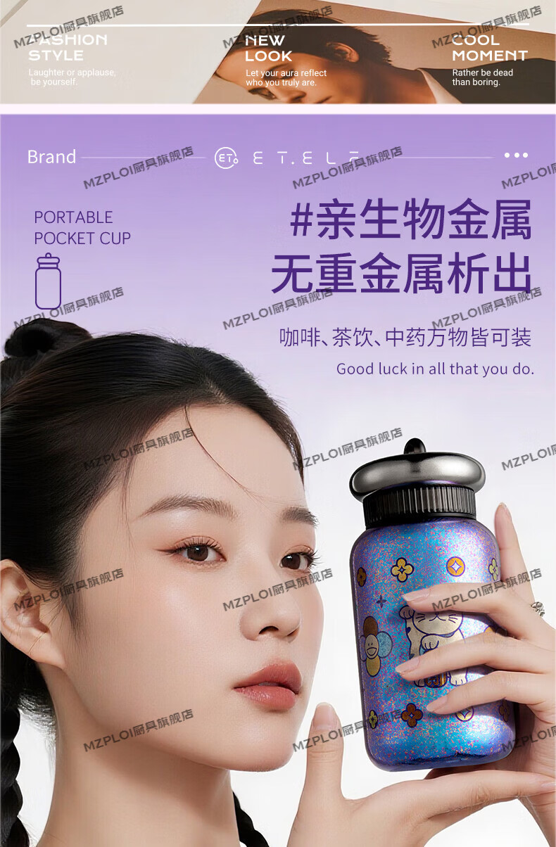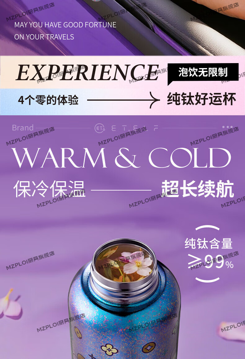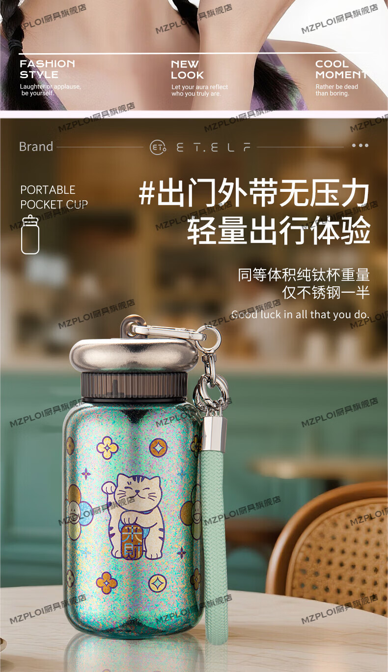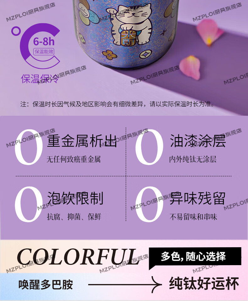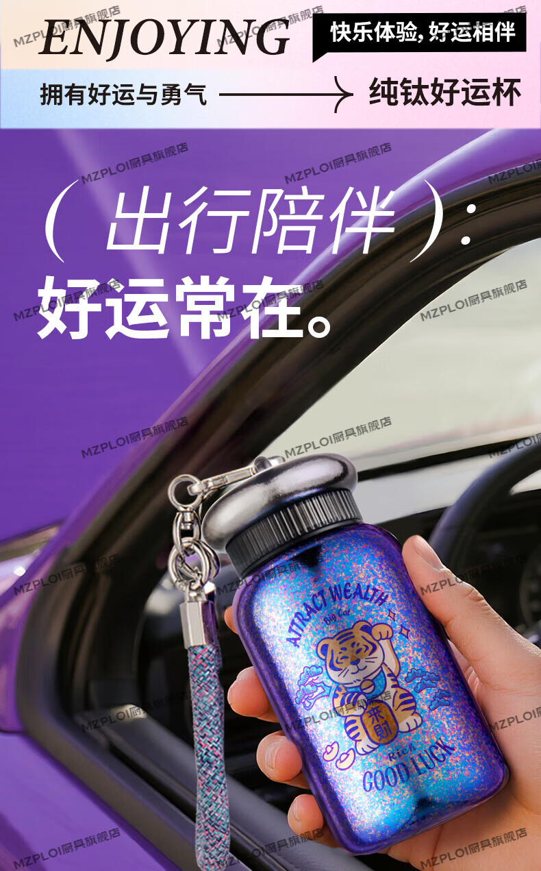 MZPLOI Japan imported quality double-layer pure titanium insulated water cup, good-looking girl, small, portable, take-out coffee birthday gift, easy to get rich, dreamy purple/good luck cup 300ml