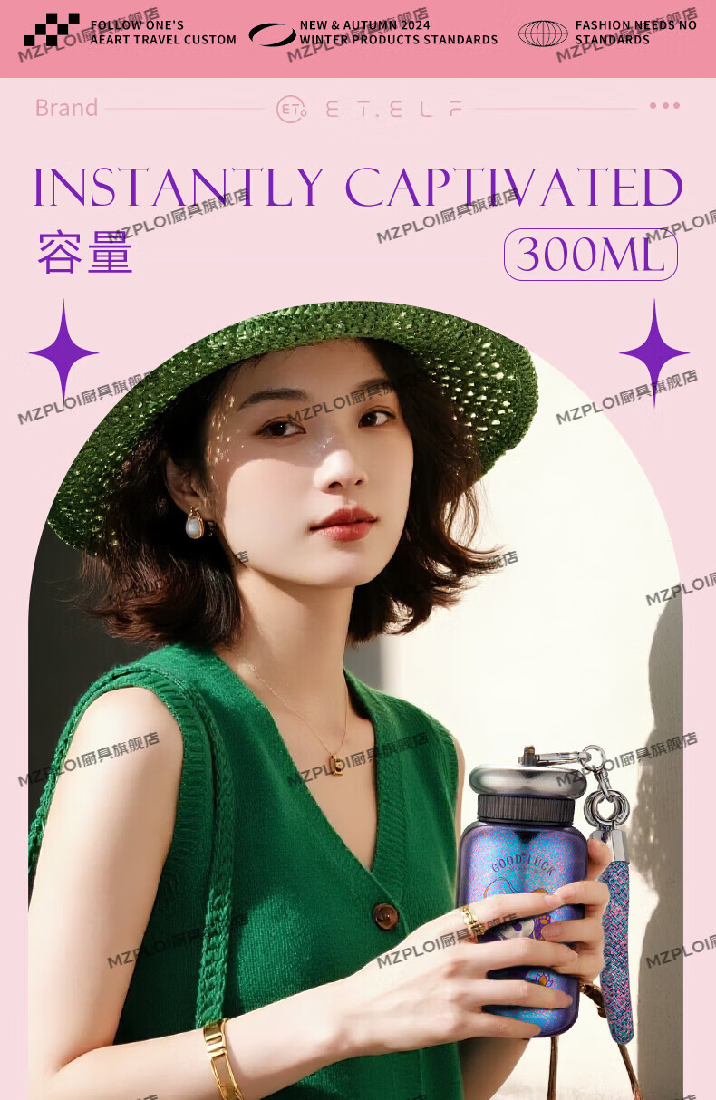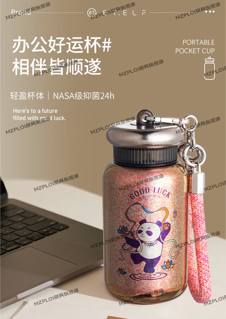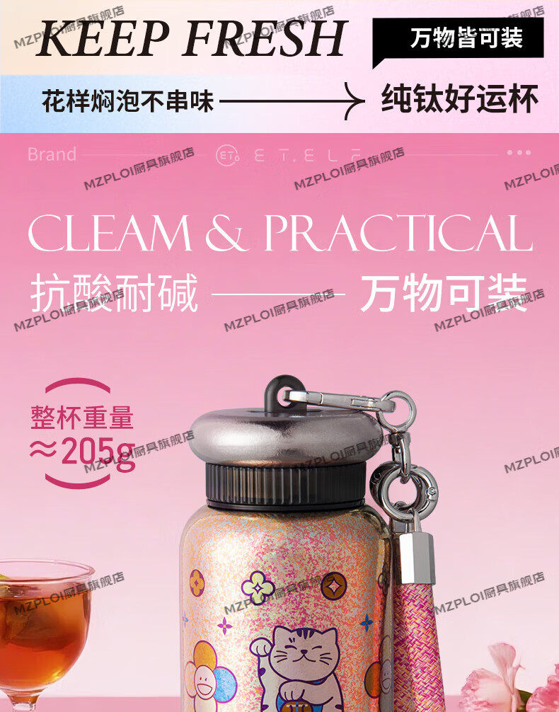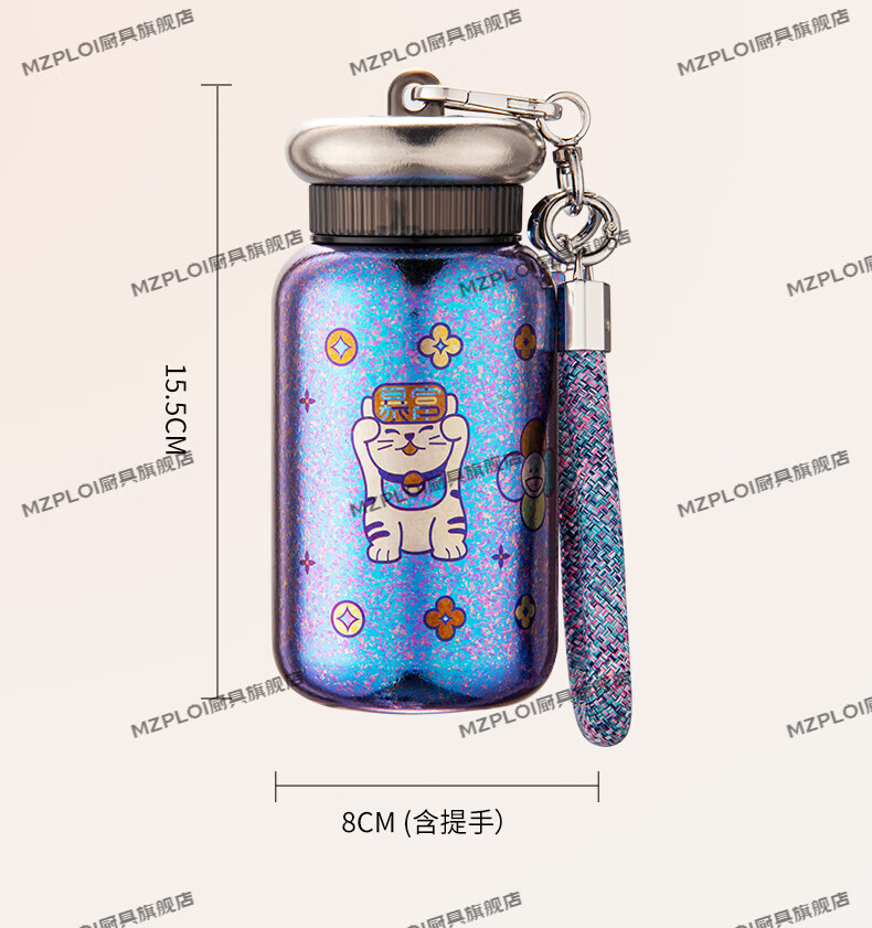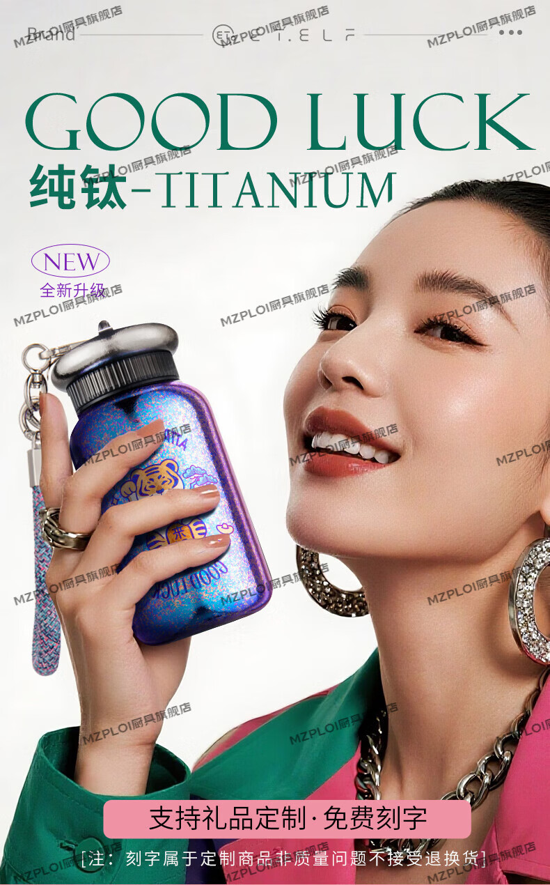 MZPLOI Japan imported quality double-layer pure titanium insulated water cup, good-looking girl, small, portable, take-out coffee birthday gift, easy to get rich, dreamy purple/good luck cup 300ml
