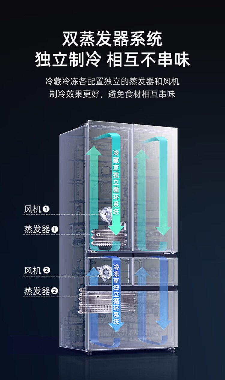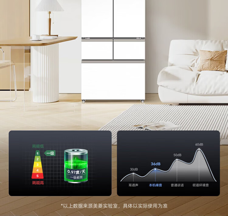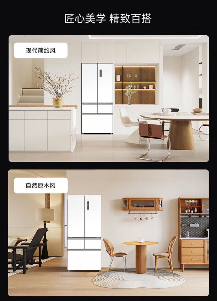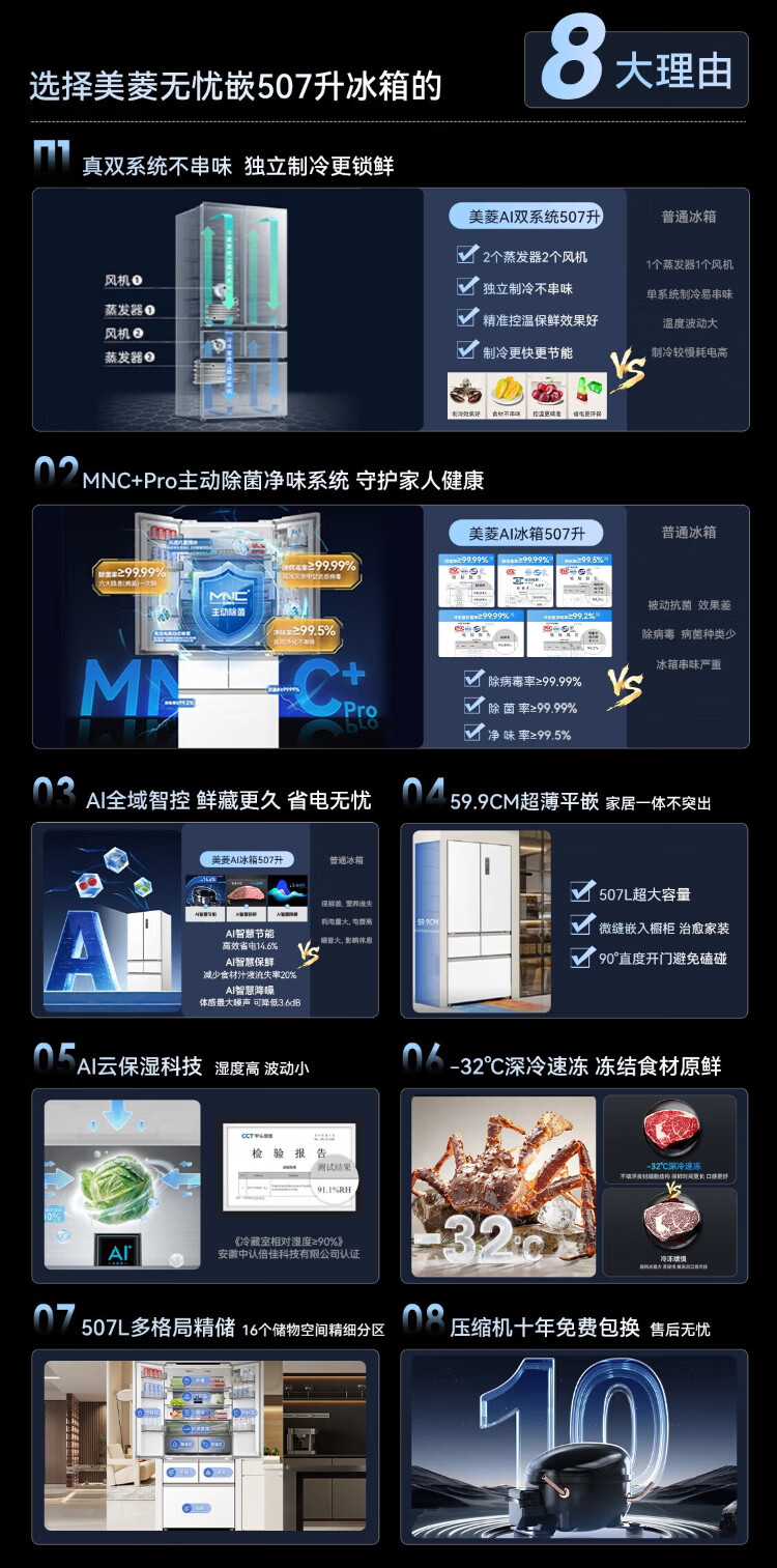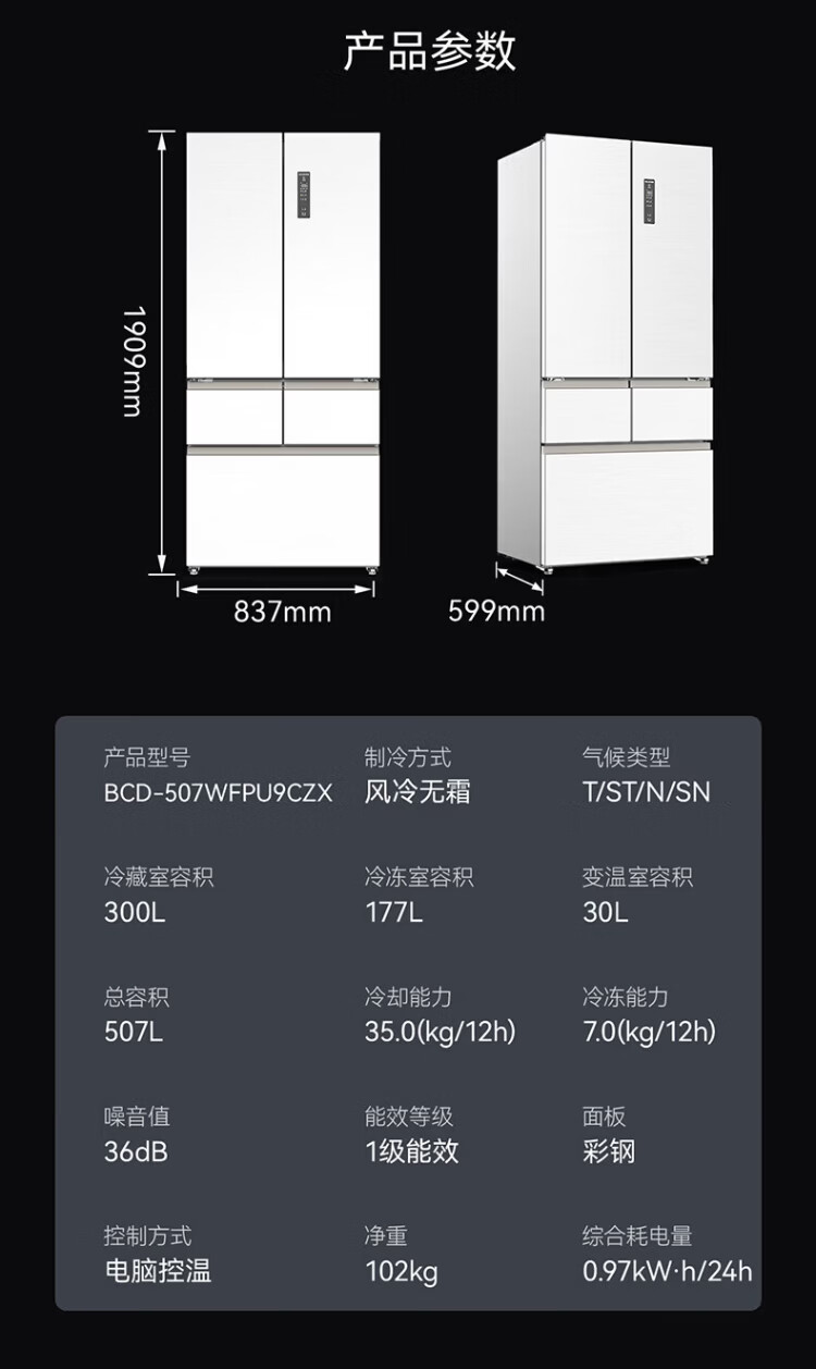 MeiLing AI dual system refrigerator 507 liters 508 liters French multi-door five-door ultra-thin zero-embedded refrigerator active sterilization and deodorization first-class energy efficiency and frost-free 508 liters AI global intelligent control dual system zero embedded-Xingbo Gray