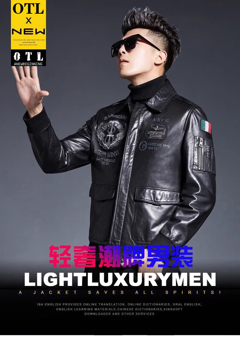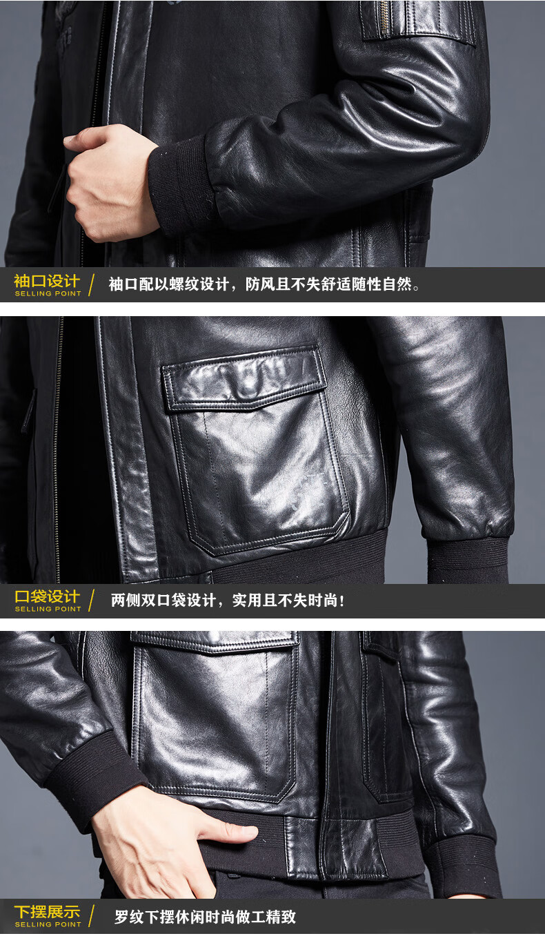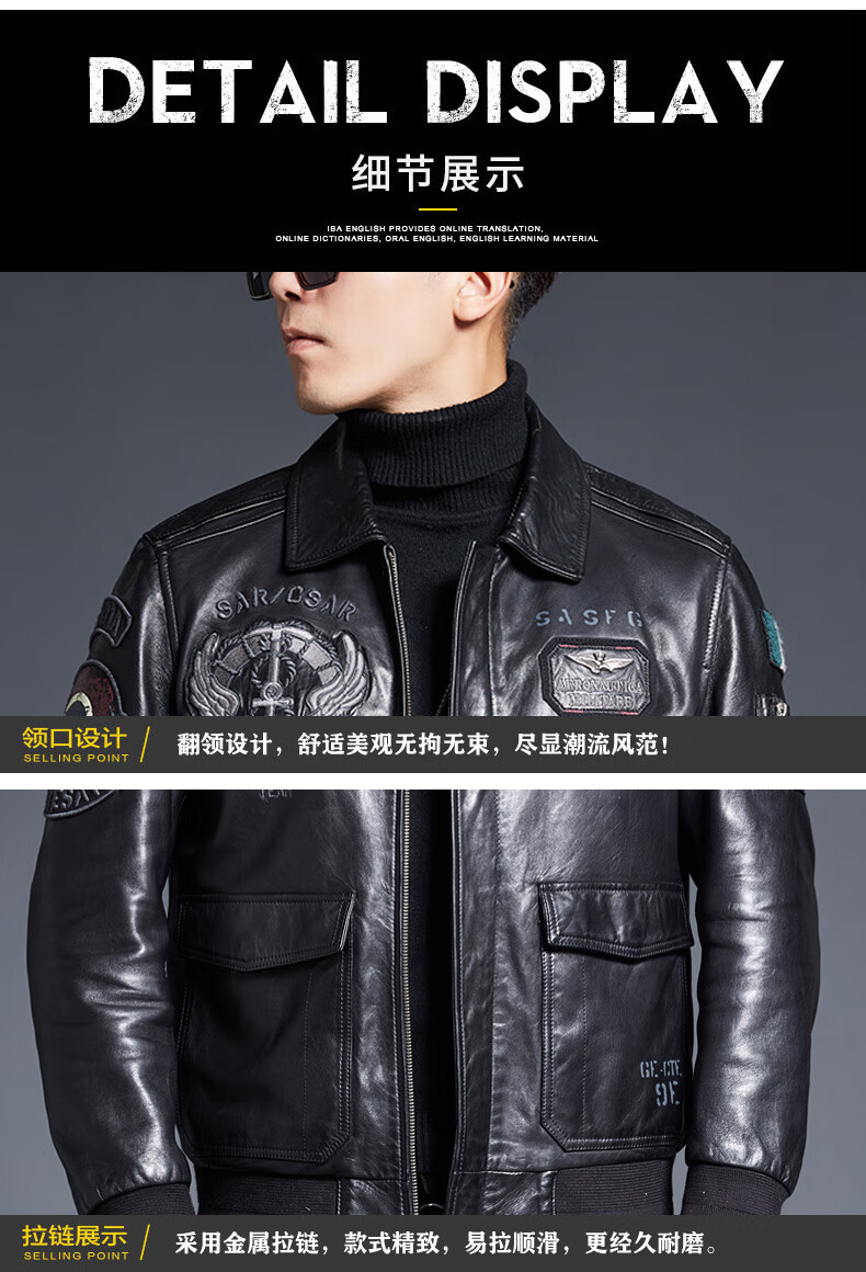 ARMANI EXCHANGE Armani 2025 new sheep leather jacket men's motorcycle jacket lapel B6 air force flight embroidered leather jacket spring and autumn black silk cotton + lamb fur collar L 110-125Jin Jin equals 0.5 kg