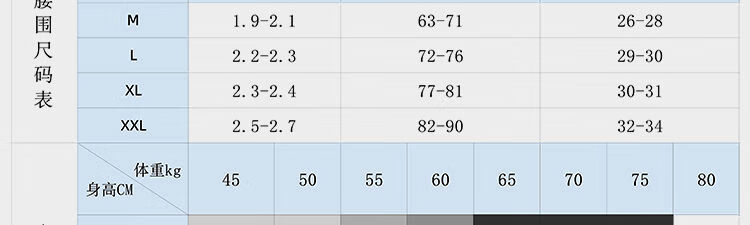 USA(inch) 28-30 30-32 32-34 34-38 38-42