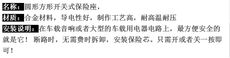 Car audio with switch fuse holder 12V current power line protection automatic recovery position circuit breaker 40A round