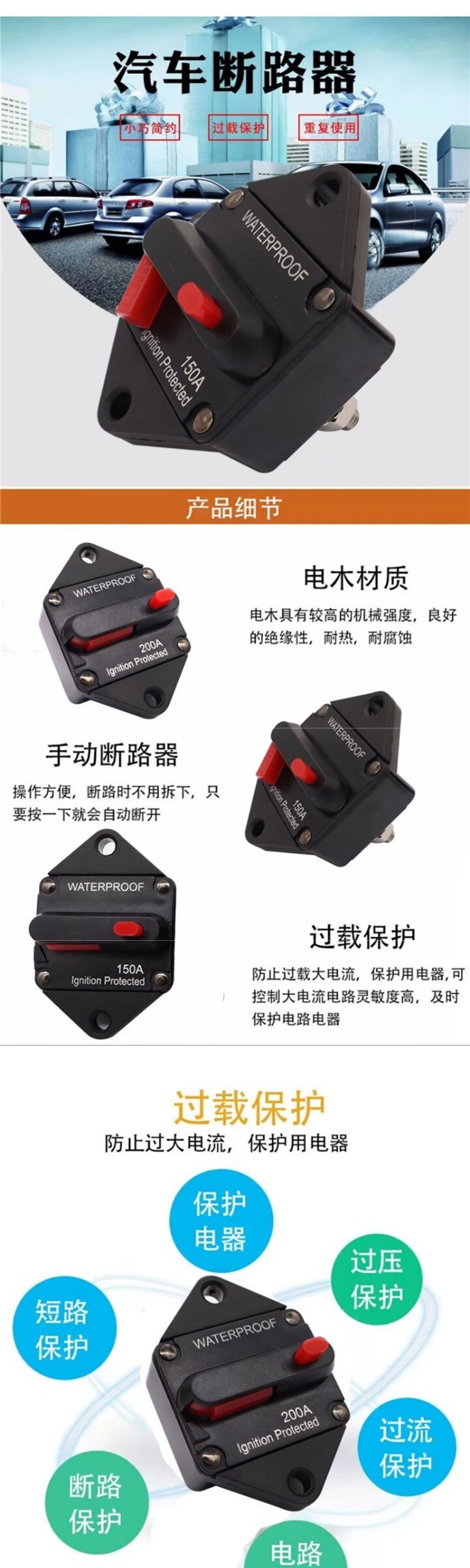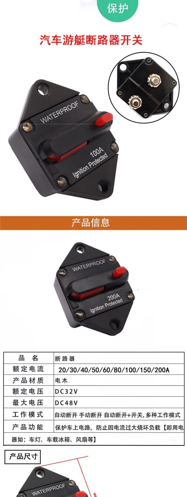 Car, RV, yacht circuit breaker switch audio automatic recovery fuse holder high current audio fuse holder 20A