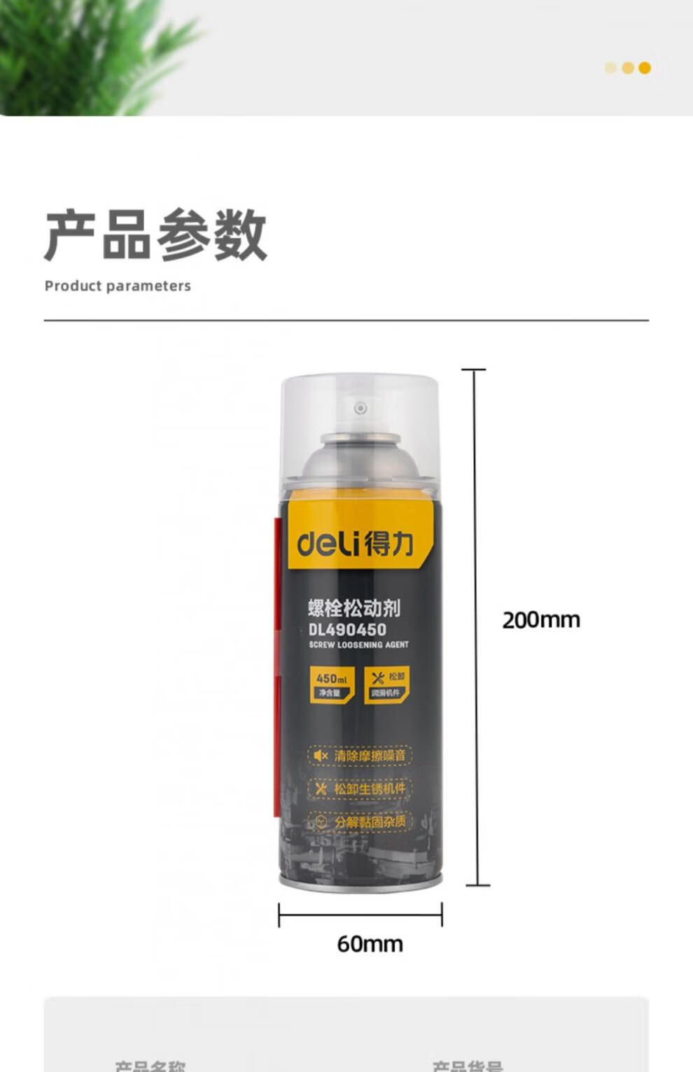 DELI Bolt Loosening Agent Rust Remover Rust Cleaner Car Motorcycle Bicycle Door Lock Door Window Lubricating Screw DL-LS400X Bolt Loosening Agent 400ml