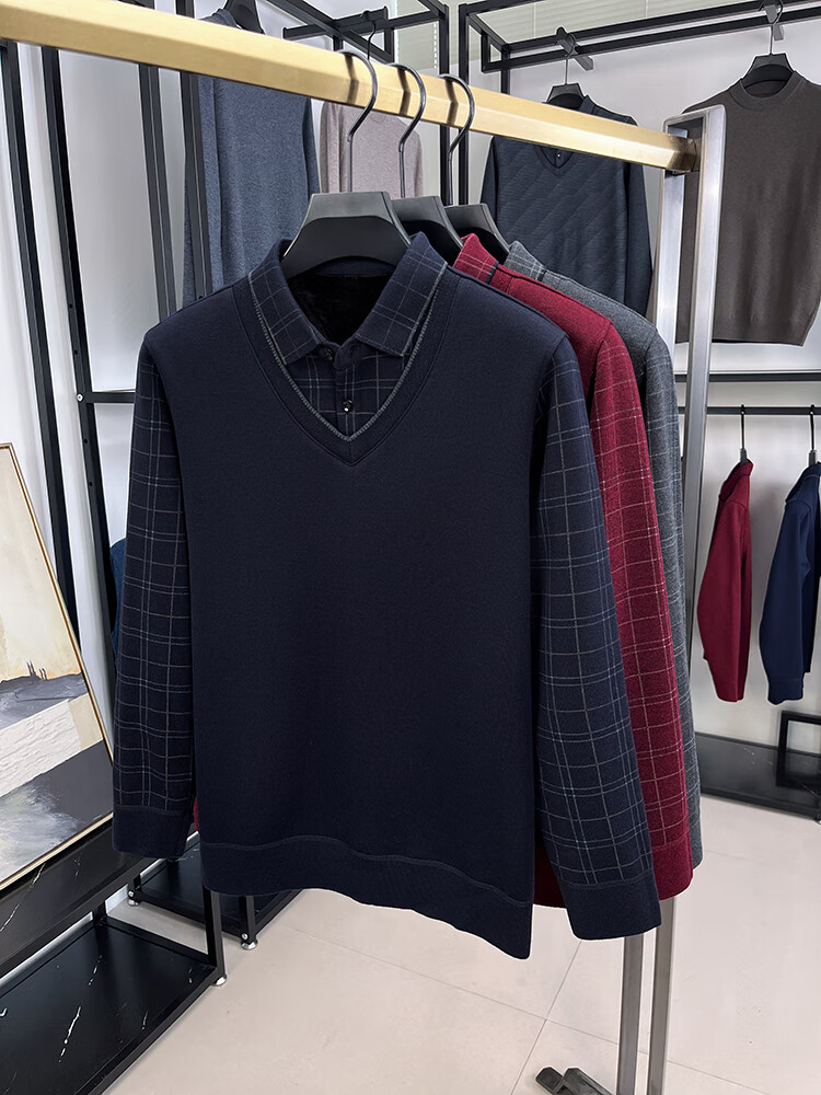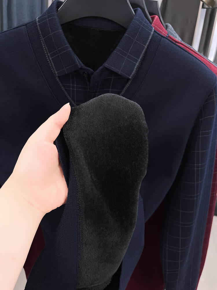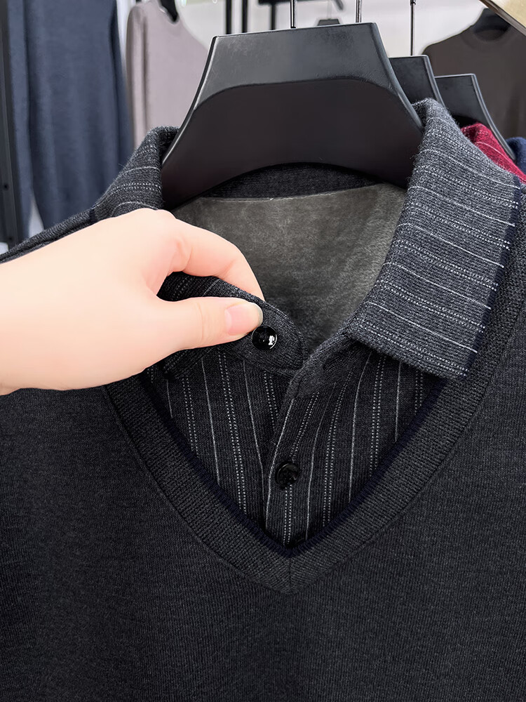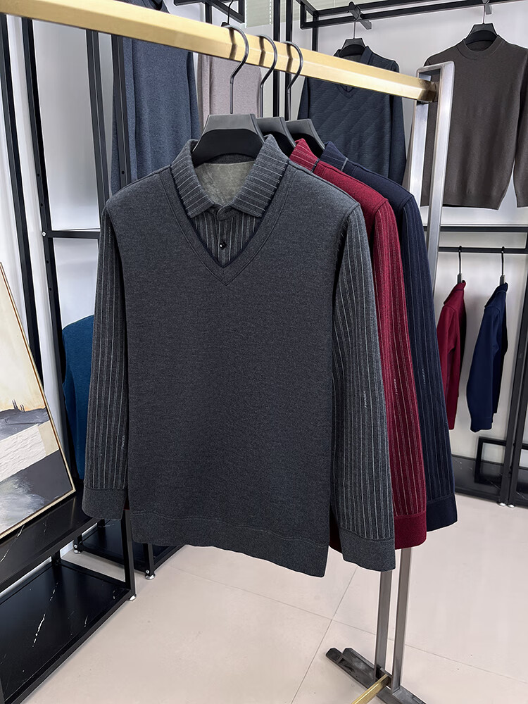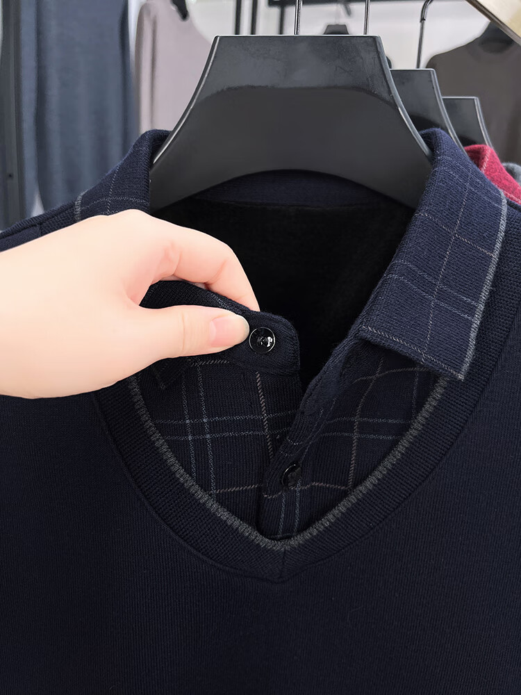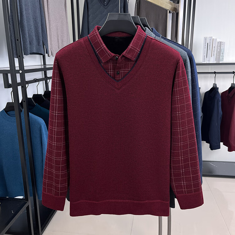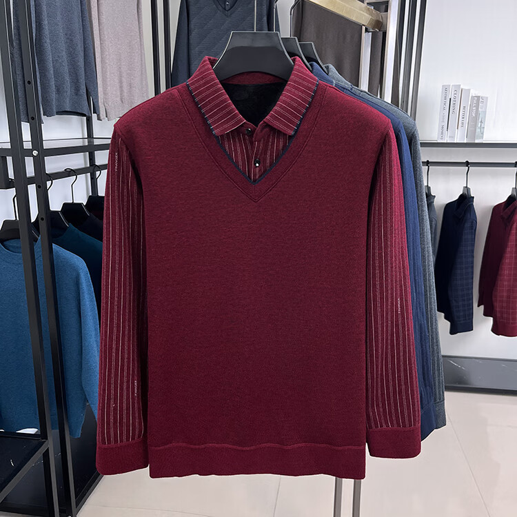 KAISER high-end men's fake two-piece zodiac year burgundy lapel sweater autumn and winter plus velvet thickened warm wool sweater plus velvet 276 burgundy thickened XL 52 recommended 135-150Jin Jin equals 0.5 kg