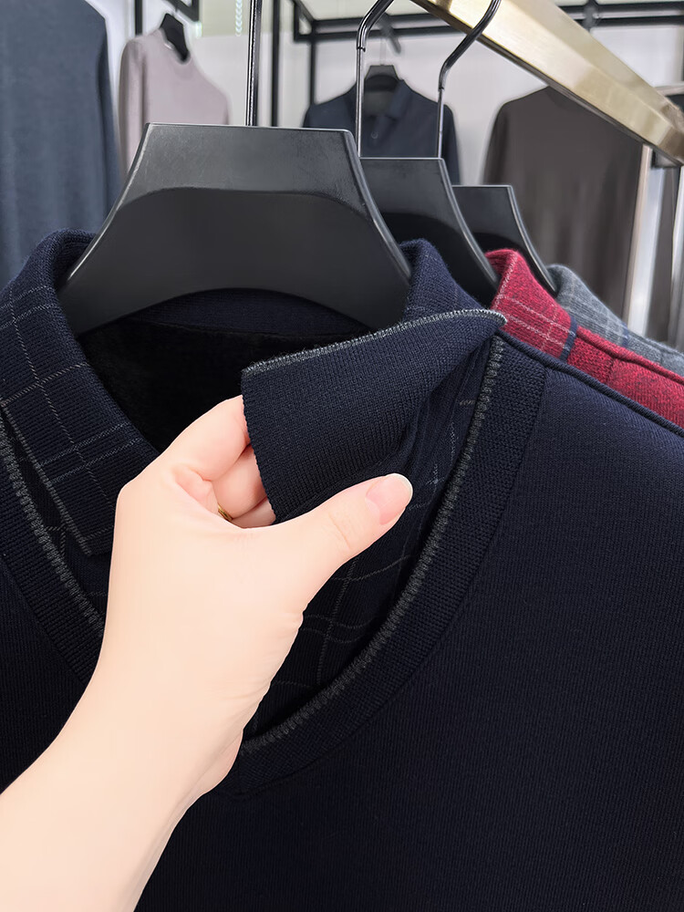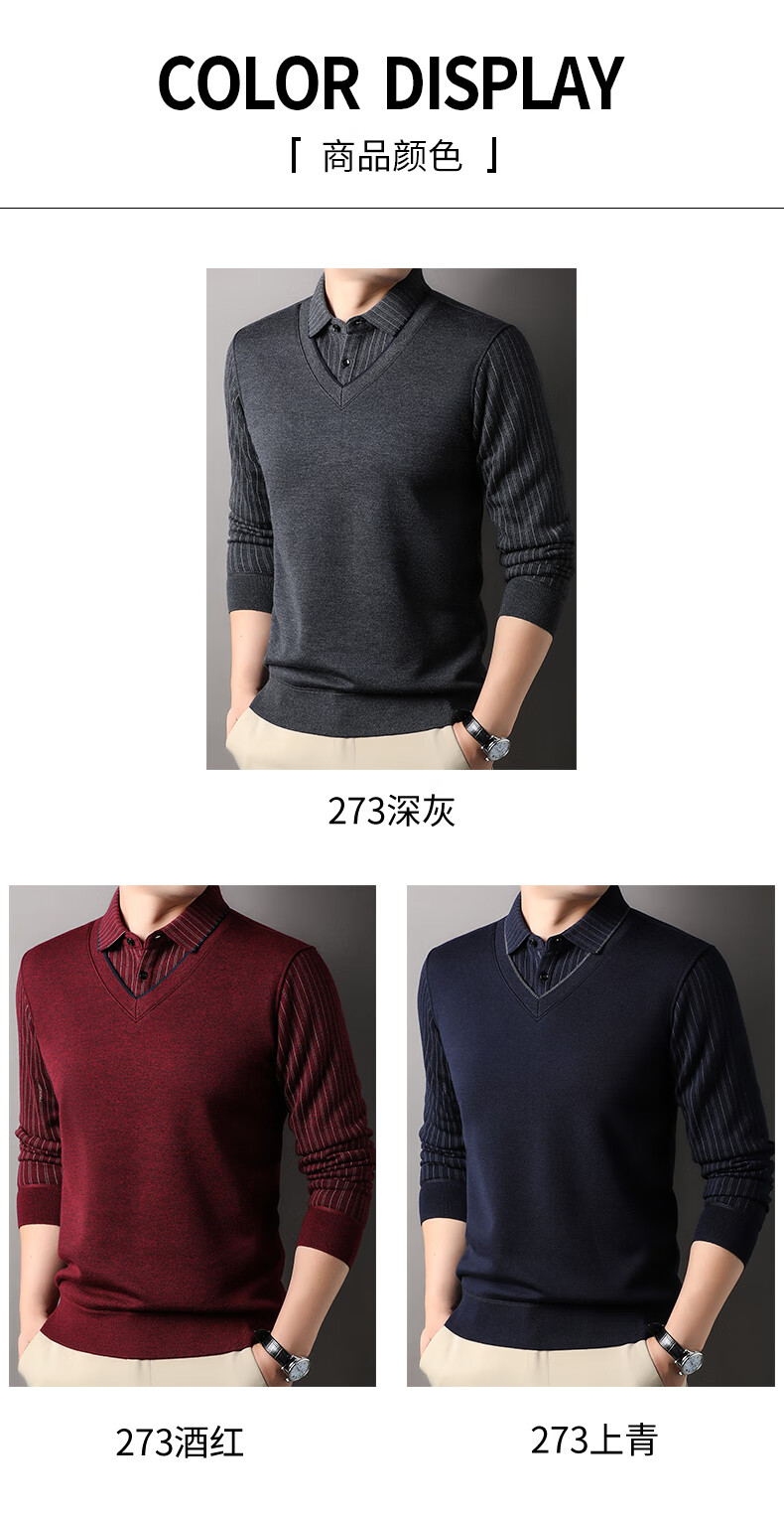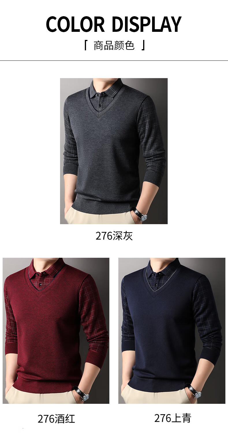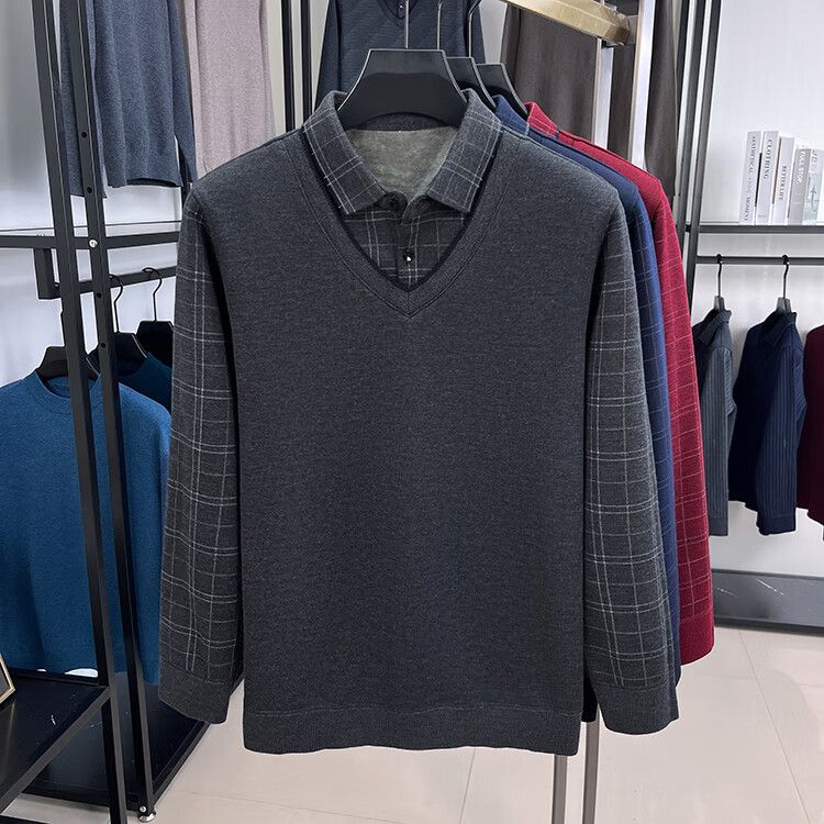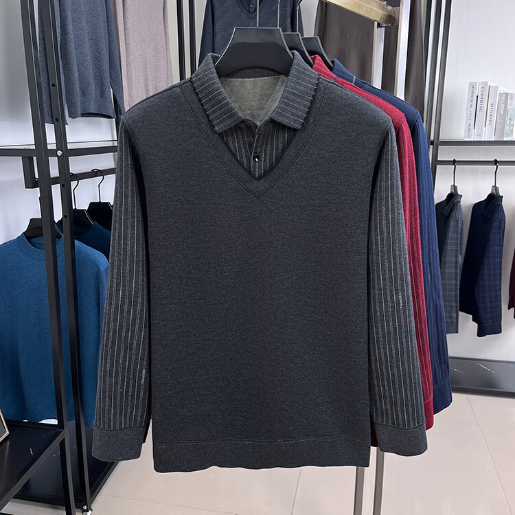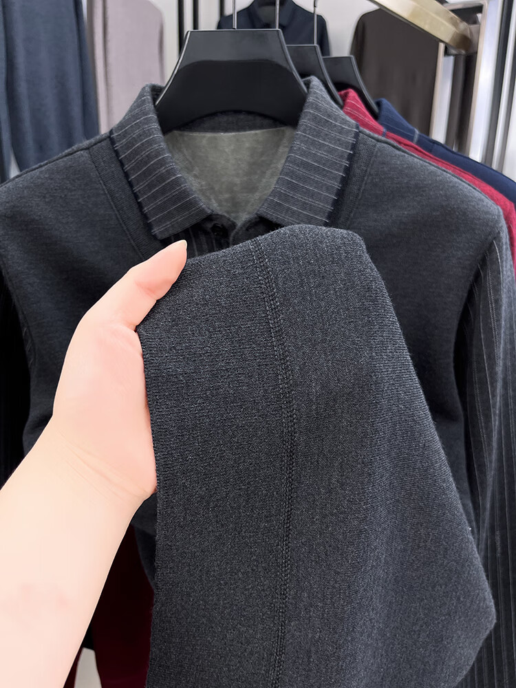 KAISER high-end men's fake two-piece zodiac year burgundy lapel sweater autumn and winter plus velvet thickened warm wool sweater plus velvet 276 burgundy thickened XL 52 recommended 135-150Jin Jin equals 0.5 kg
