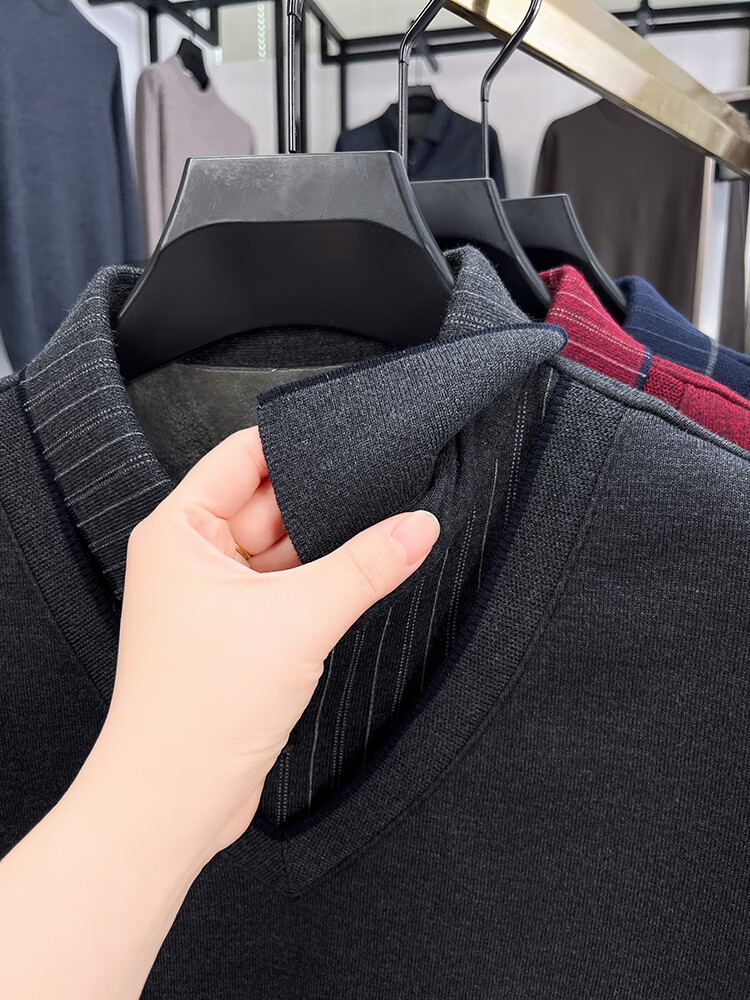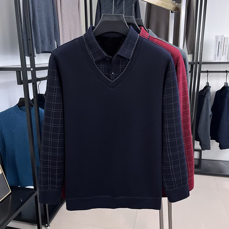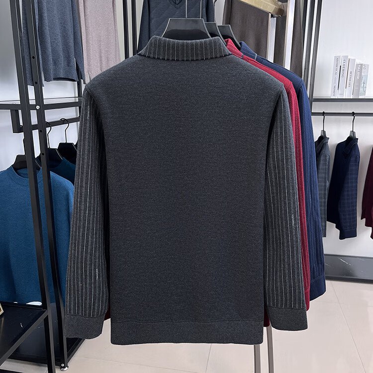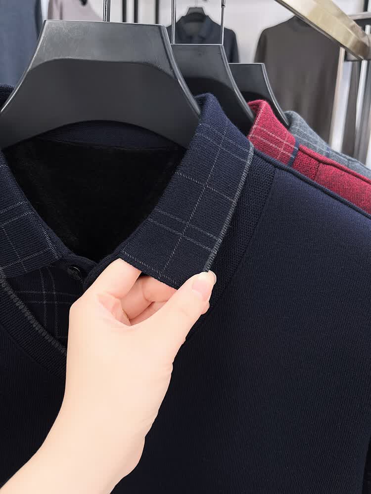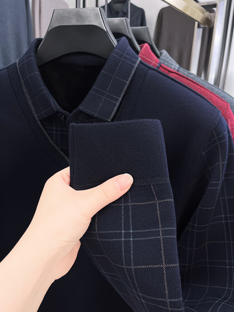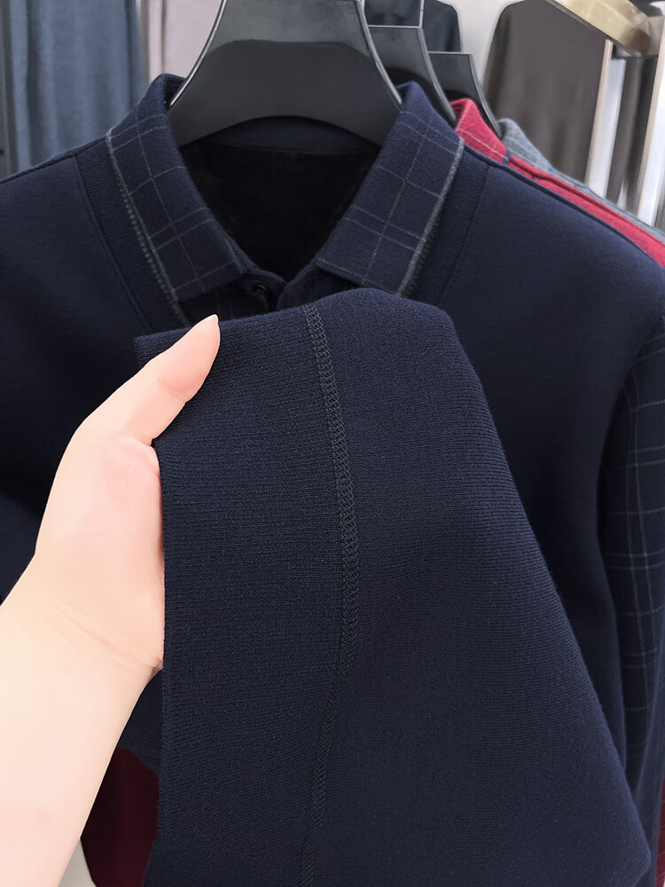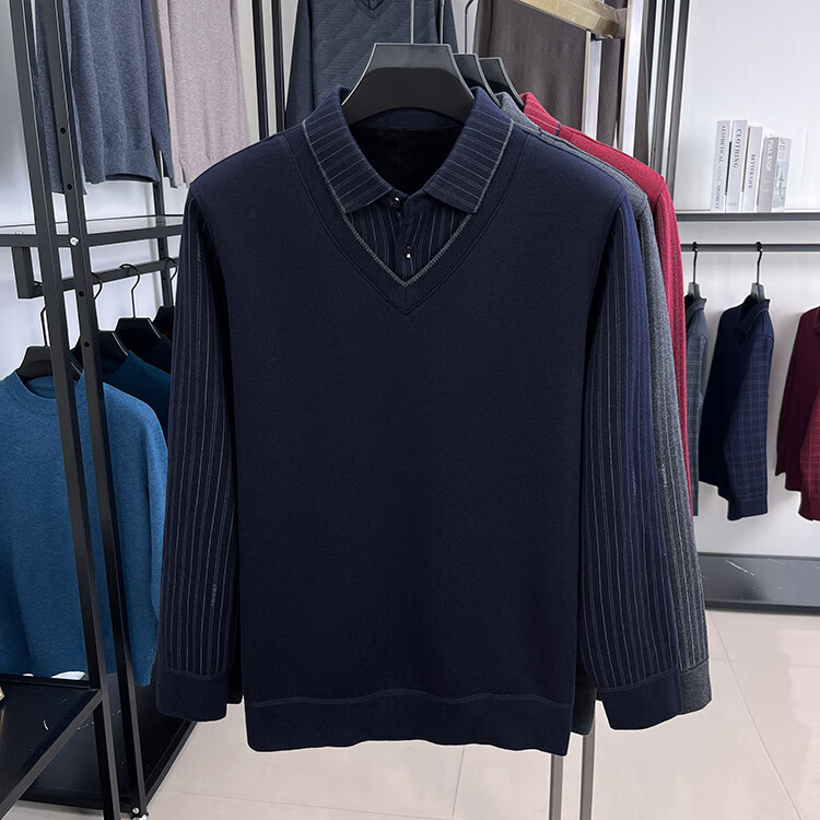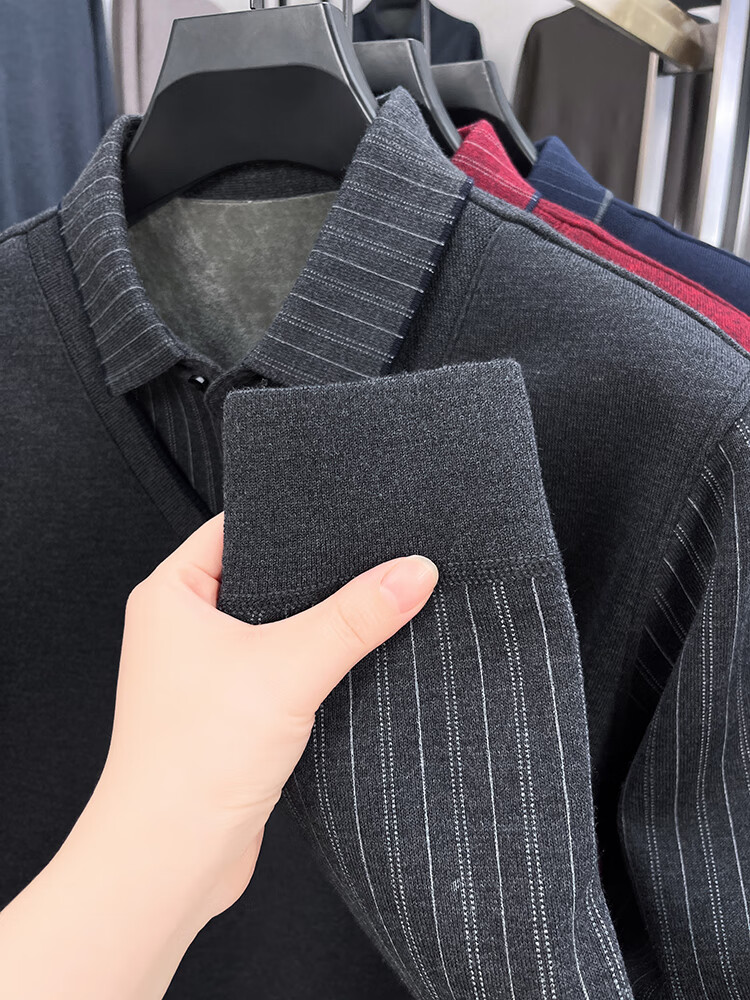 KAISER high-end men's fake two-piece zodiac year burgundy lapel sweater autumn and winter plus velvet thickened warm wool sweater plus velvet 276 burgundy thickened XL 52 recommended 135-150Jin Jin equals 0.5 kg