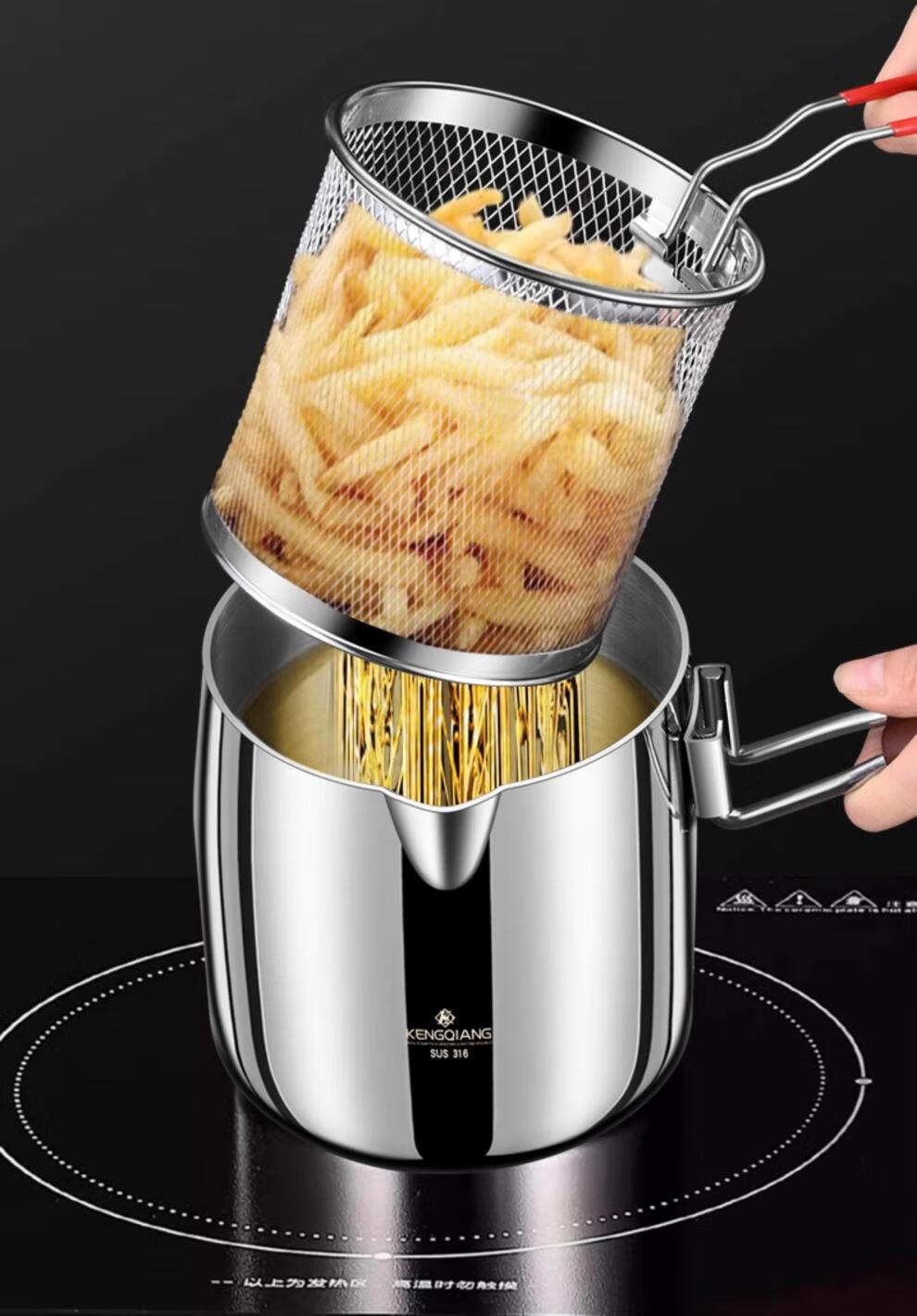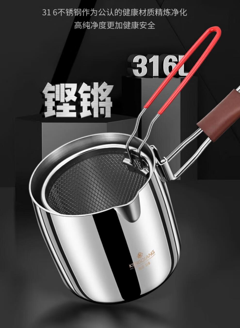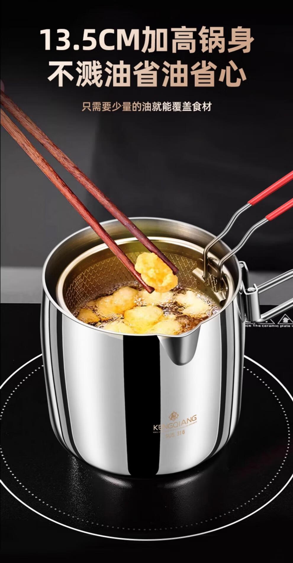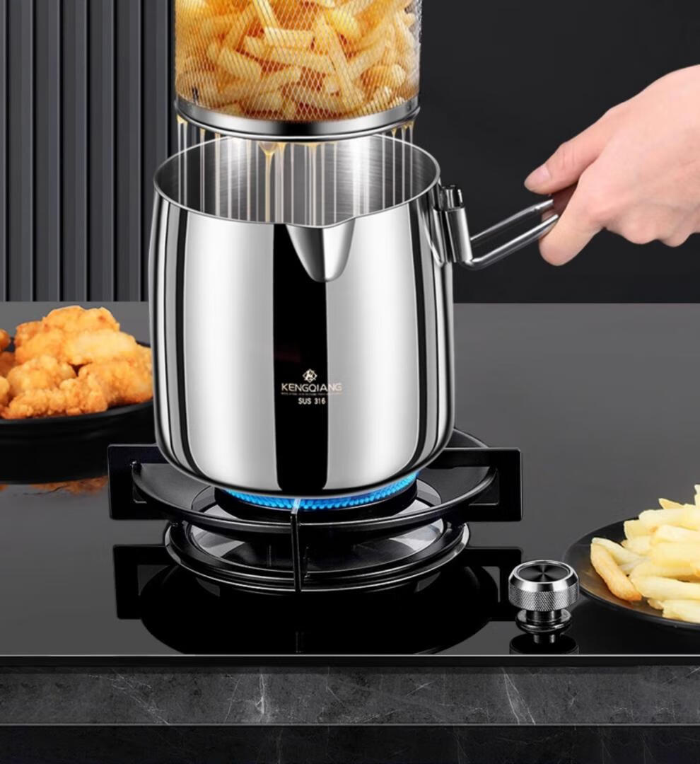 CKZSU imported quality 316 stainless steel fryer from Japan, heightened and deepened fryer, filter-saving fryer, double-ear model 316 deepened fryer 1cm 3.5L