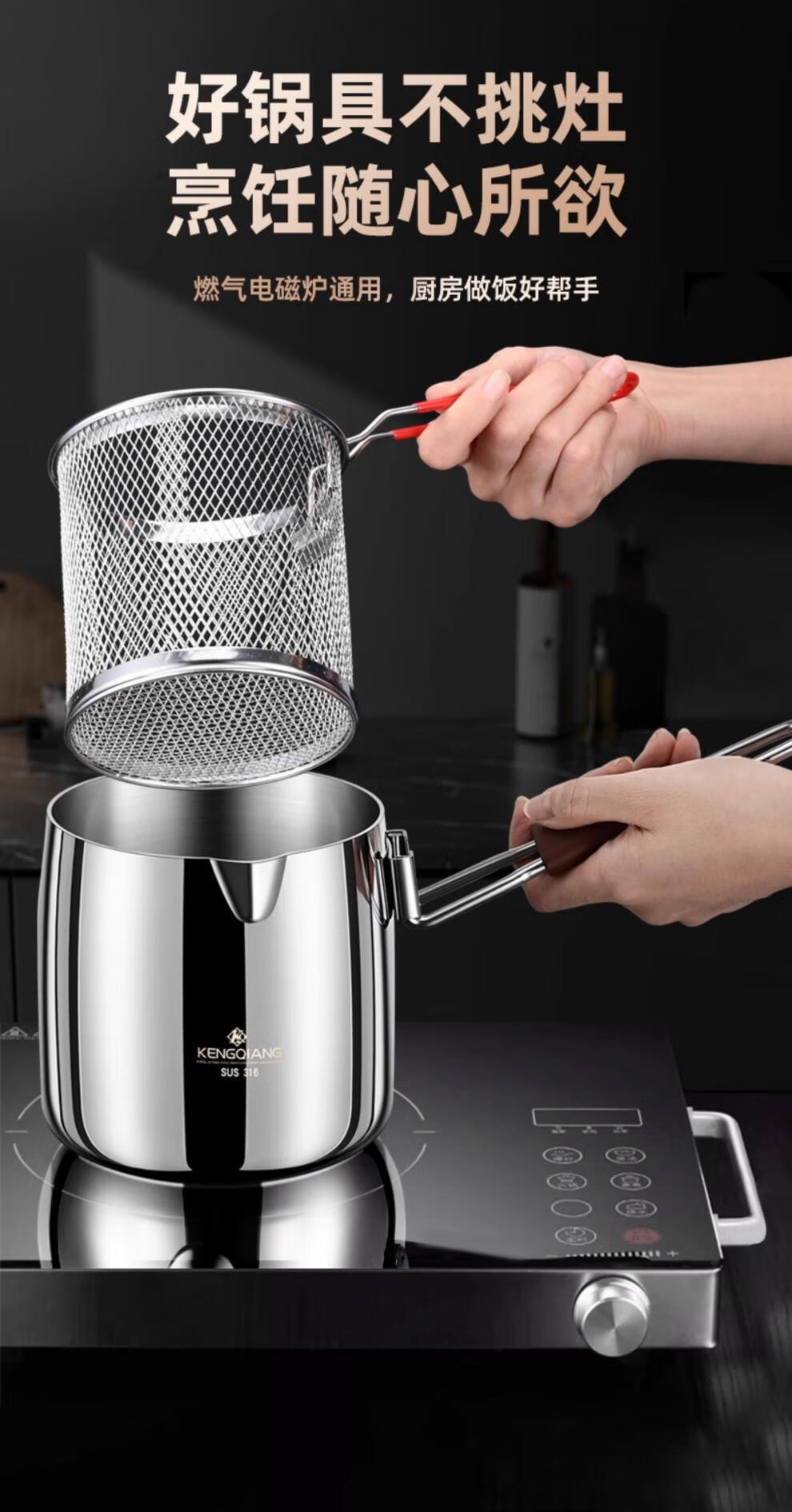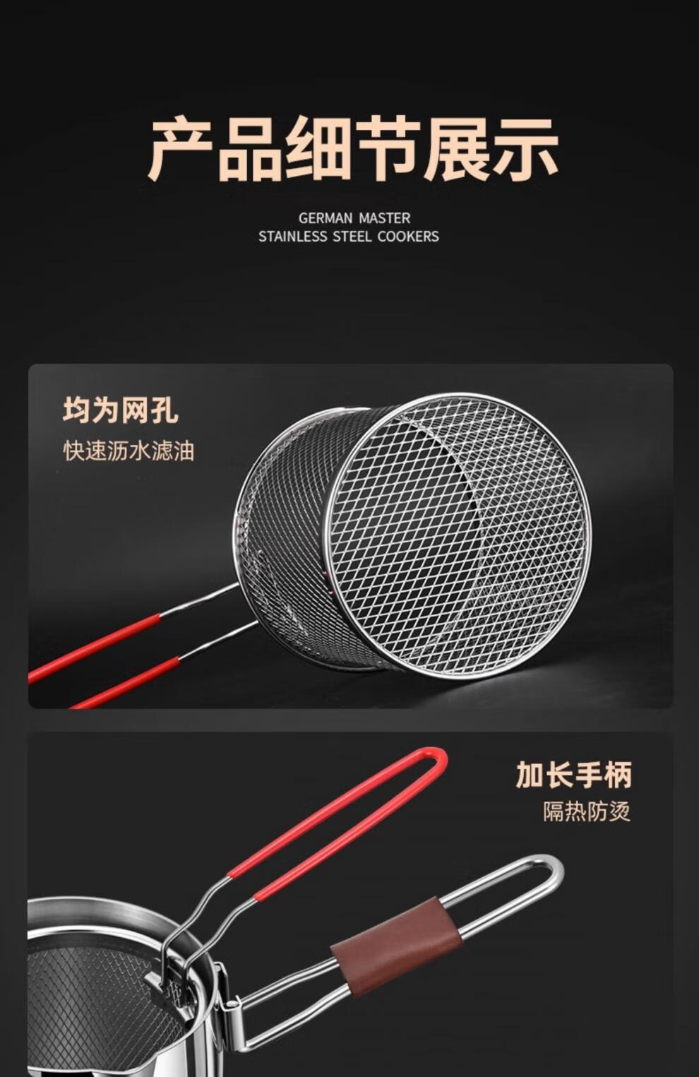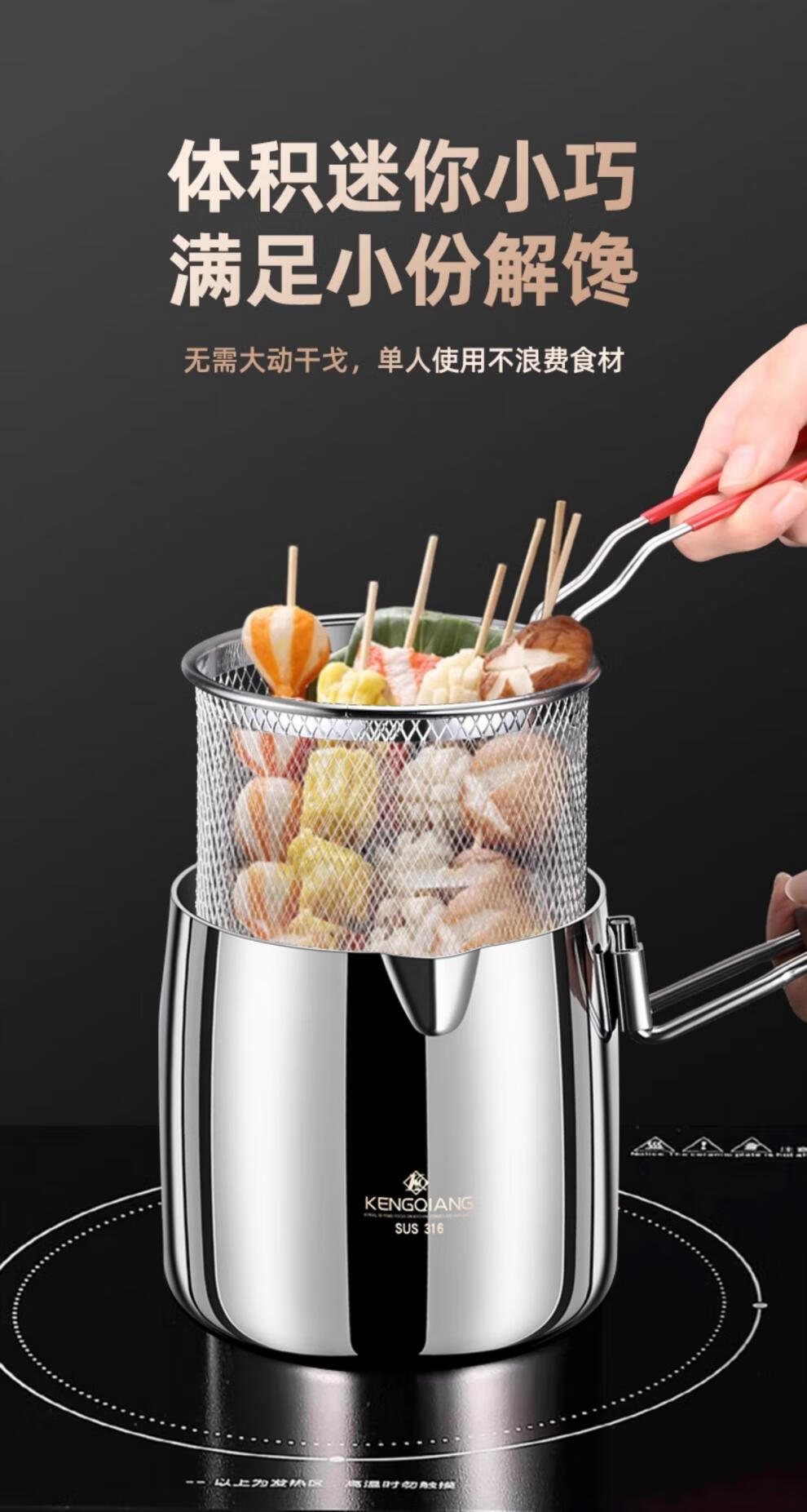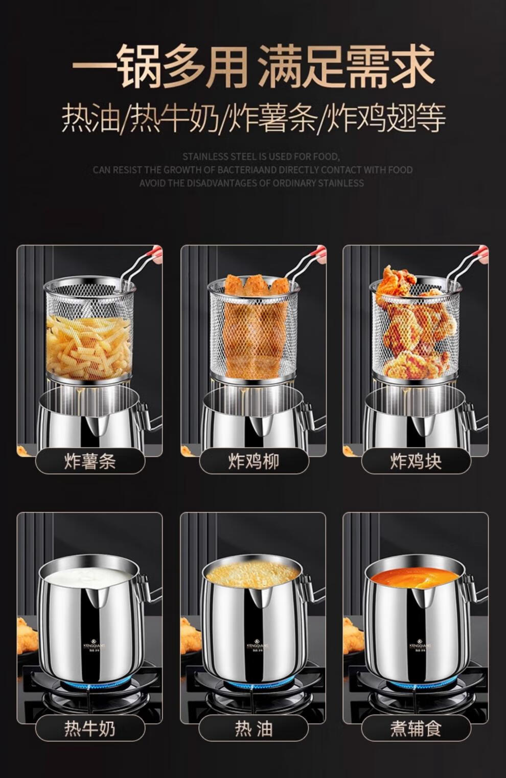 CKZSU imported quality 316 stainless steel fryer from Japan, heightened and deepened fryer, filter-saving fryer, double-ear model 316 deepened fryer 1cm 3.5L