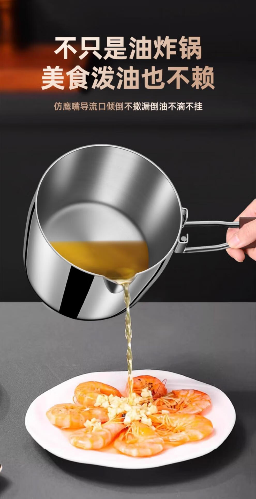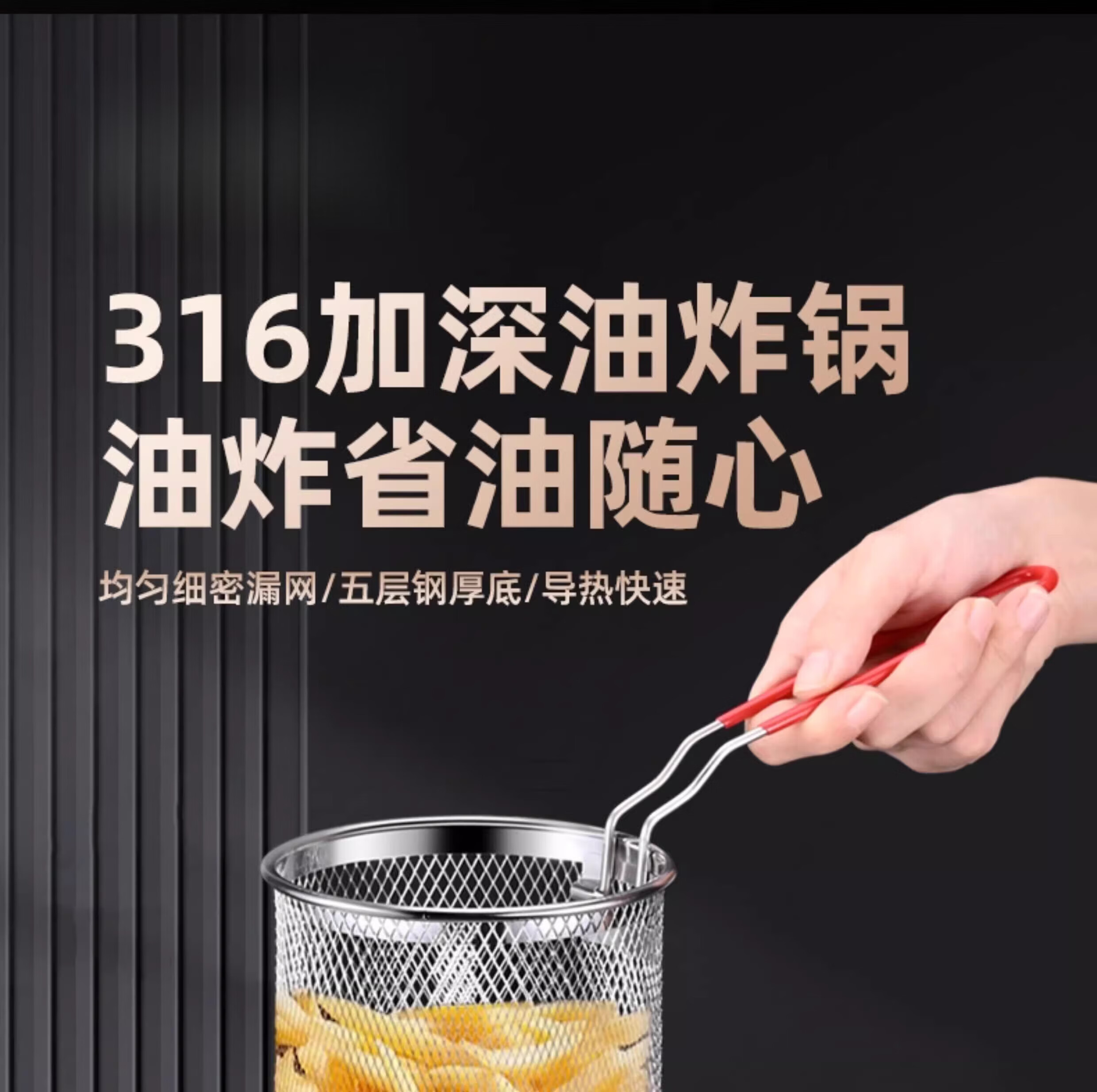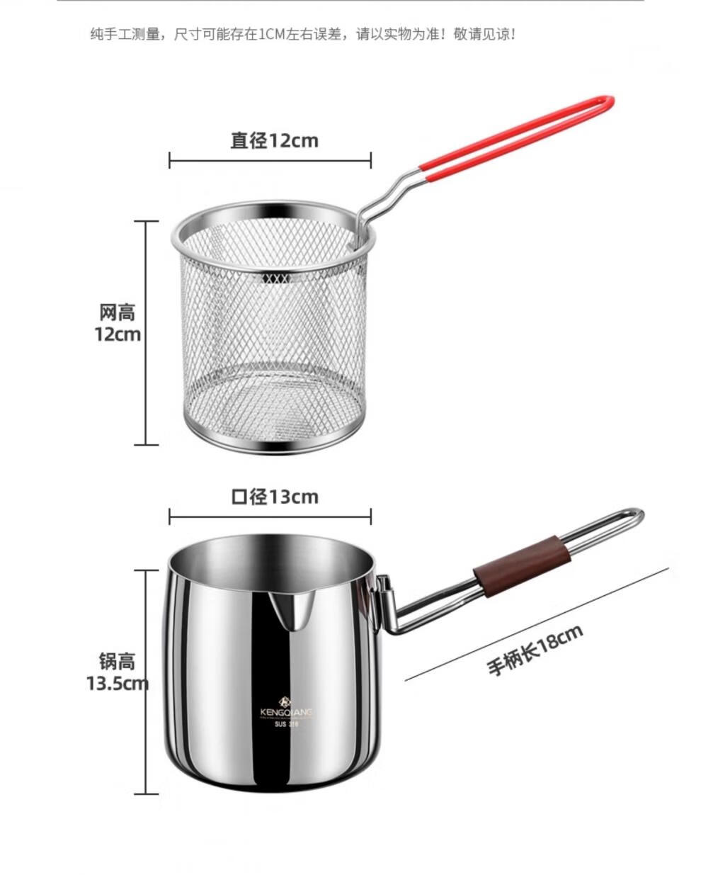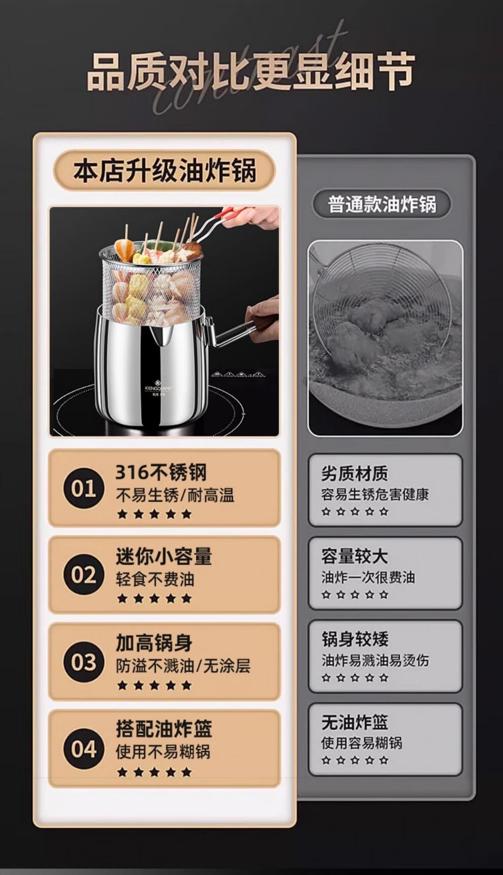 CKZSU imported quality 316 stainless steel fryer from Japan, heightened and deepened fryer, filter-saving fryer, double-ear model 316 deepened fryer 1cm 3.5L
