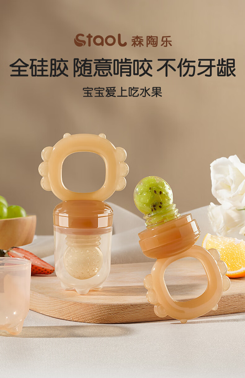Sentaole bite and bite music baby eating fruit food supplement fruit and vegetable bite bag pacifier baby bite and play molar stick teether full silicone_eating fruits and vegetables can grind teeth_bite bag 1 pack