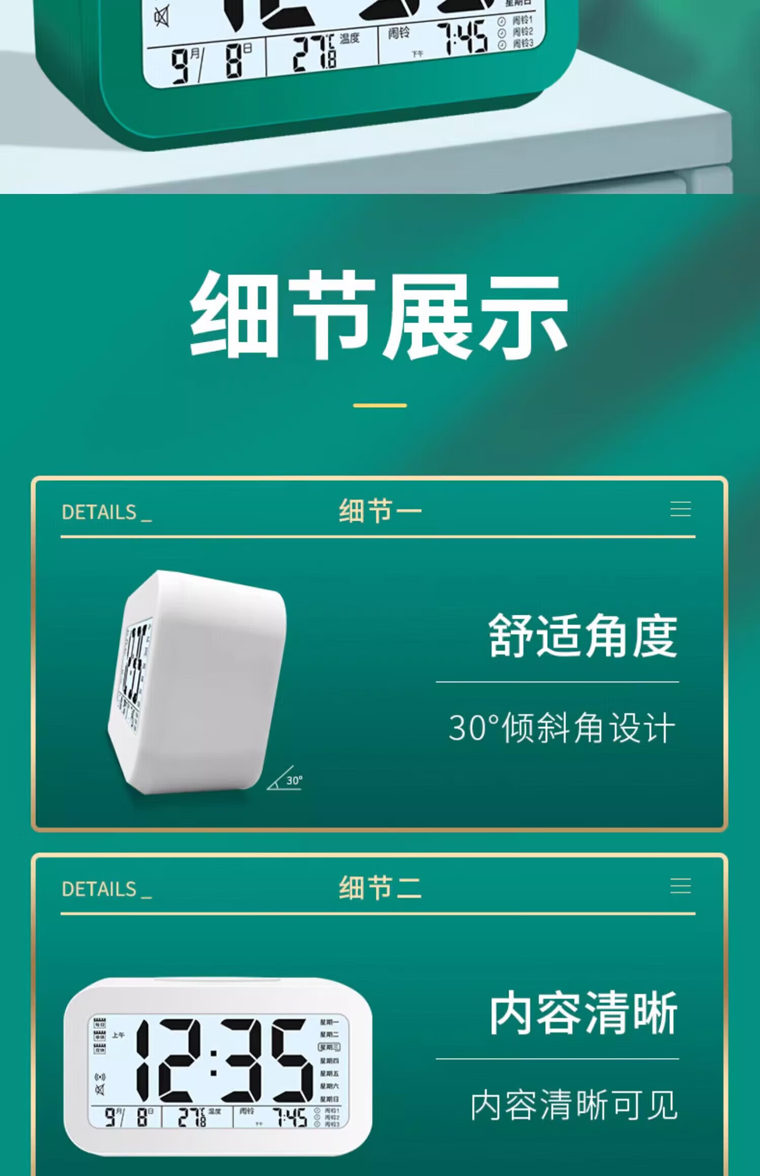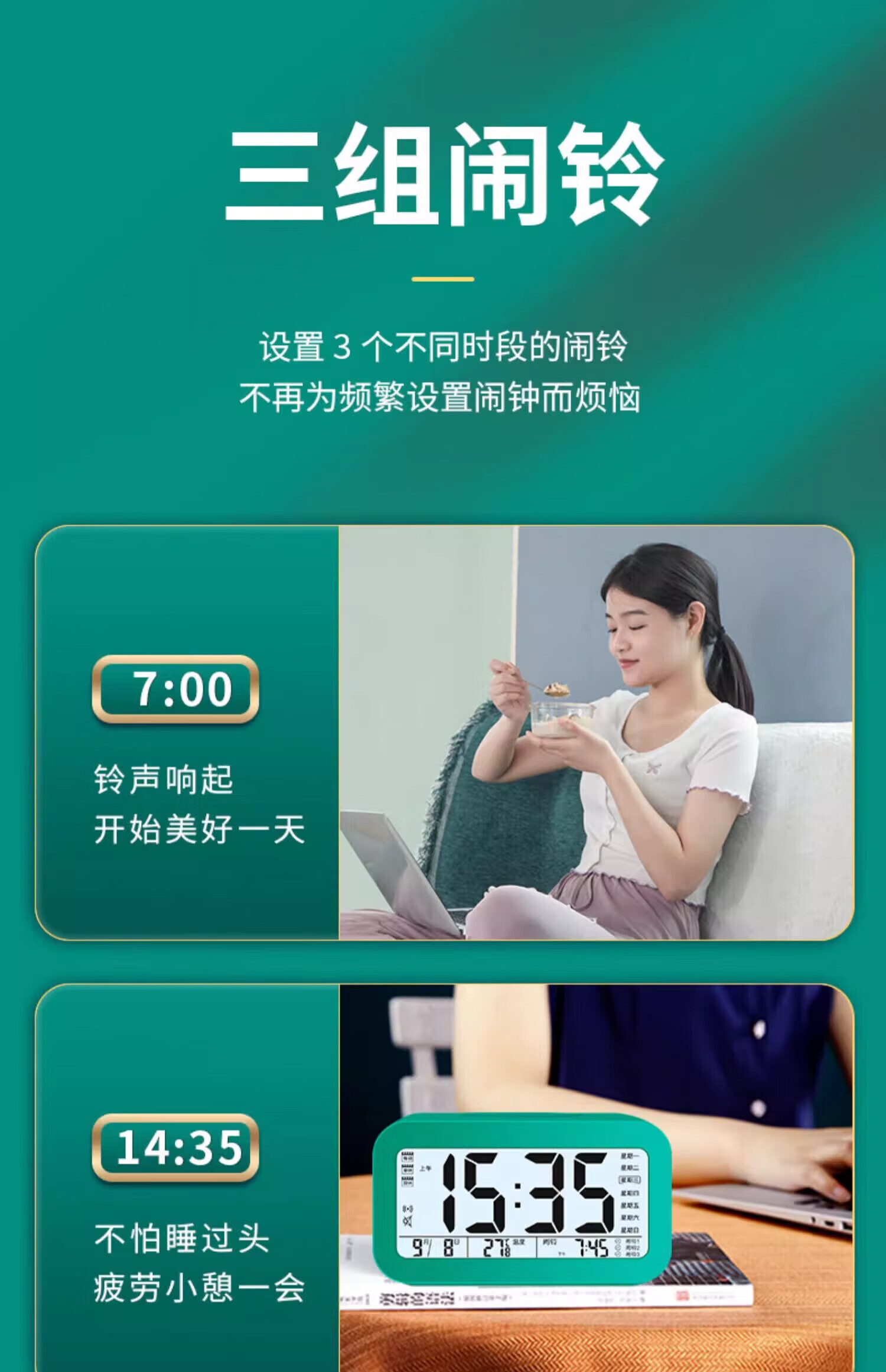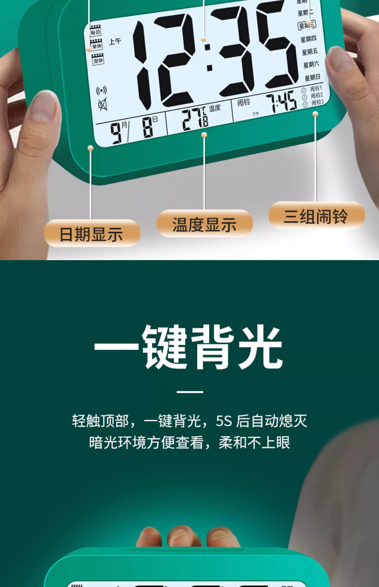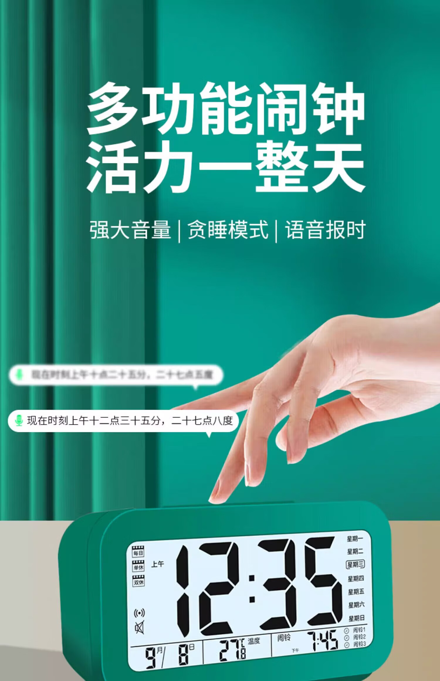 Xiaomi ecological chain same alarm clock for students 2025 new smart electronic clock desktop bedside electronic alarm clock white voice three groups of alarms luminous rechargeable