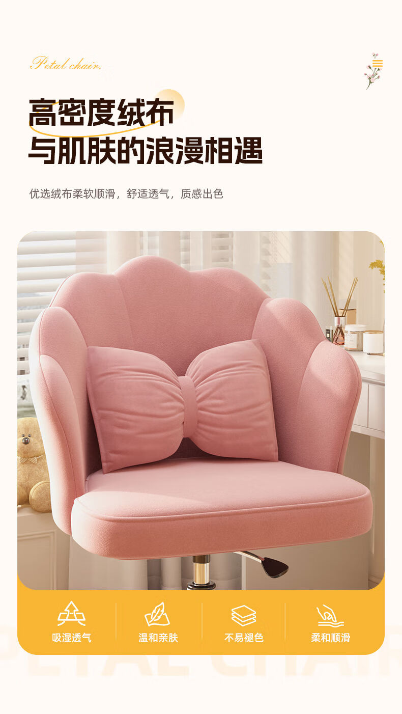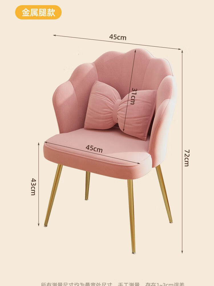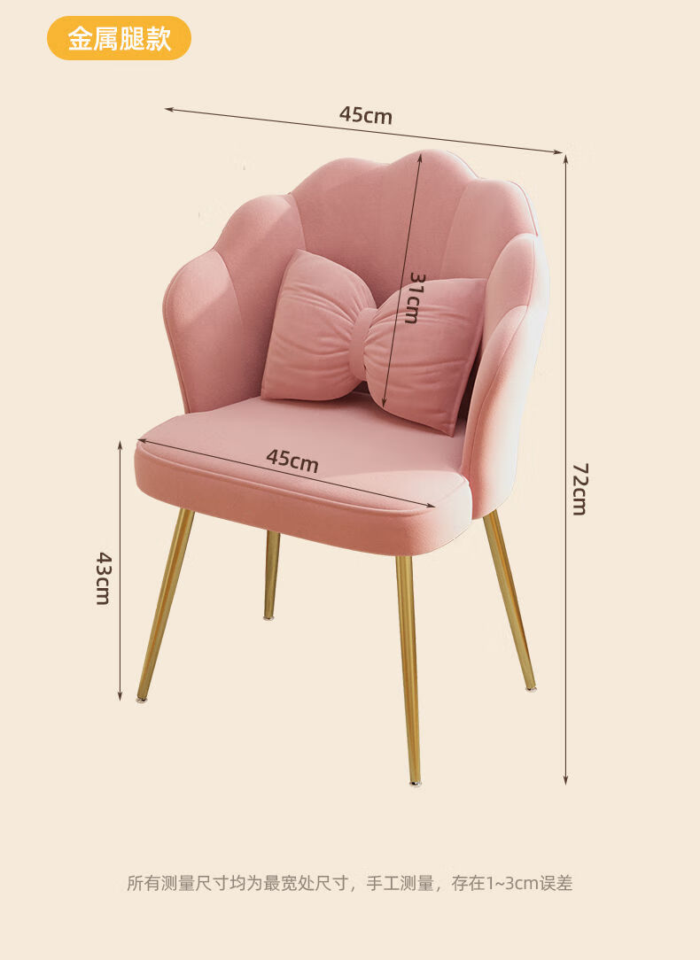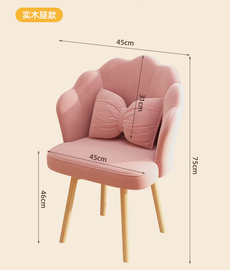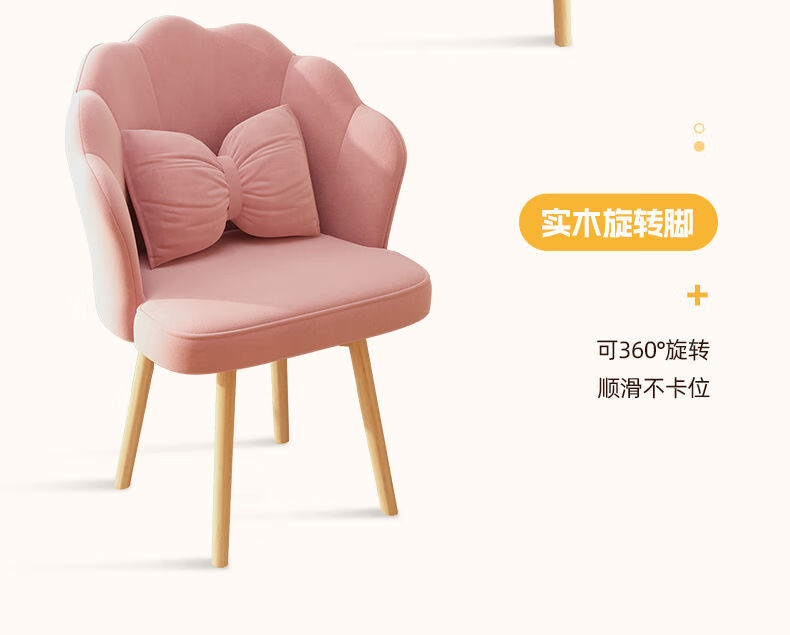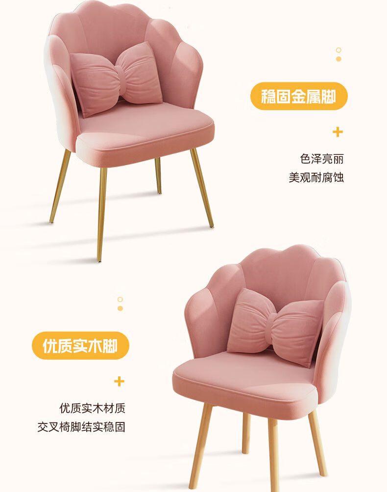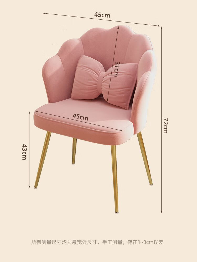 Chair Girl's Bedroom Dressing Table Stool New Stool Home Light Luxury Backrest Chair Gray and Pink-Skin Velvet Thickened Sponge+