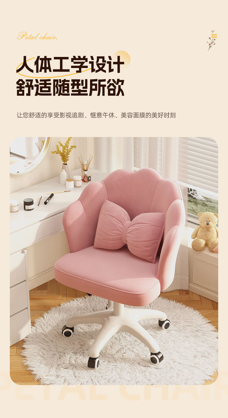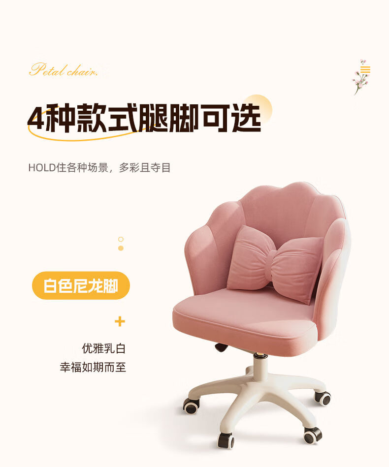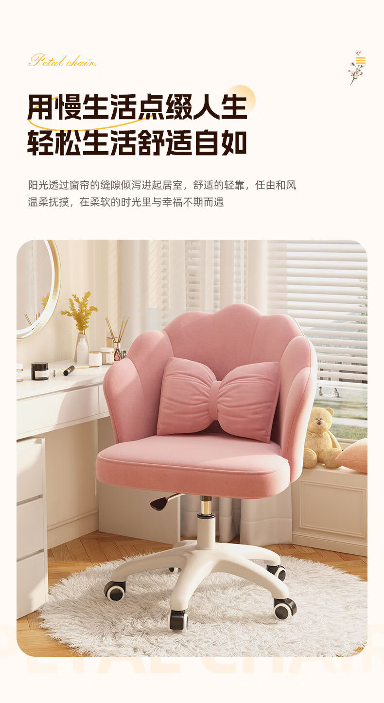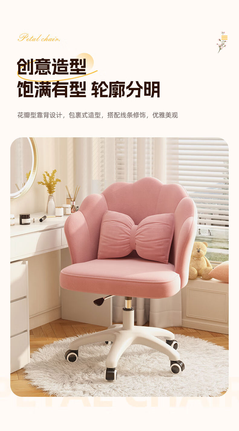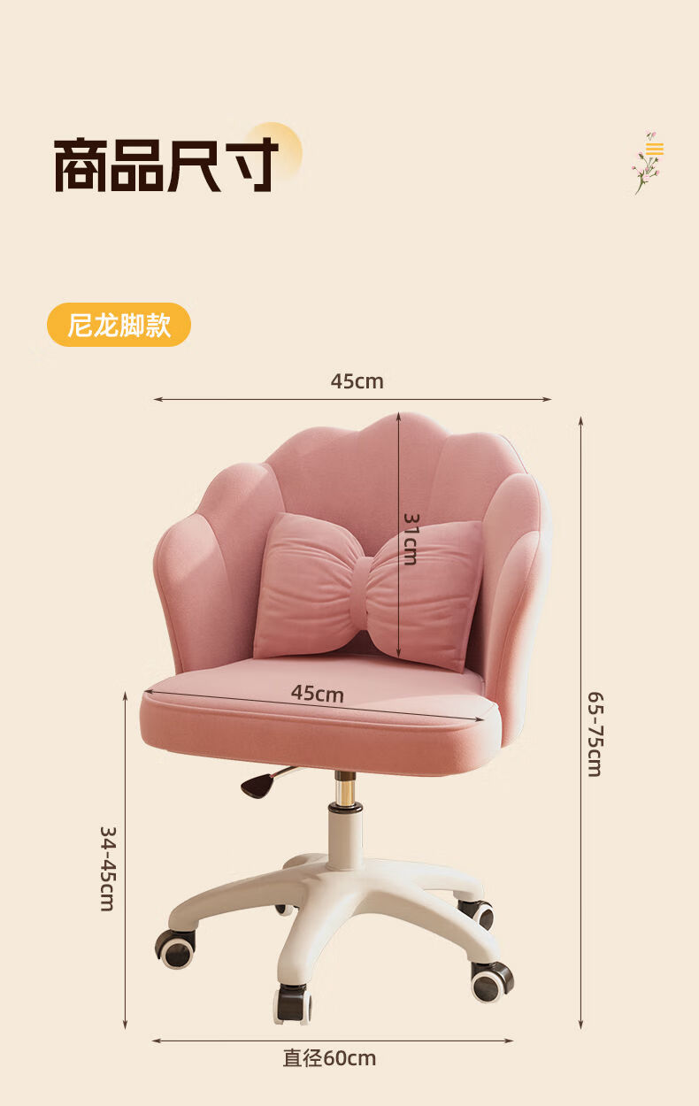 Chair Girl's Bedroom Dressing Table Stool New Stool Home Light Luxury Backrest Chair Gray and Pink-Skin Velvet Thickened Sponge+
