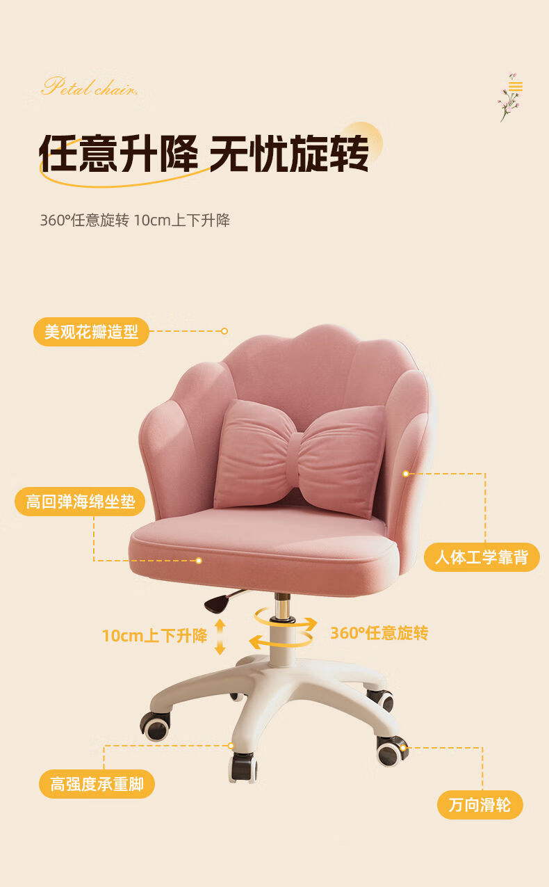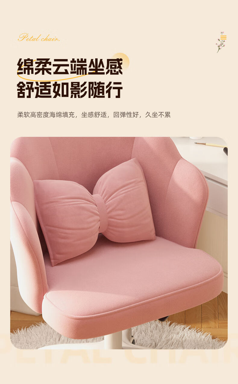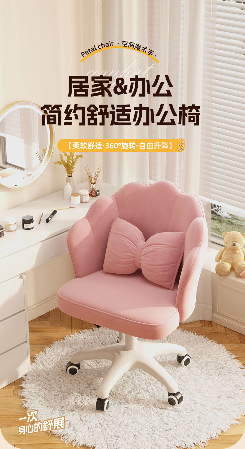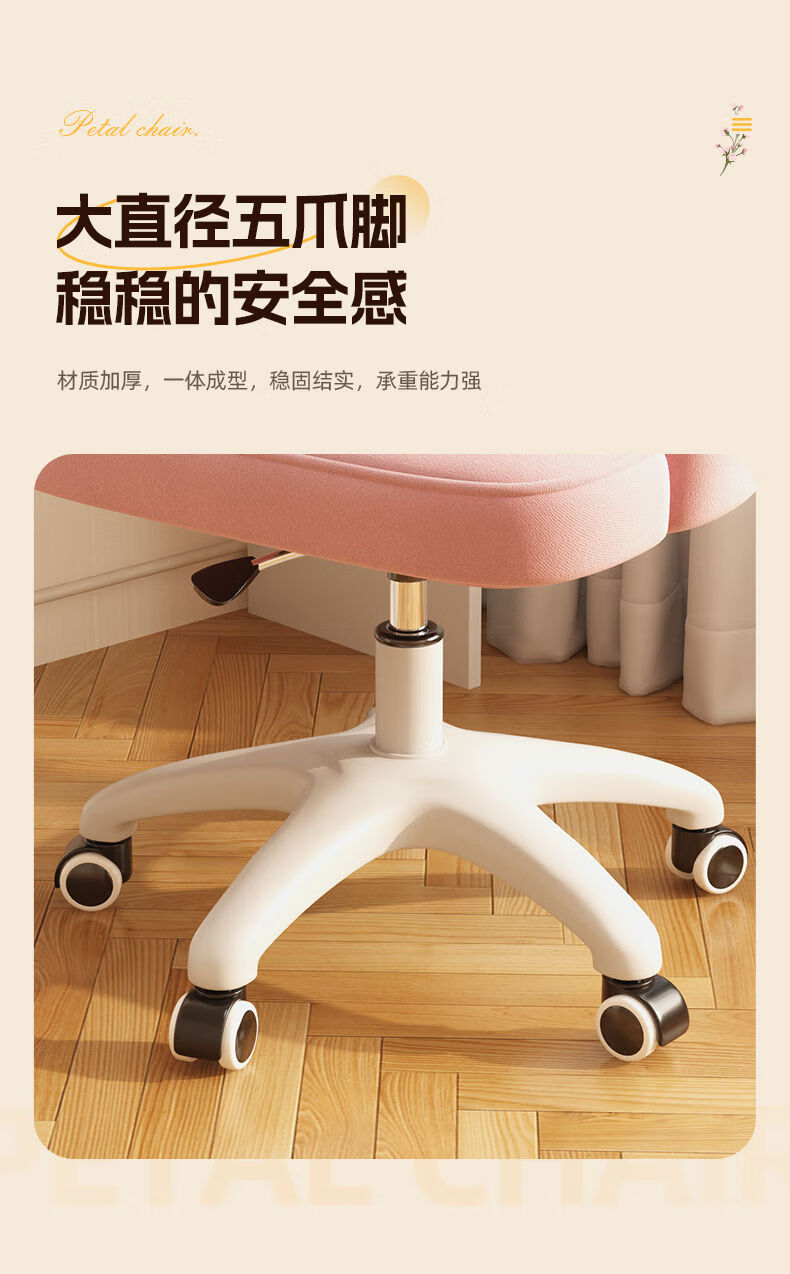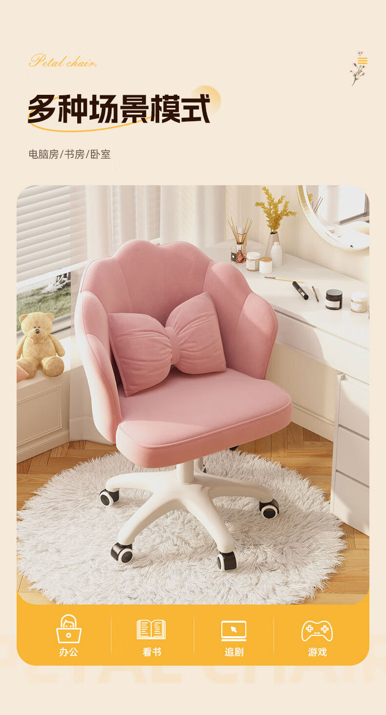 Chair Girl's Bedroom Dressing Table Stool New Stool Home Light Luxury Backrest Chair Gray and Pink-Skin Velvet Thickened Sponge+