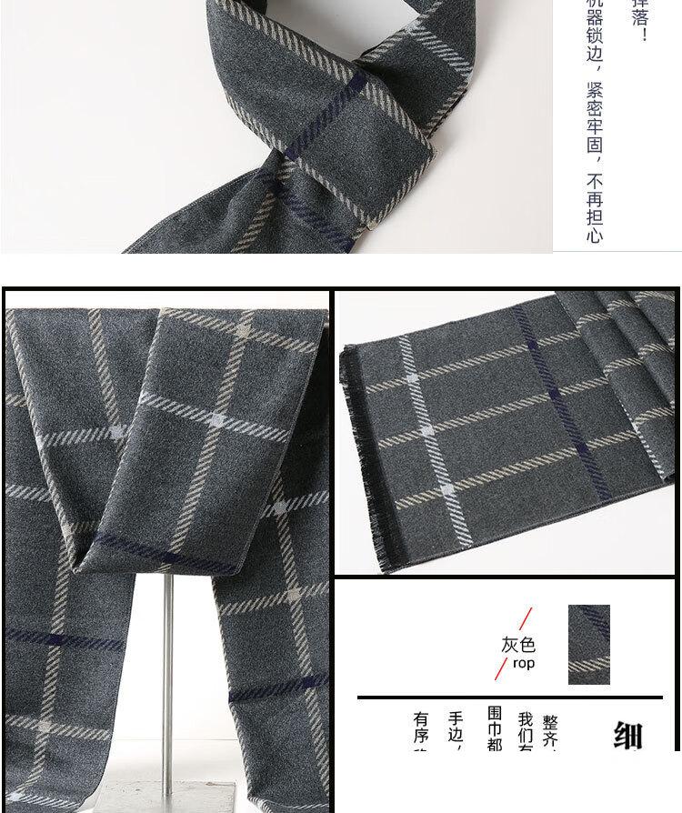Hengyuanxiang men's scarf autumn and winter young people Korean version versatile simple plaid warm long scarf student business gift box light gray