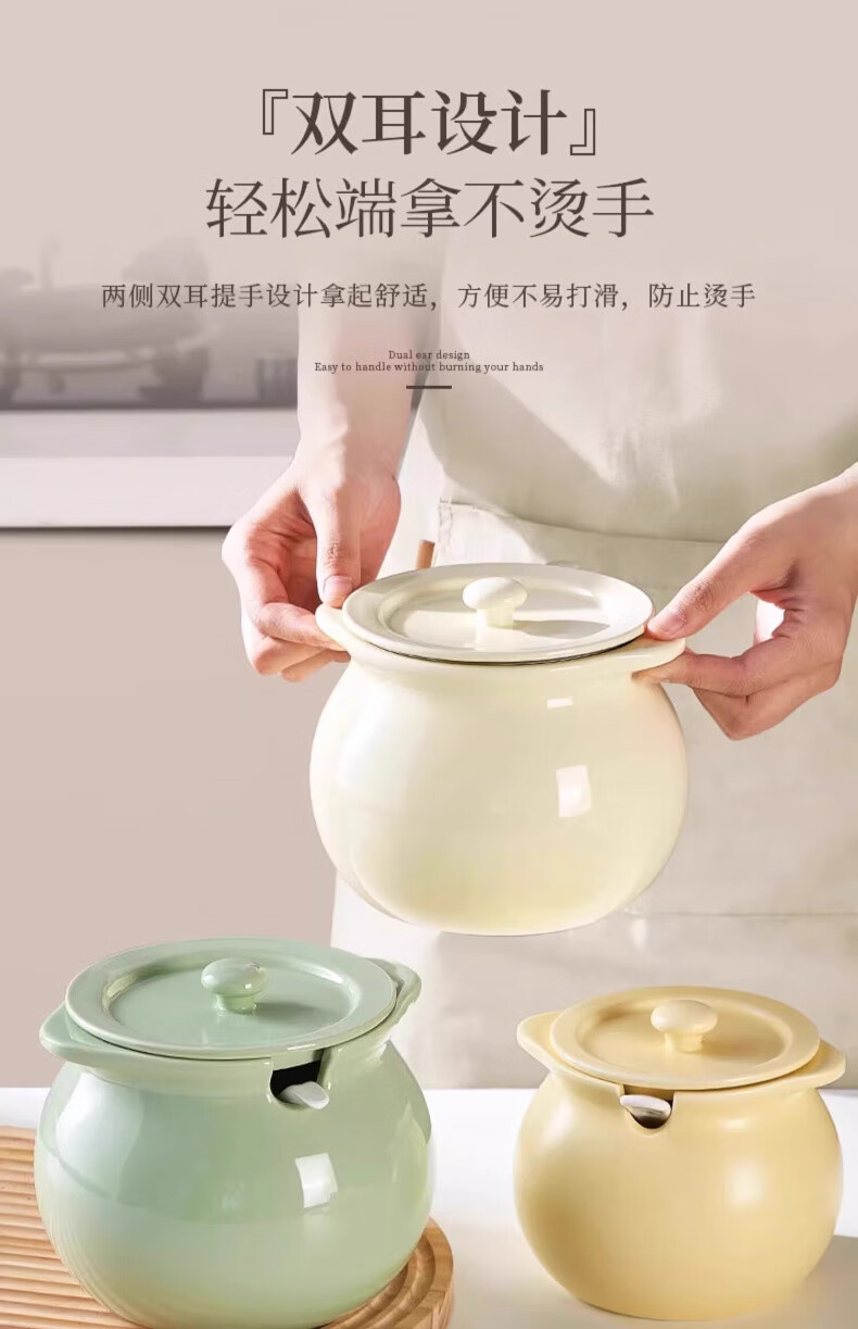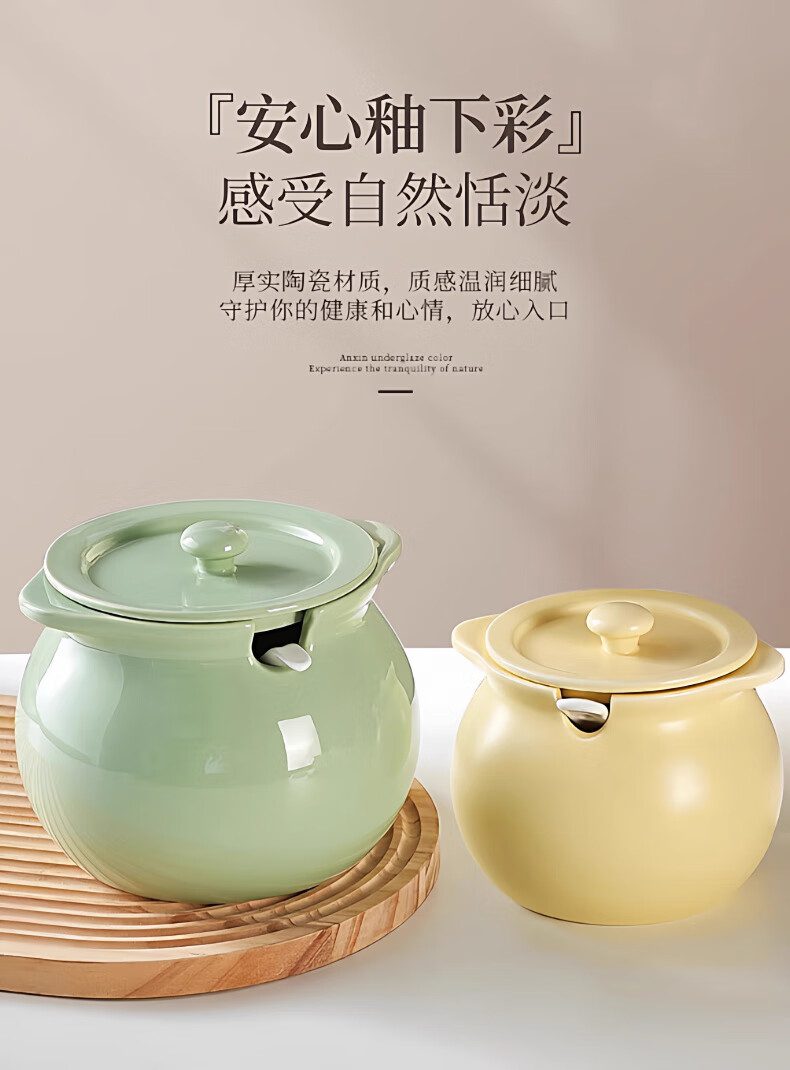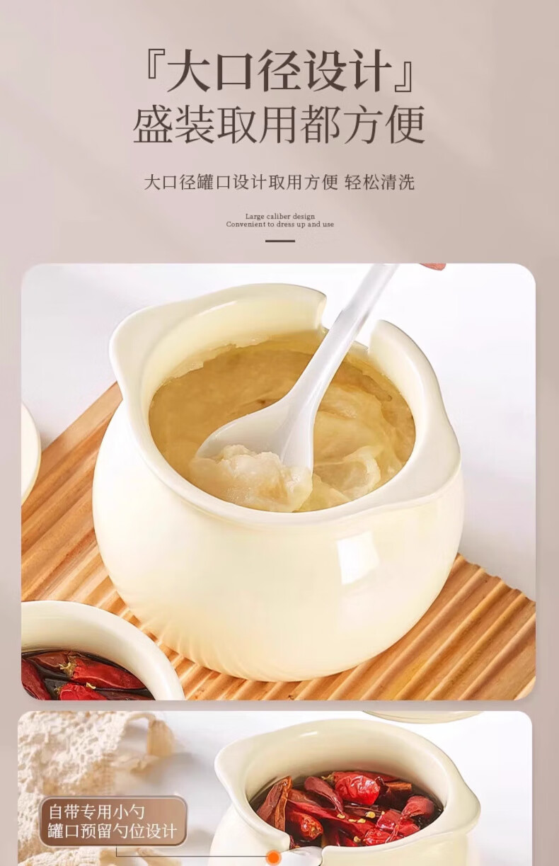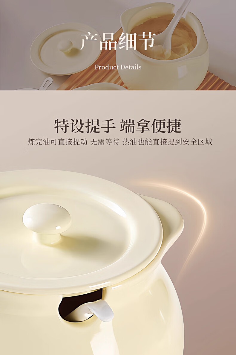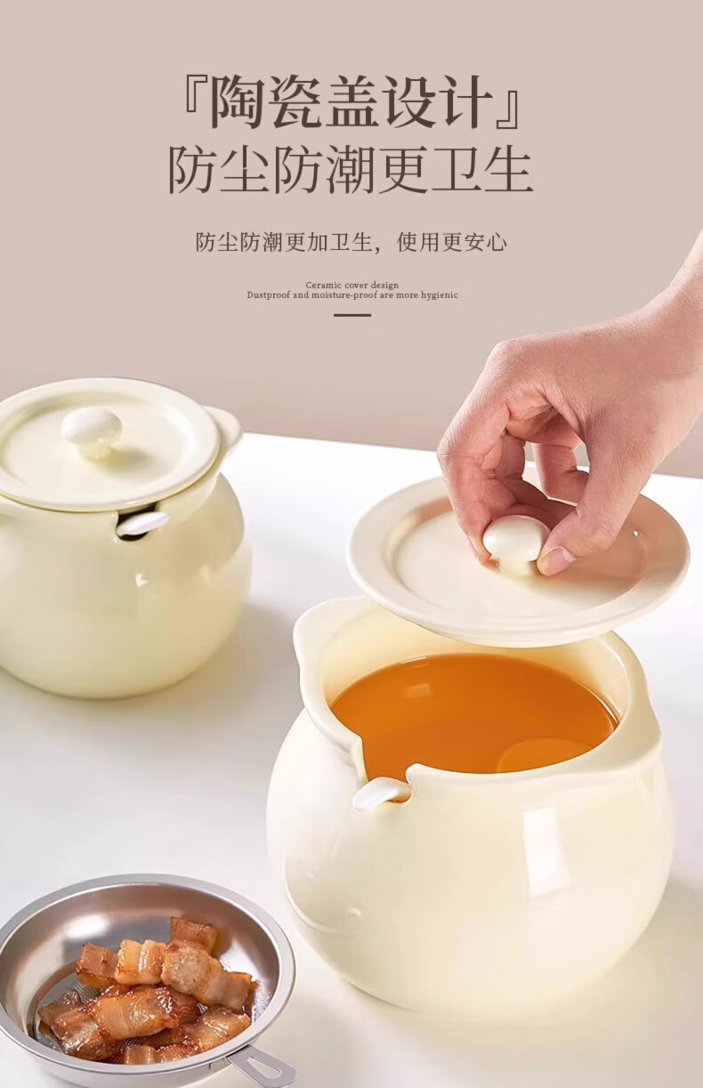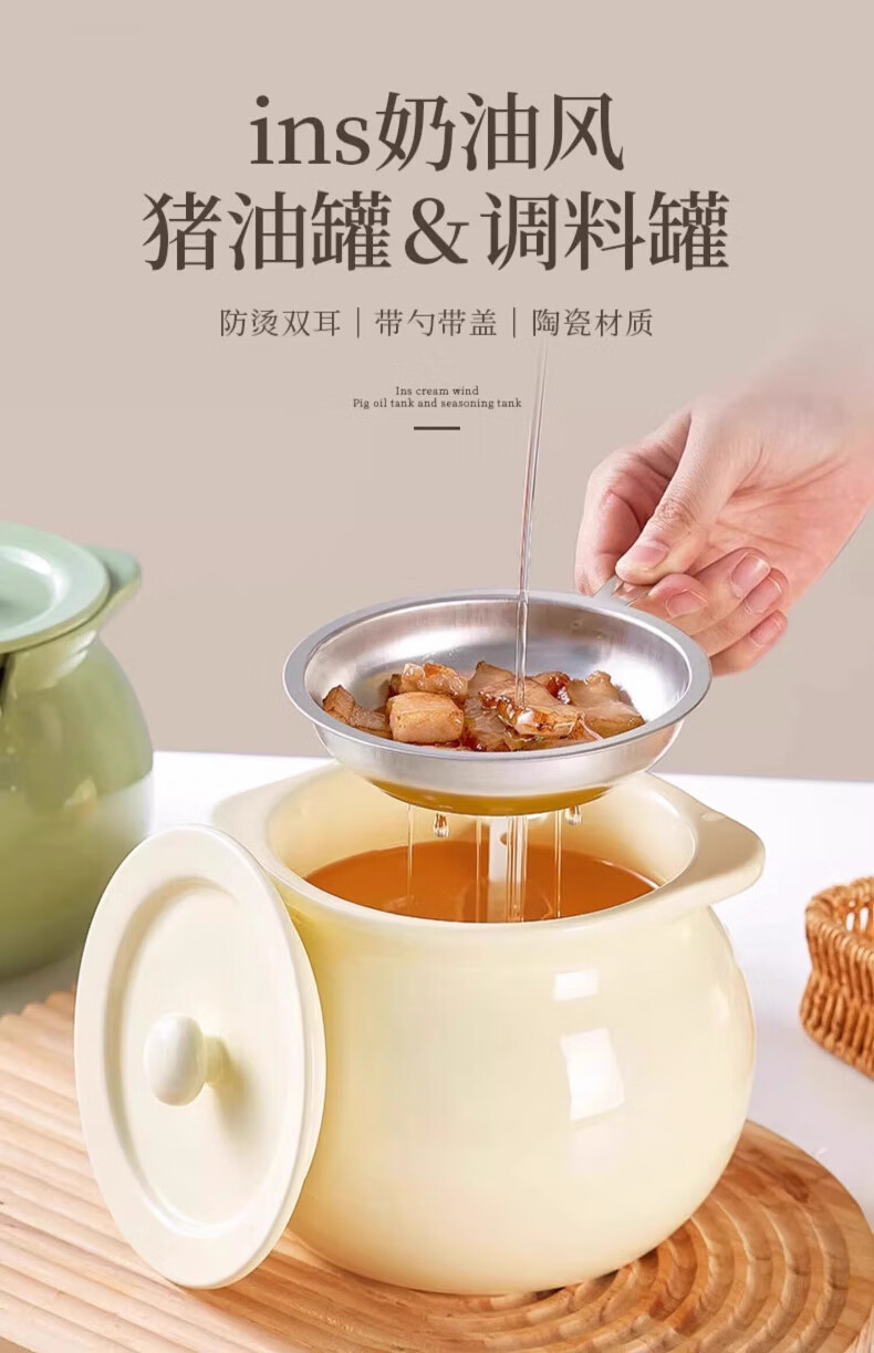 AILUKI Japanese lard tank household ceramic high temperature resistant food grade kitchen oil tank oil spicy special tank chili oil cream white 700ml - comes with spoon + filter can pour hot oil