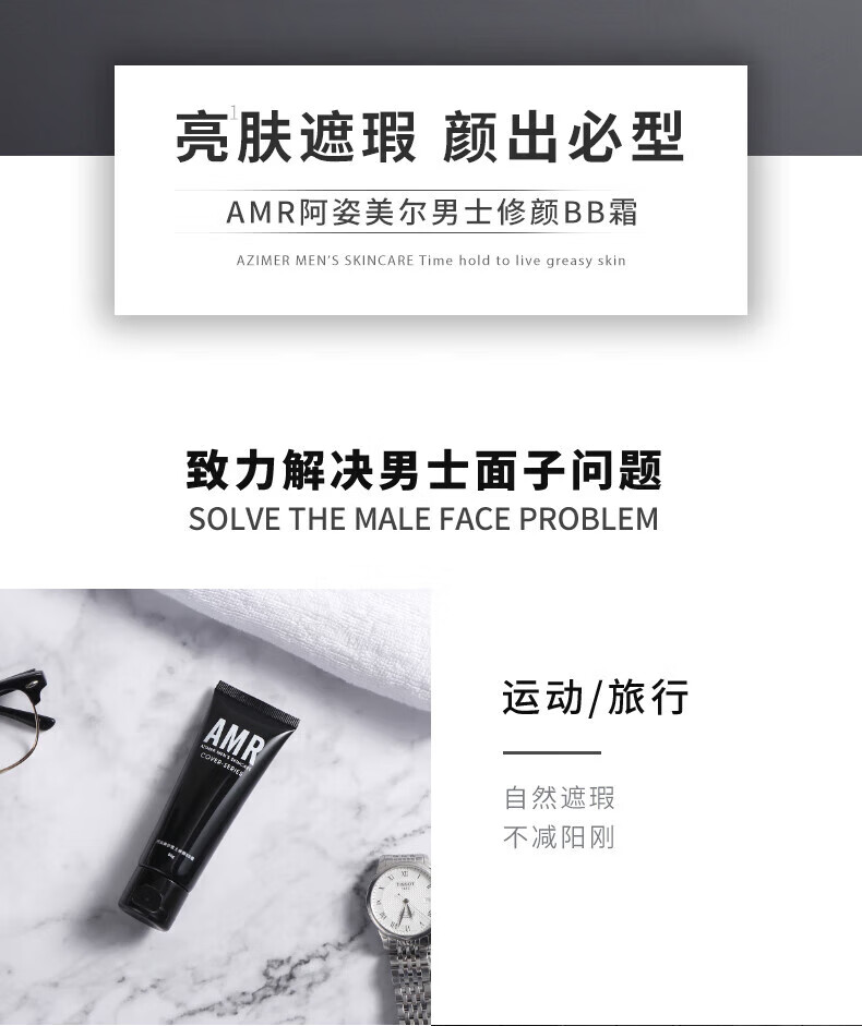 Azimel men's makeup cream BB cream repair concealer liquid foundation to brighten skin tone cosmetics amr men's makeup cream 50g* 50g*1