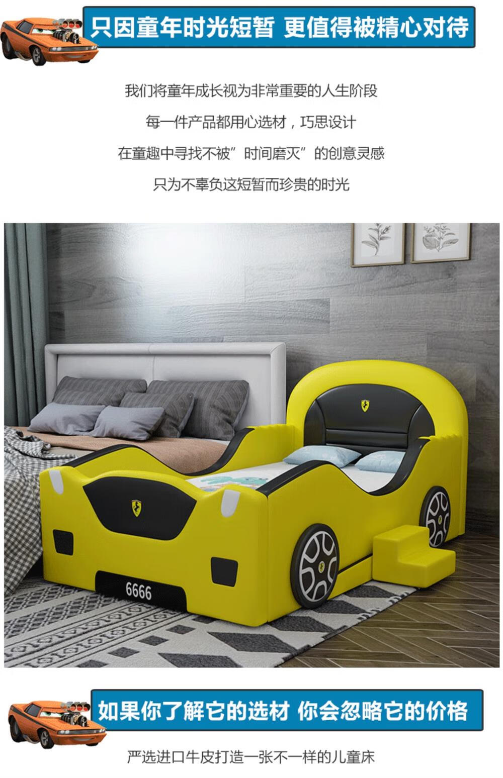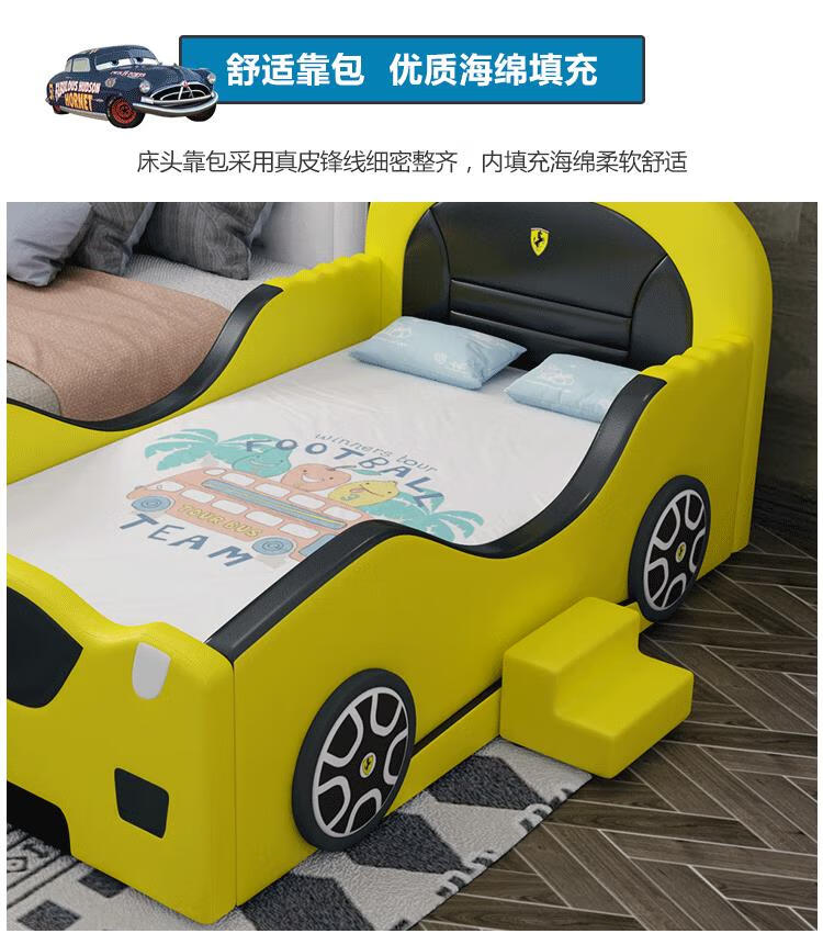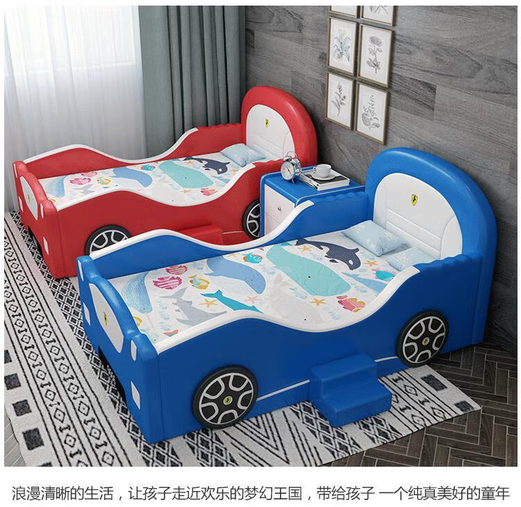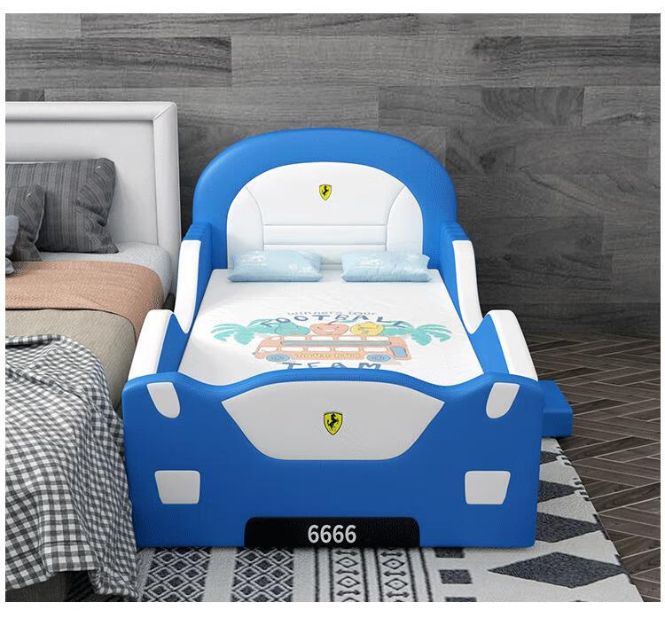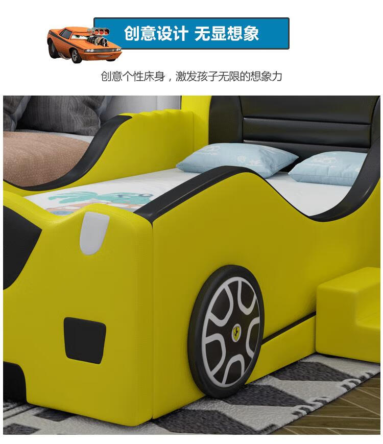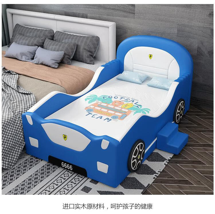 Yusenyi children's spliced crib boy's baby lathe widened solid wood soft package single with guardrail car spliced bedside bed 4 sides with ladder 80*180+ environmentally friendly mattress others