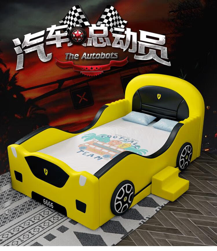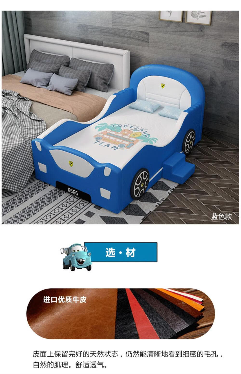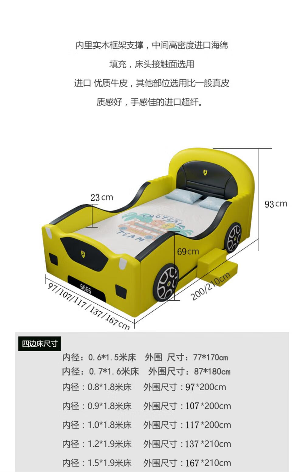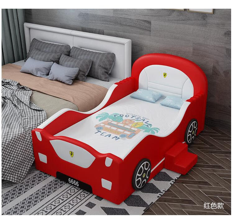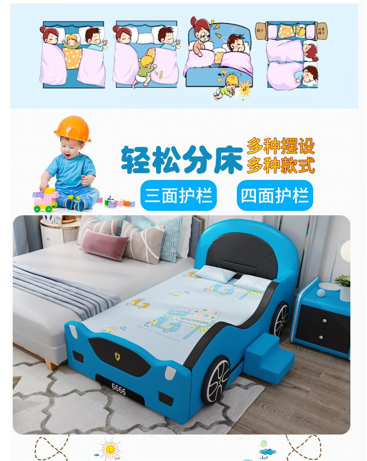 Yusenyi children's spliced crib boy's baby lathe widened solid wood soft package single with guardrail car spliced bedside bed 4 sides with ladder 80*180+ environmentally friendly mattress others