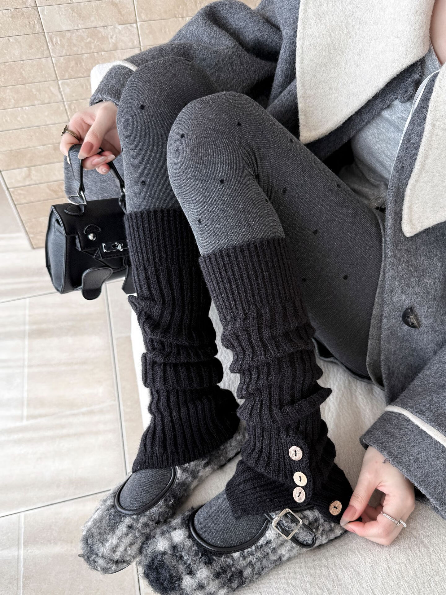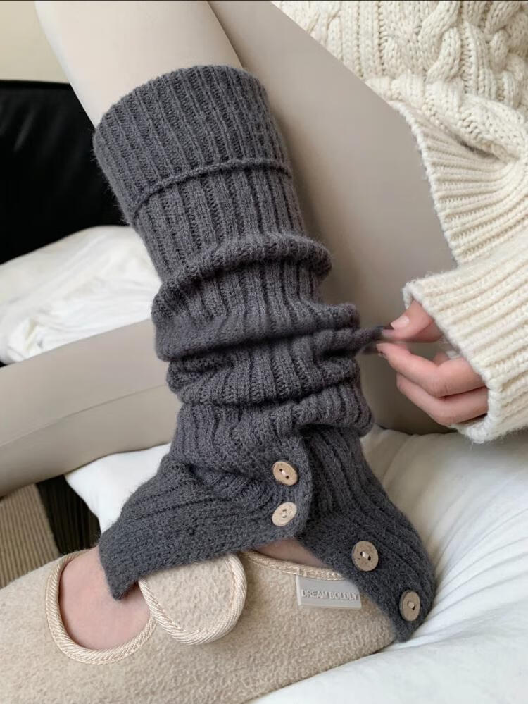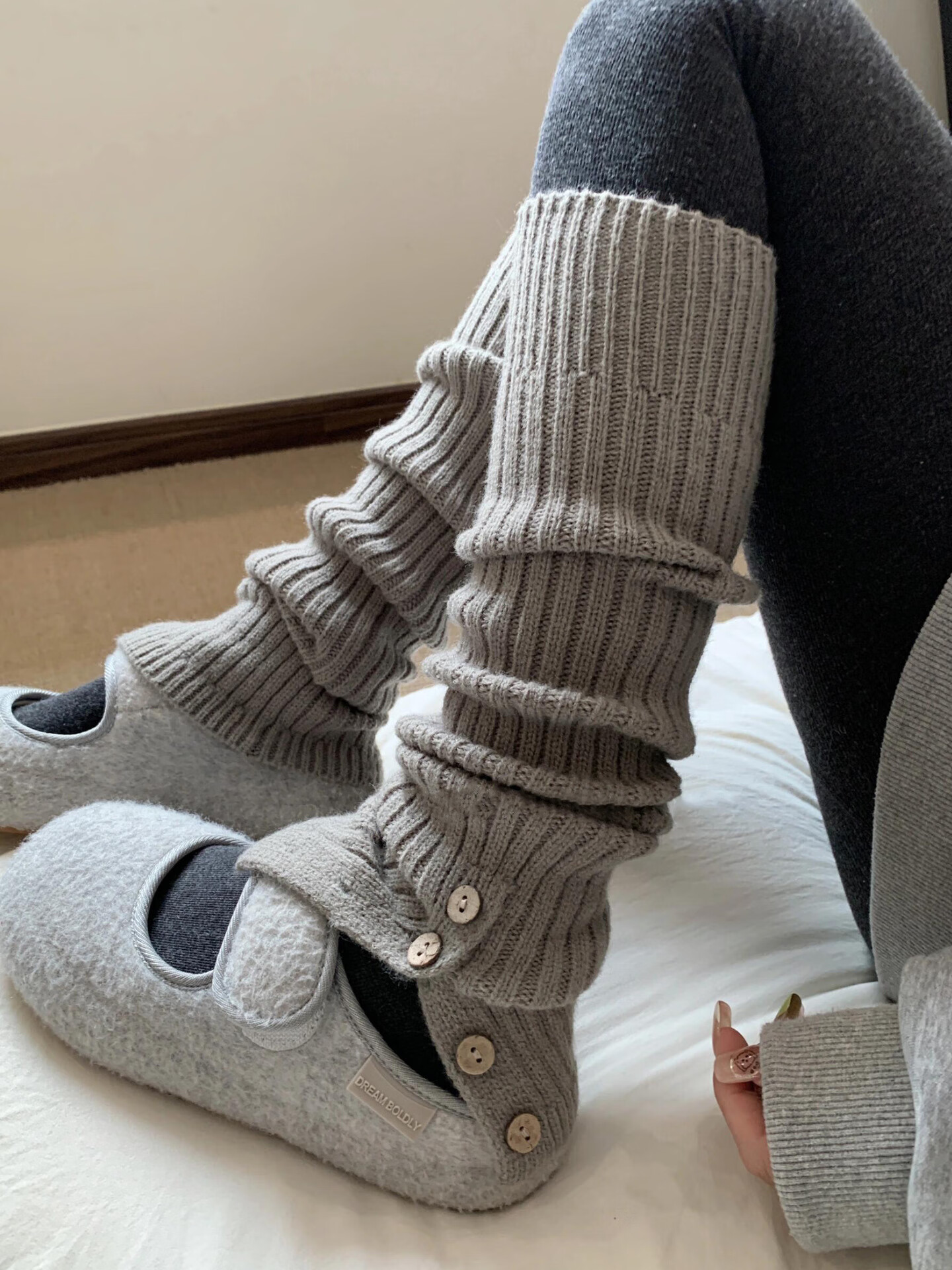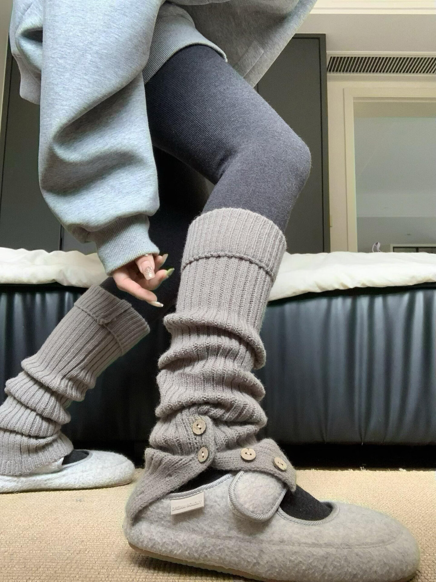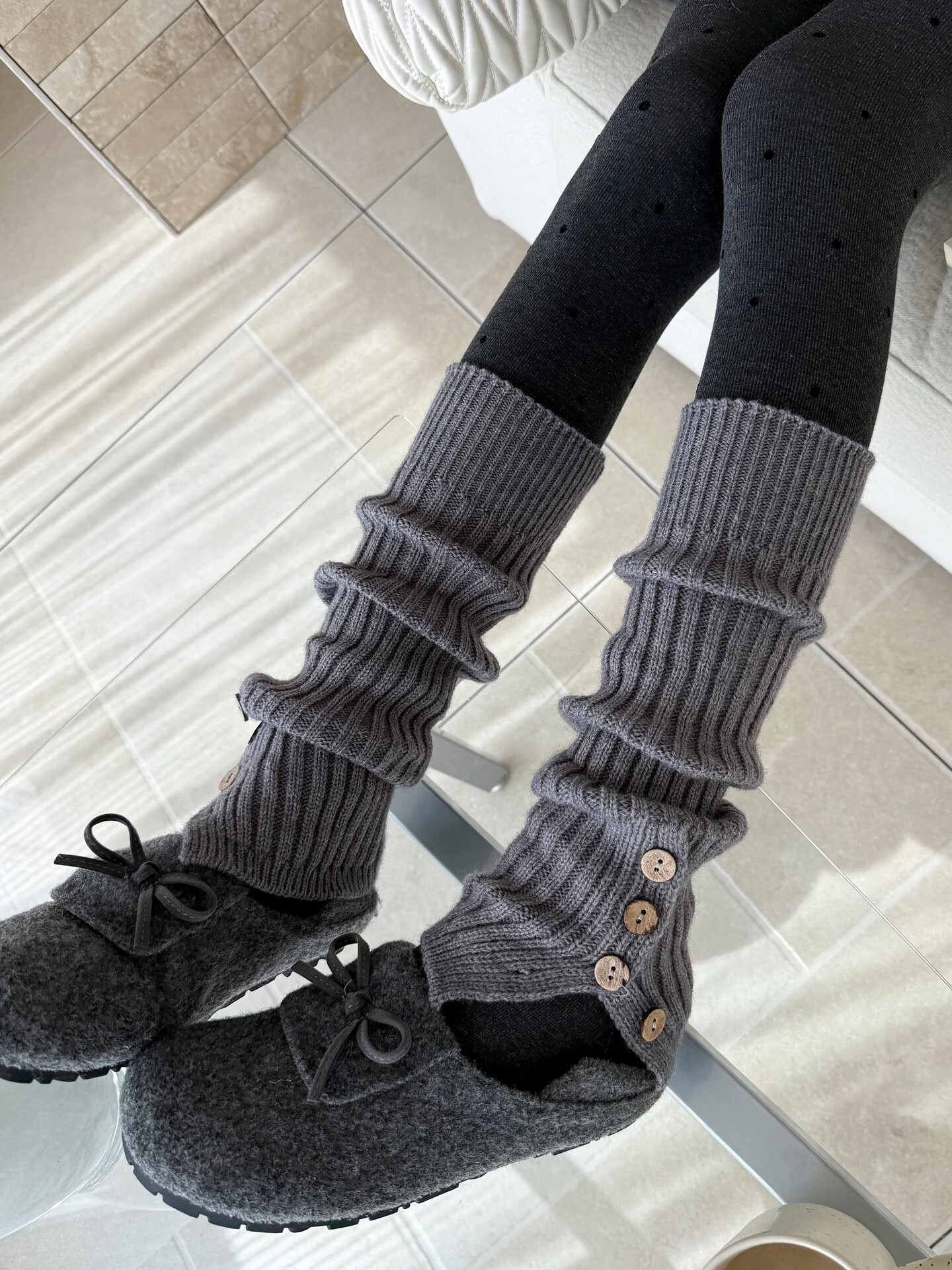 Autumn and winter Dui Dui Sock Covers Women's Button Slit Slightly Flared Calf Socks Leg Covers Vertical Stripes Thickened Warm Over-the-Knee Stockings Dark Gray One Size