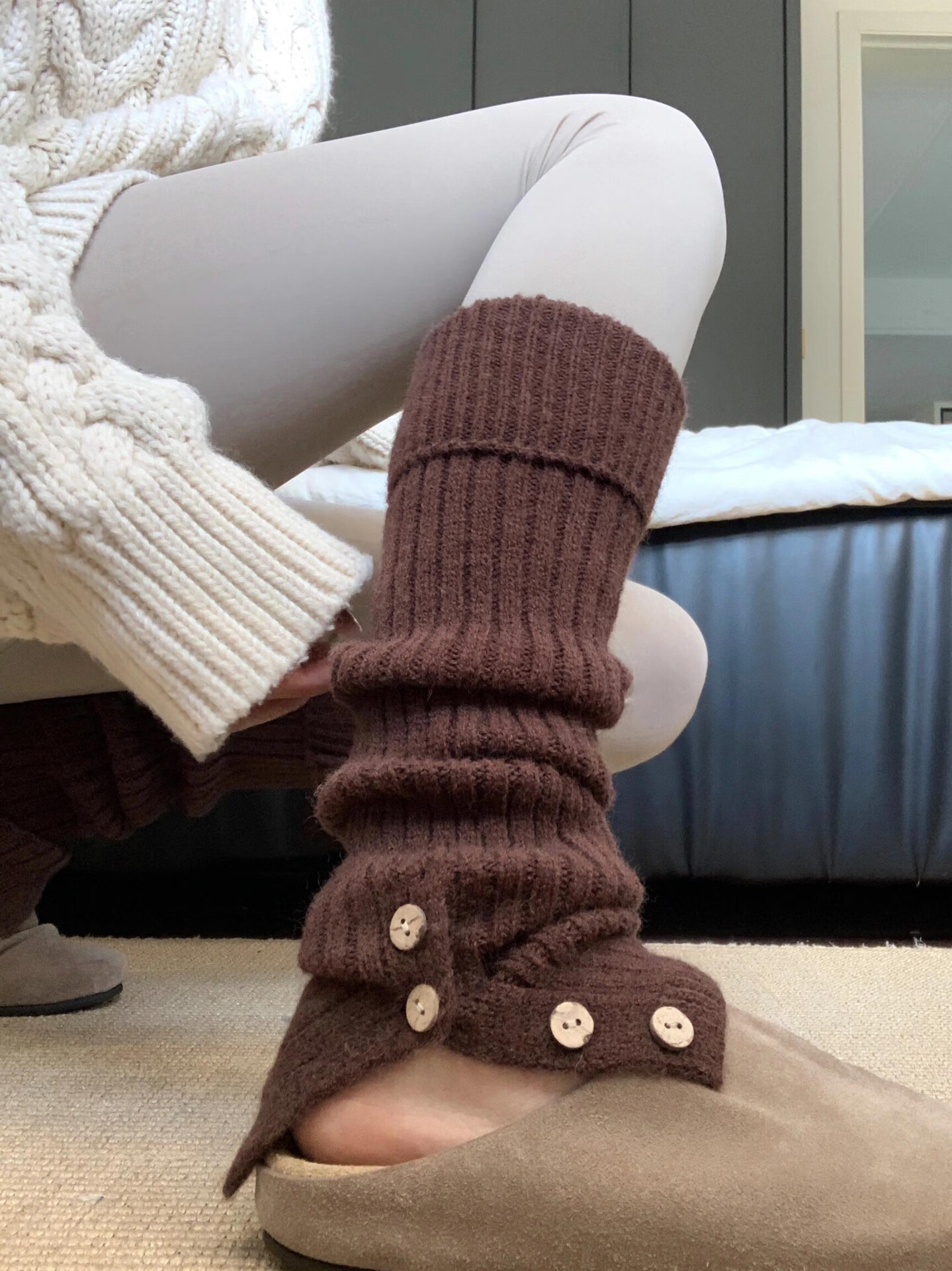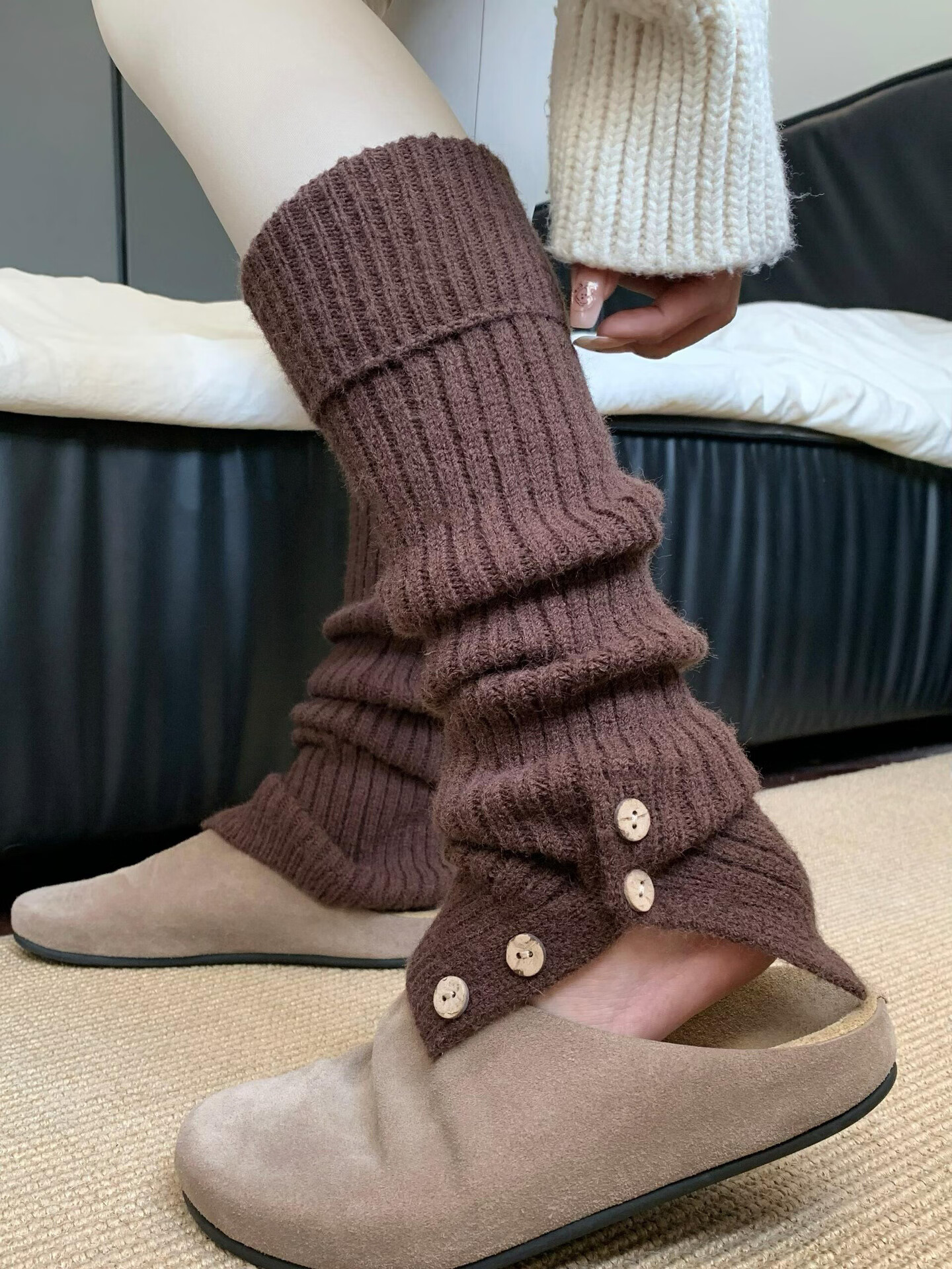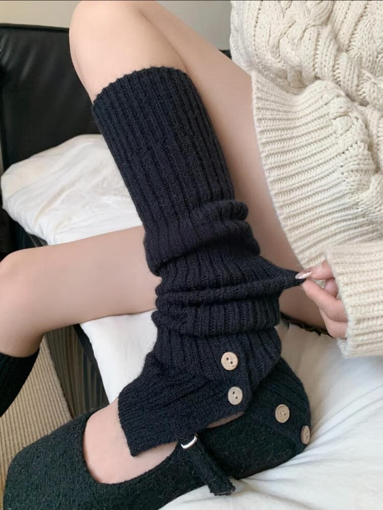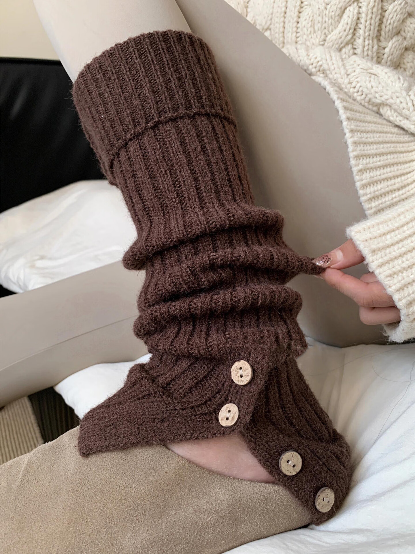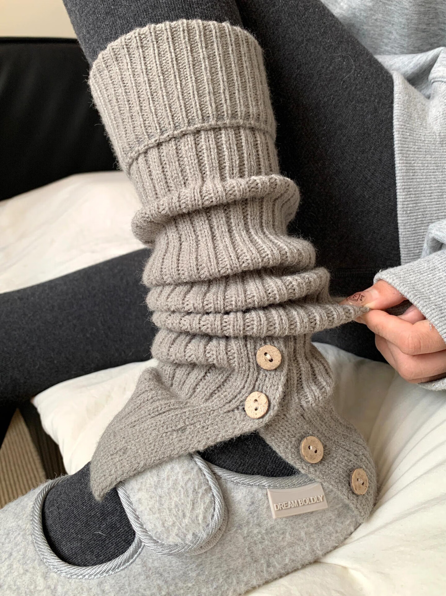 Autumn and winter Dui Dui Sock Covers Women's Button Slit Slightly Flared Calf Socks Leg Covers Vertical Stripes Thickened Warm Over-the-Knee Stockings Dark Gray One Size