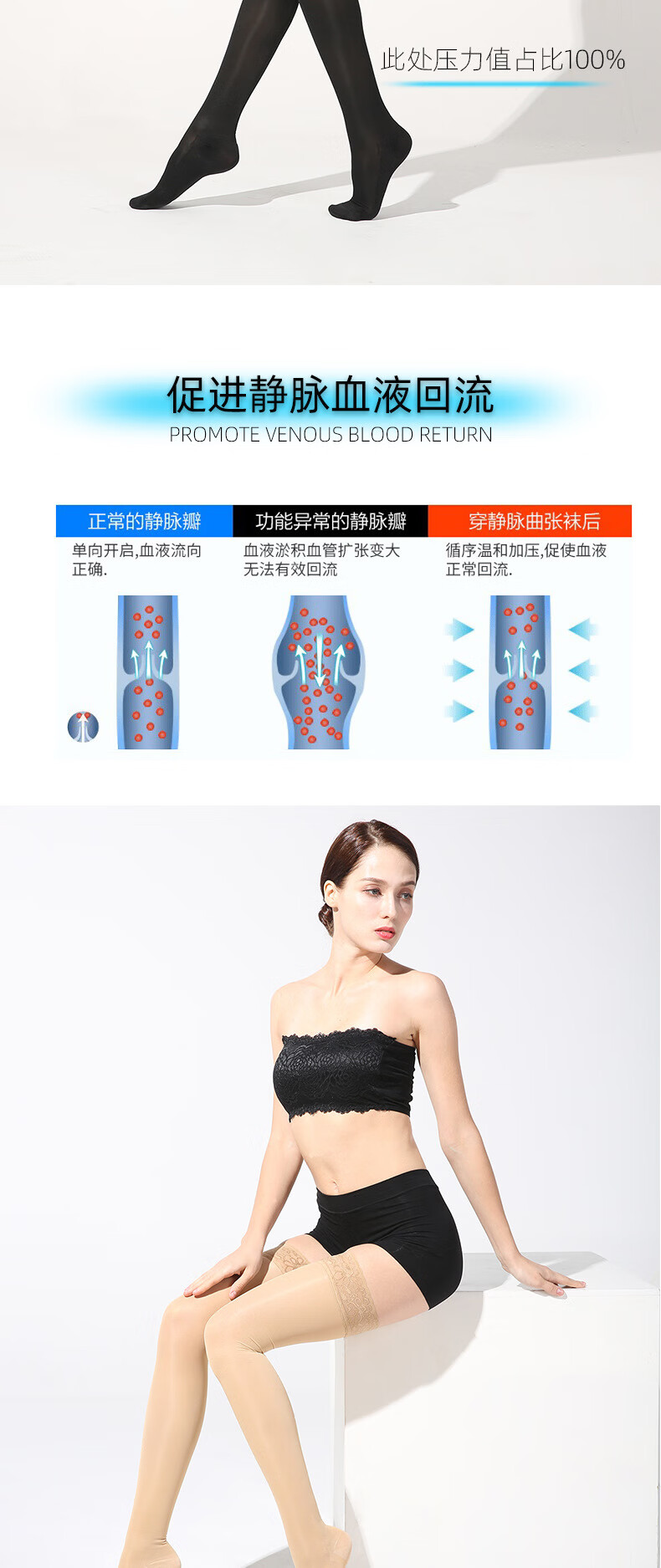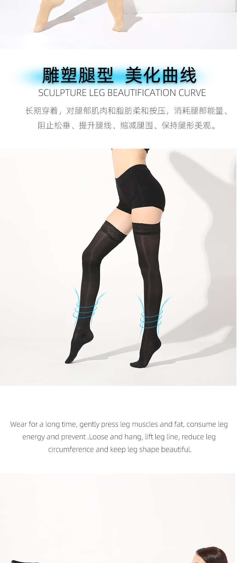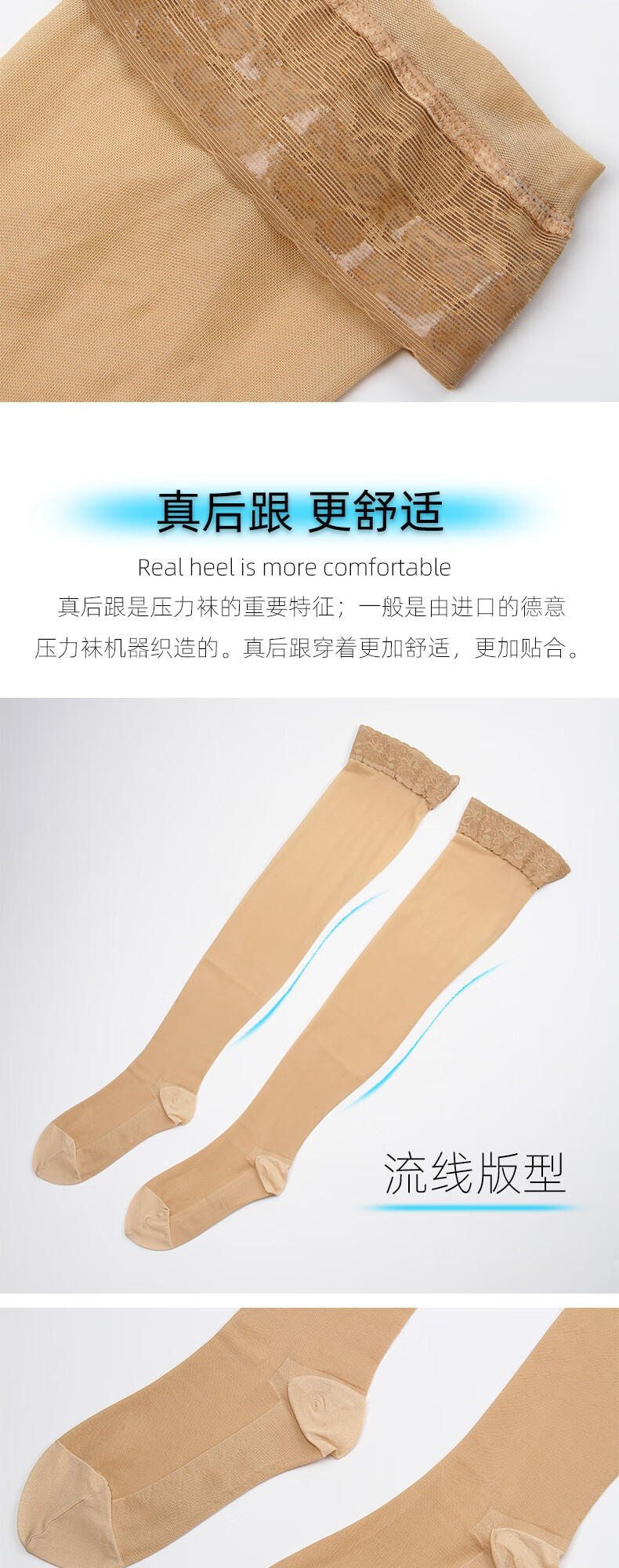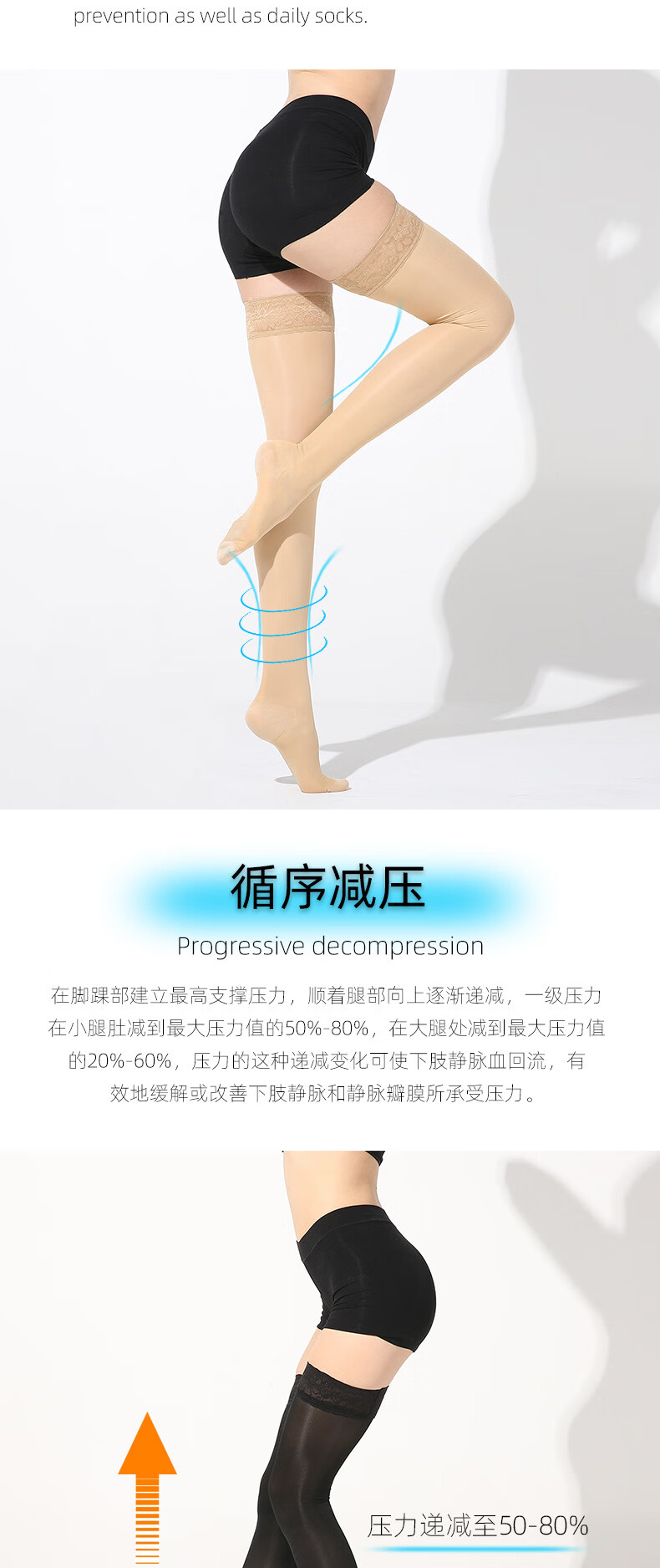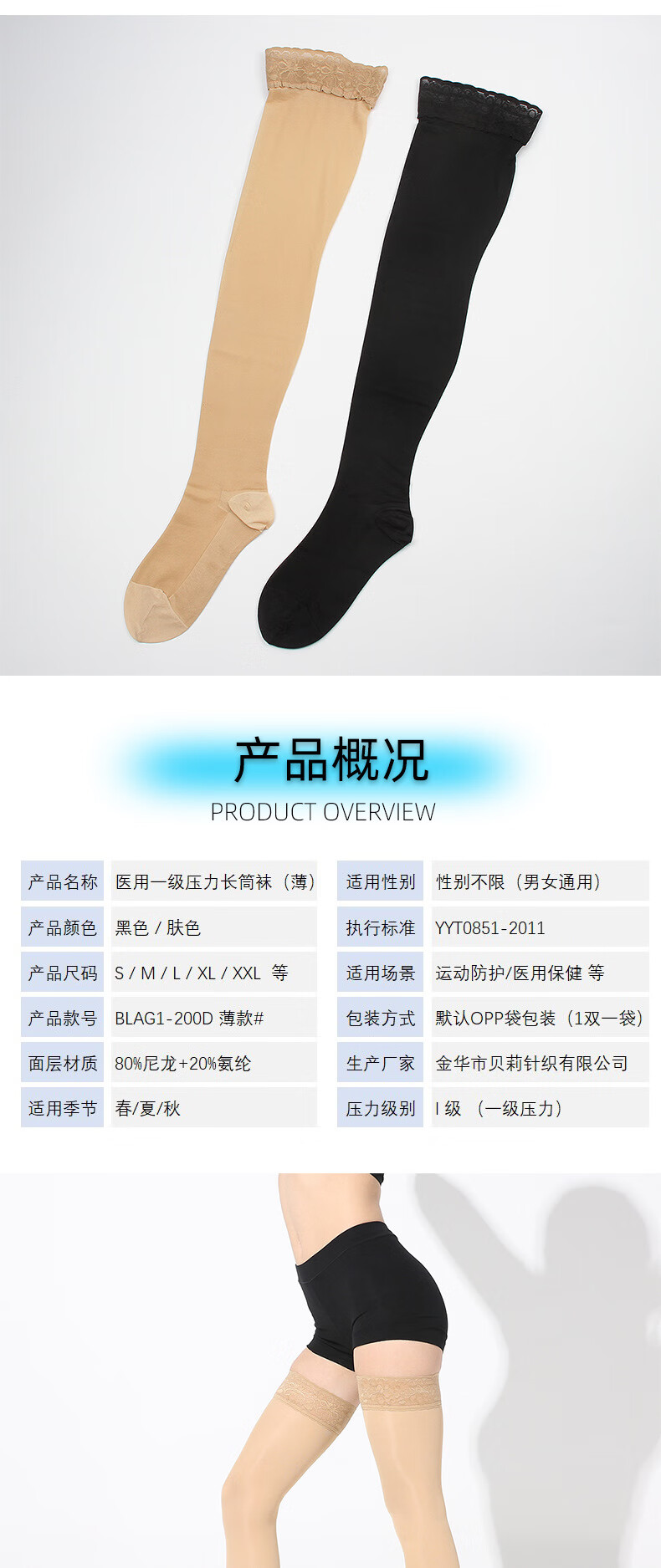Summer thin first-level pressure venous elastic varicose socks, but smooth and beautiful leg long-tube over-the-knee compression socks new style (non-silicone thin long-tube open toe/skin color S