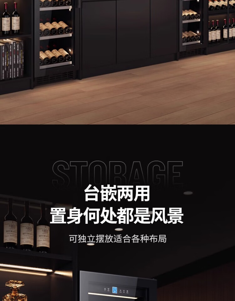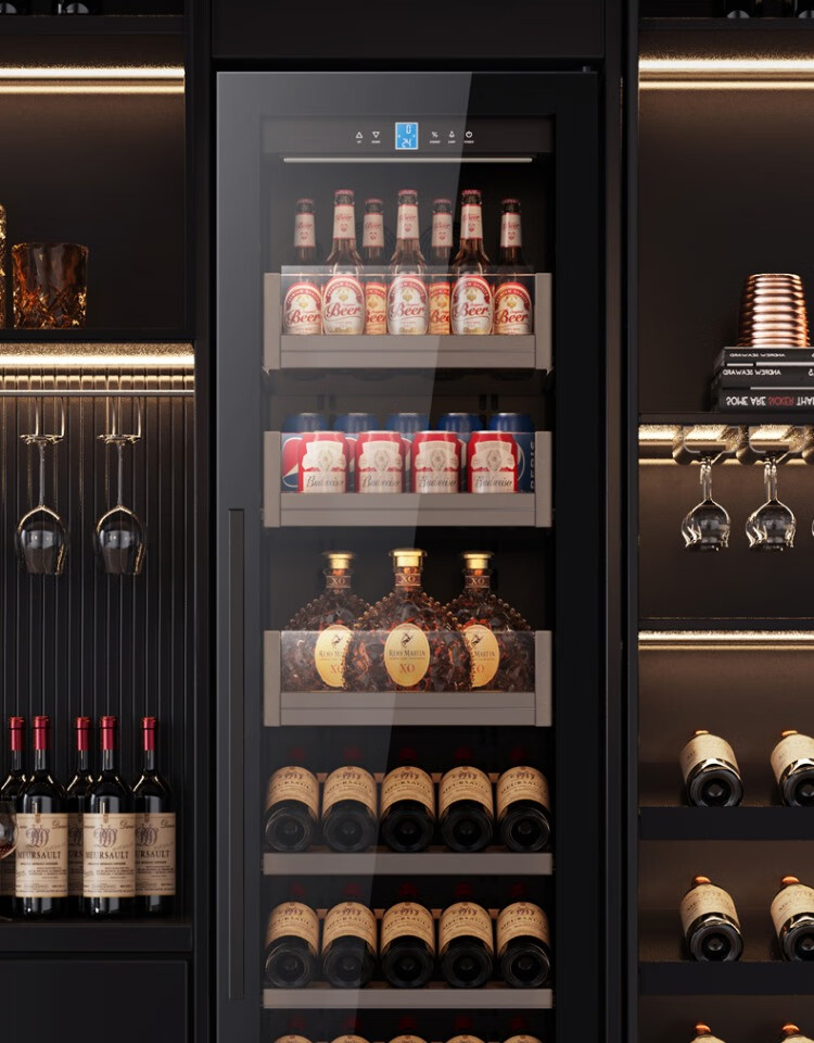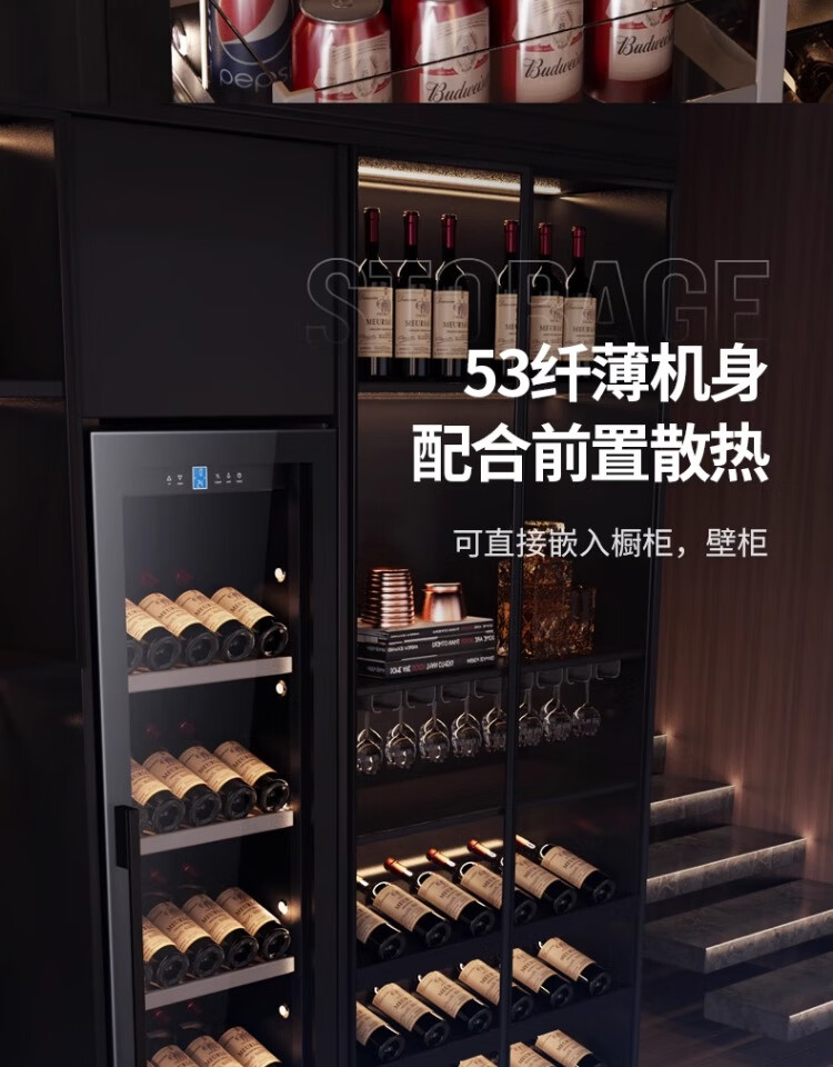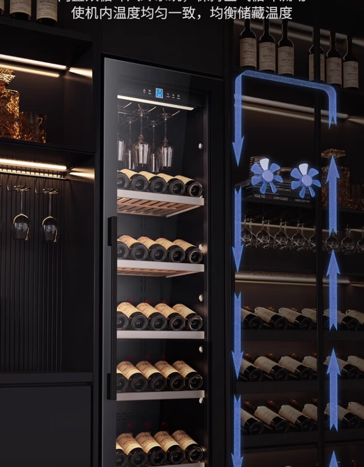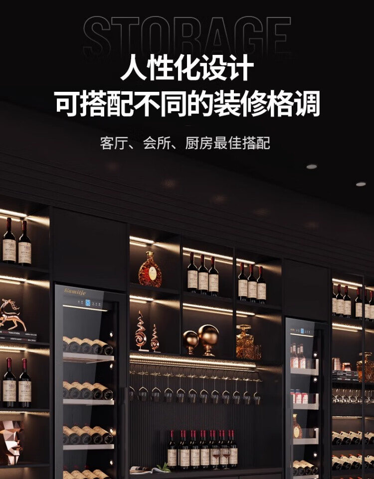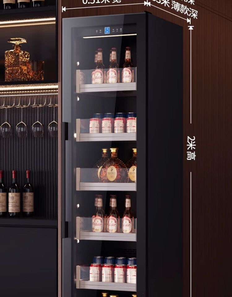 He Jiagong Kamizhe thin red wine cabinet constant temperature wine cabinet embedded ice bar home living room dual temperature beverage tea refrigerator 2.0 meters (thin model dual temperature) fully equipped