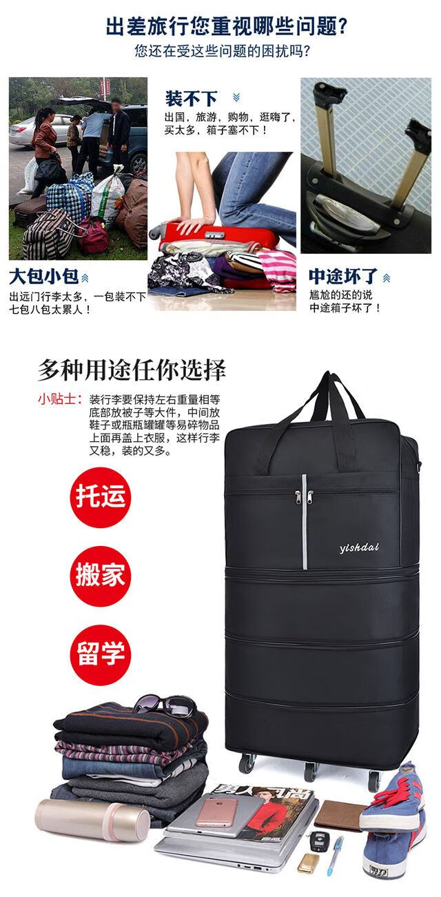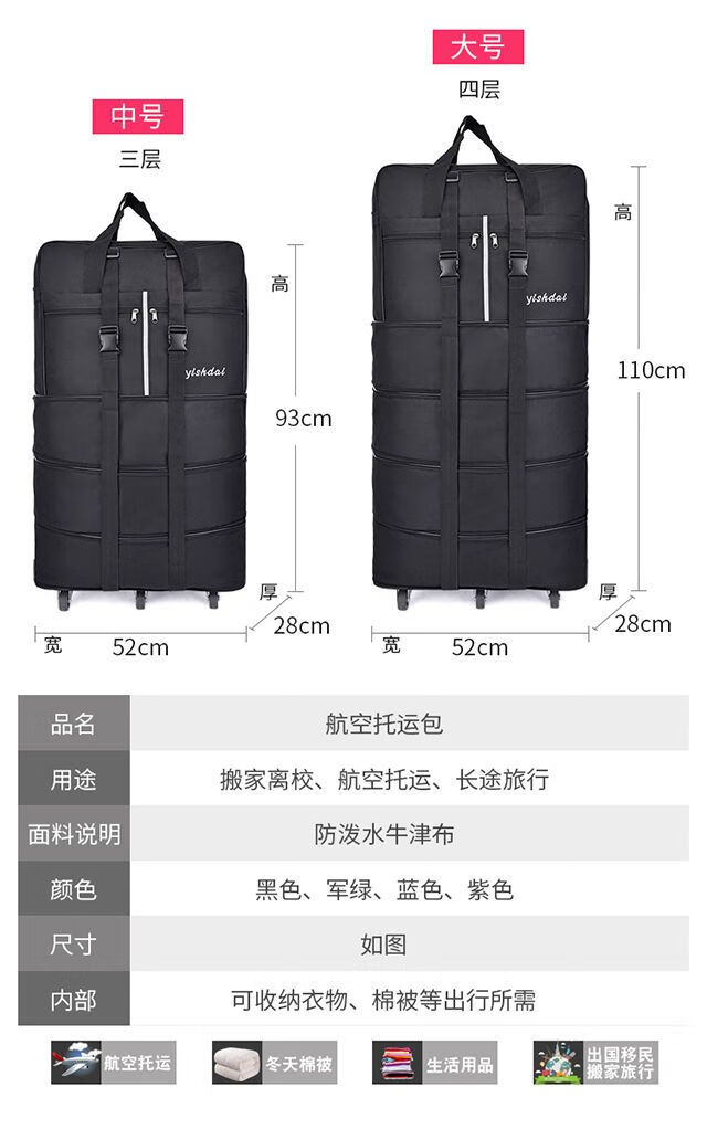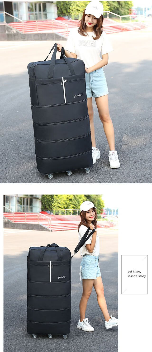 AIFENGGE 158 aviation checked bag wheeled luggage bag large-capacity travel bag women's moving suitcase folding travel bag 42-inch green four-layer extended S comes with a strap and 2 explosion-proof belts three-steel plate universal silent 6-wheel free code lock