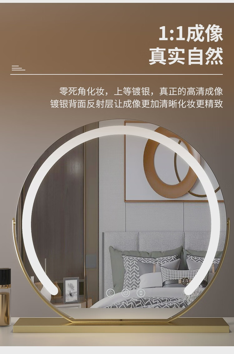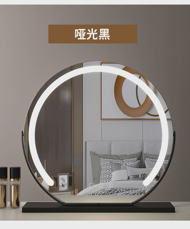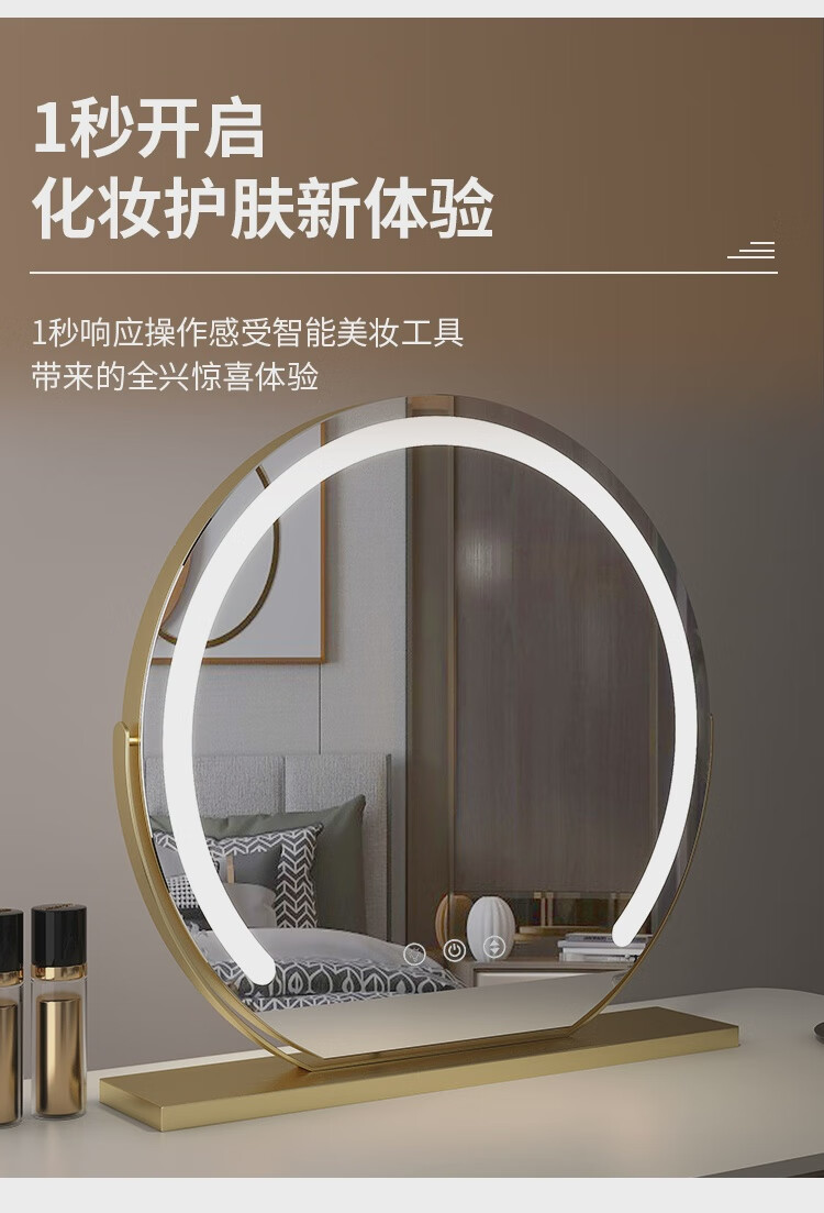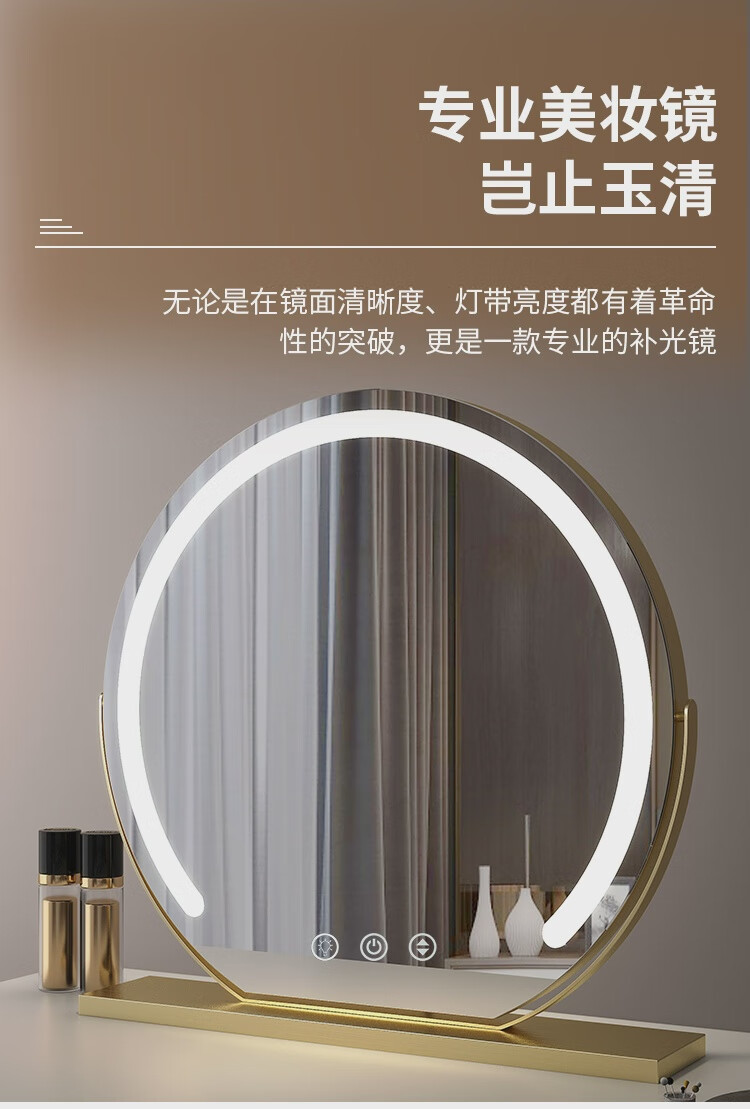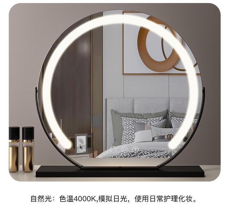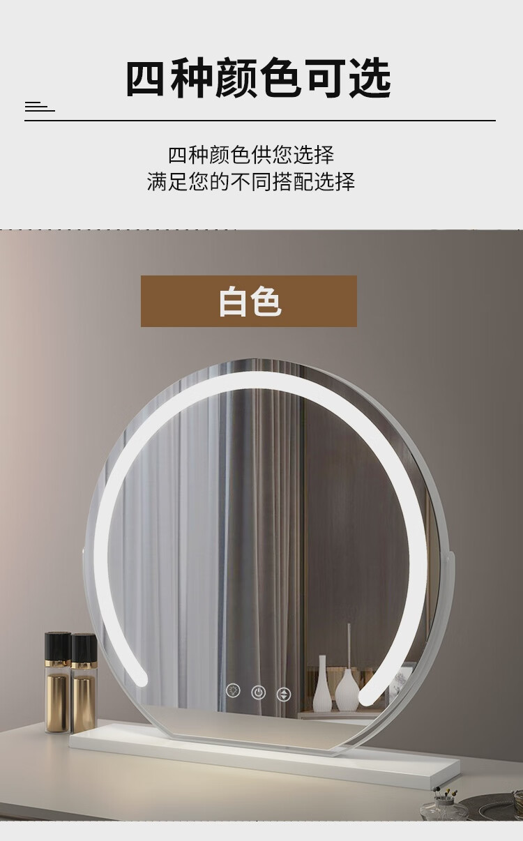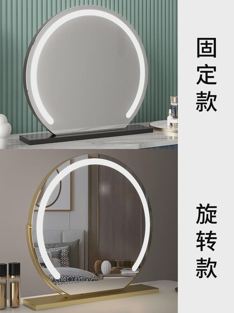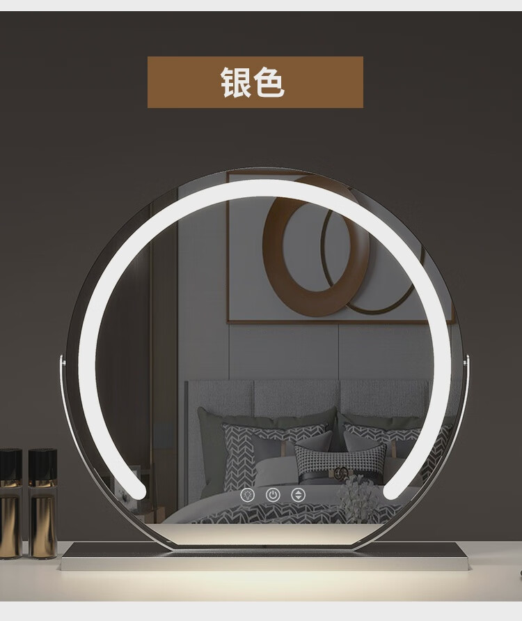 High-definition LED vanity mirror with light vanity mirror desktop smart home simple master bedroom semicircle silver 50 diameter rechargeable rotating touch three-tone lighting