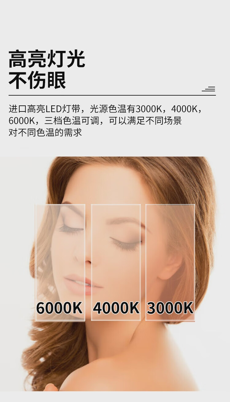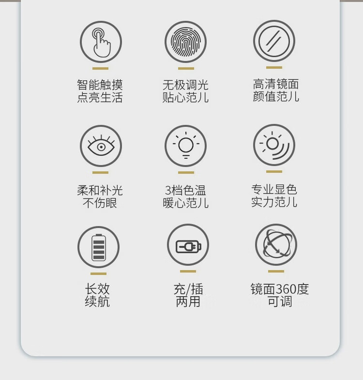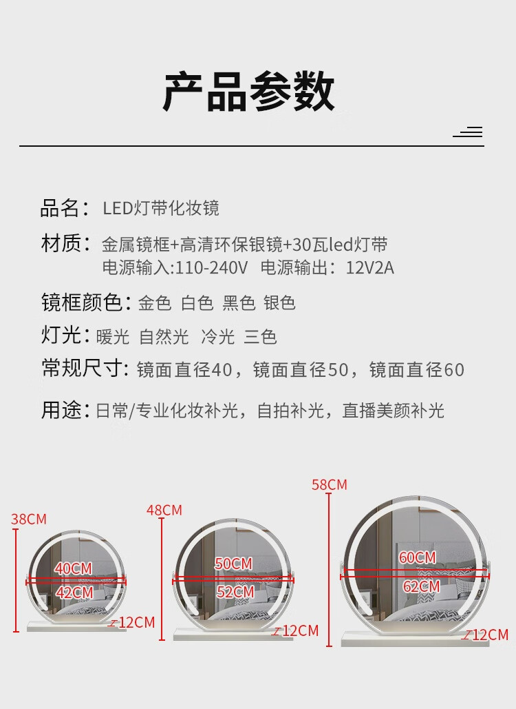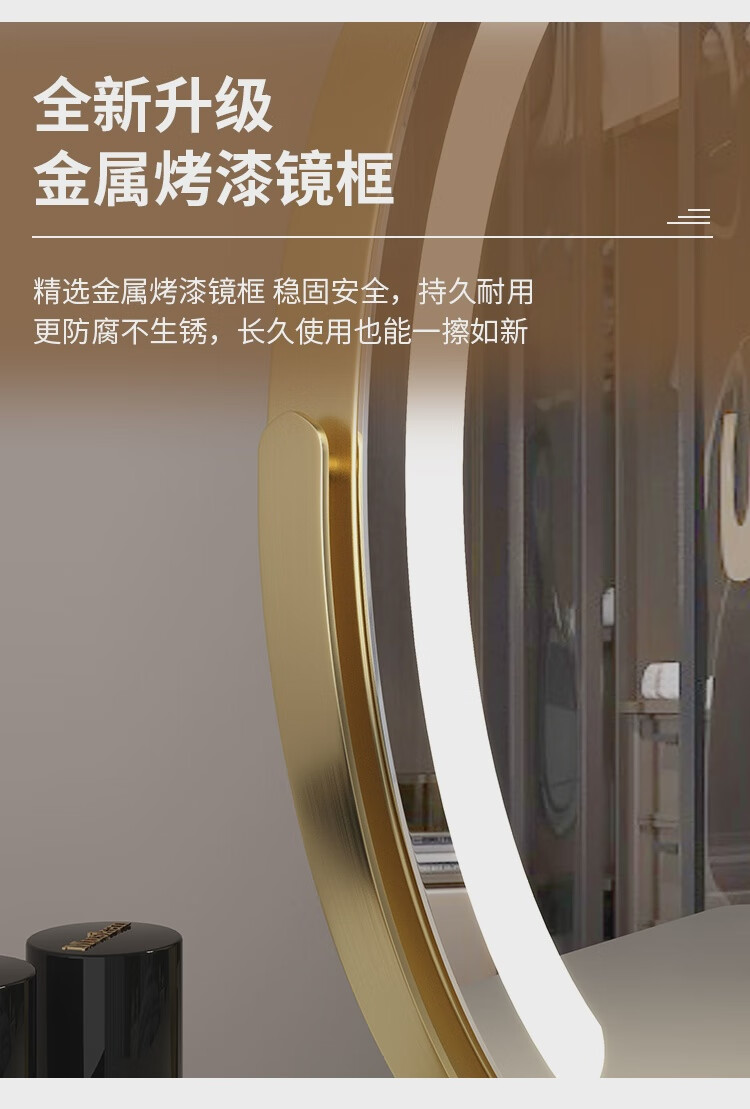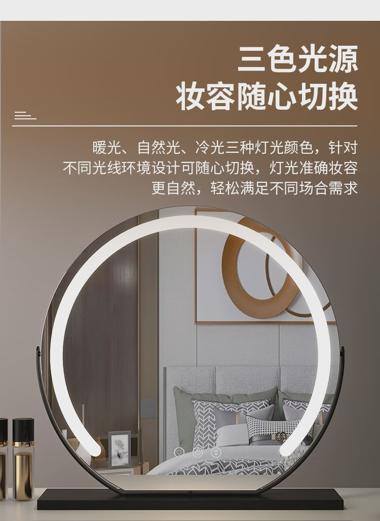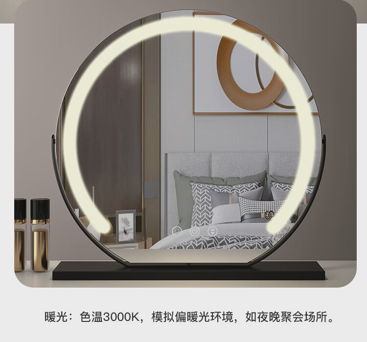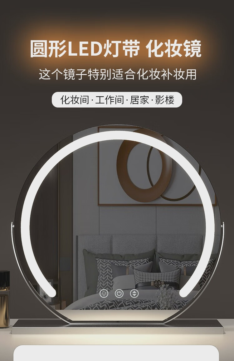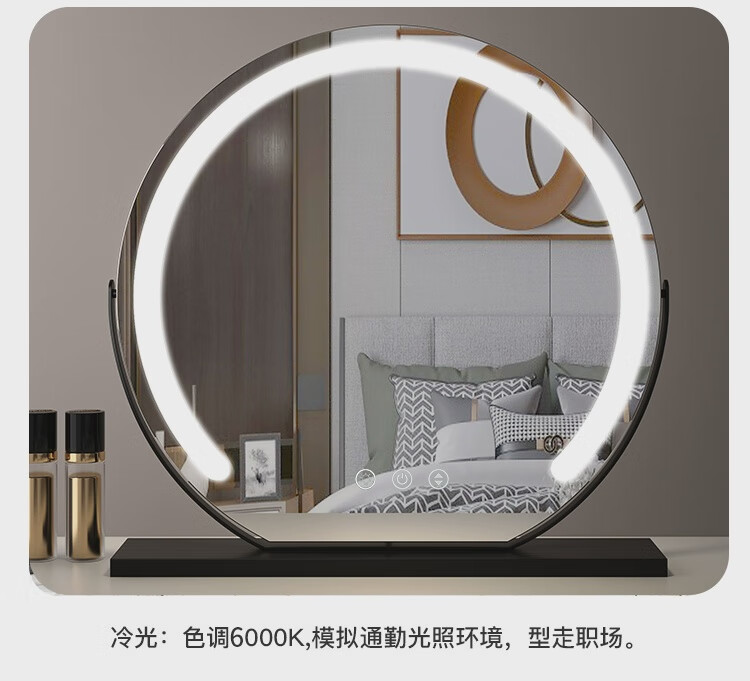 High-definition LED vanity mirror with light vanity mirror desktop smart home simple master bedroom semicircle silver 50 diameter rechargeable rotating touch three-tone lighting