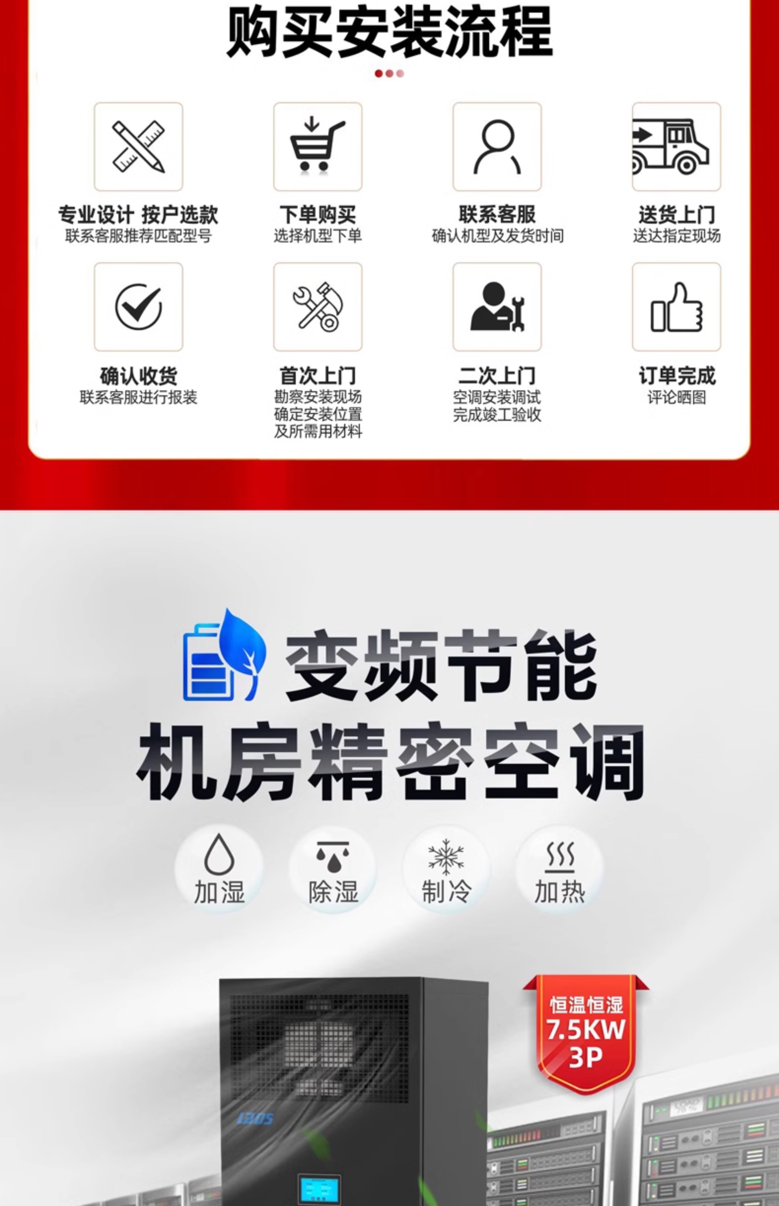 Computer room precision air conditioner 7.5KW/12.5KW constant temperature and humidity single cooling frequency conversion 3P5P computer room air conditioner base station special 7.5KW/3P single cooling air conditioner including installation