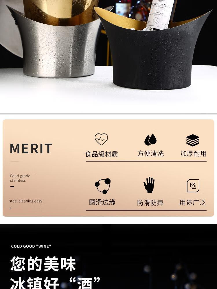 Yusenyi new fashion champagne basin stainless steel ice bucket commercial large red wine ice bucket bar ktv ice wine basin large waist champagne basin rich gold